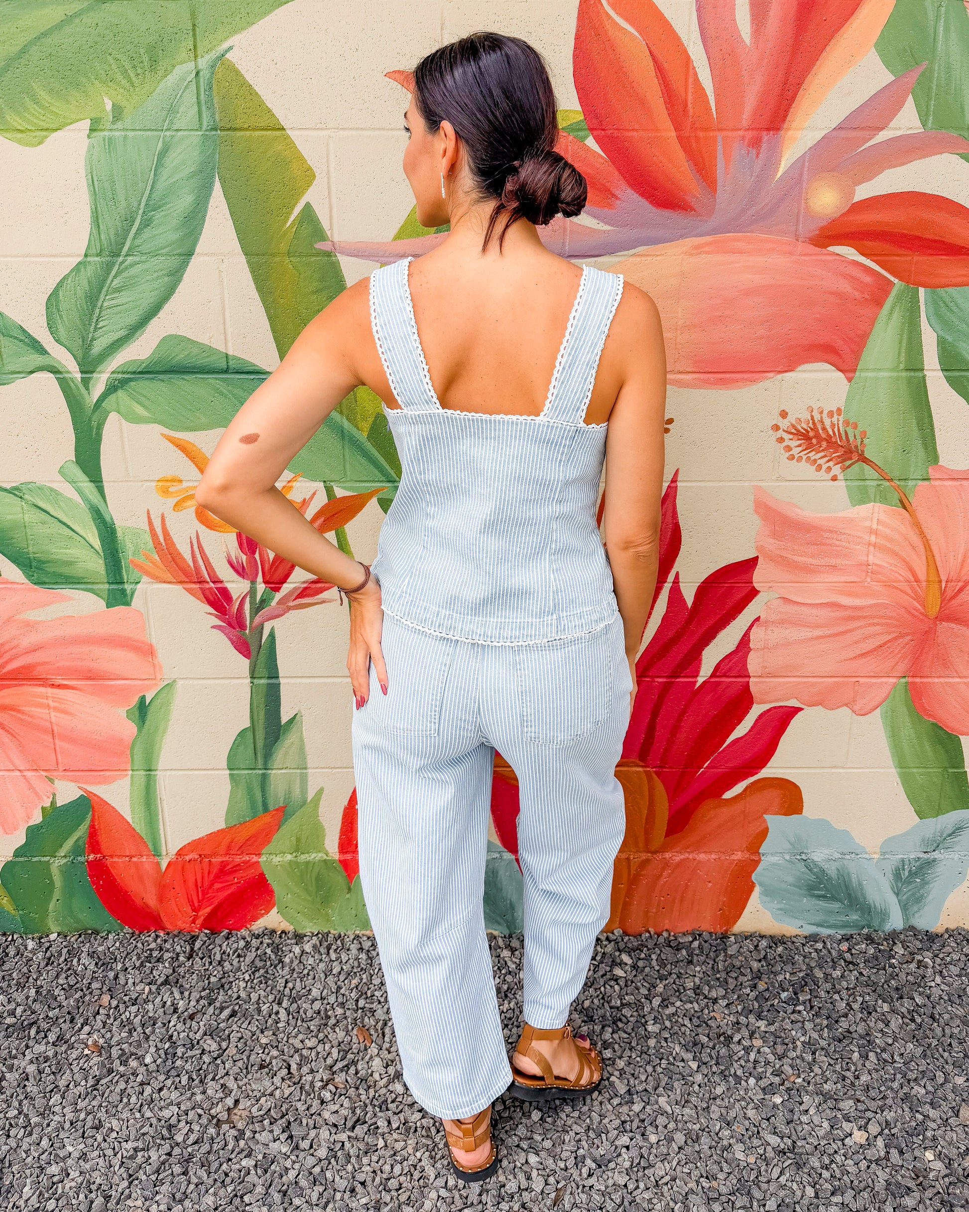 Adele Pants are washed striped denim barrel pants with a relaxed fit and vintage charm. Featuring a high-rise waistband and tapered ankles, they're comfortable and flattering for everyday wear. Soft denim construction makes them durable and easy to style with any casual outfit.