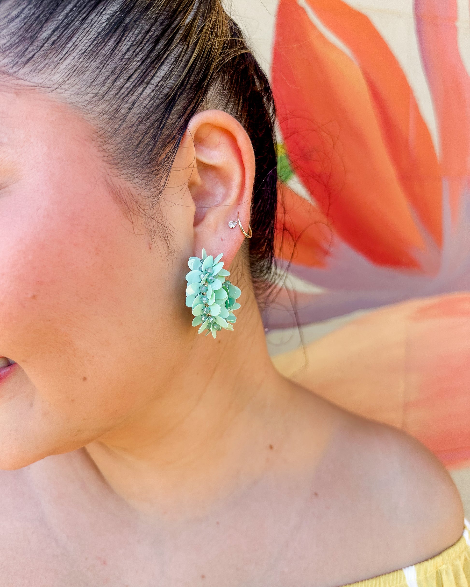 How fun are these half hoop wreath earrings? Semi-precious stones & gold spacers throughout. Gold plated.