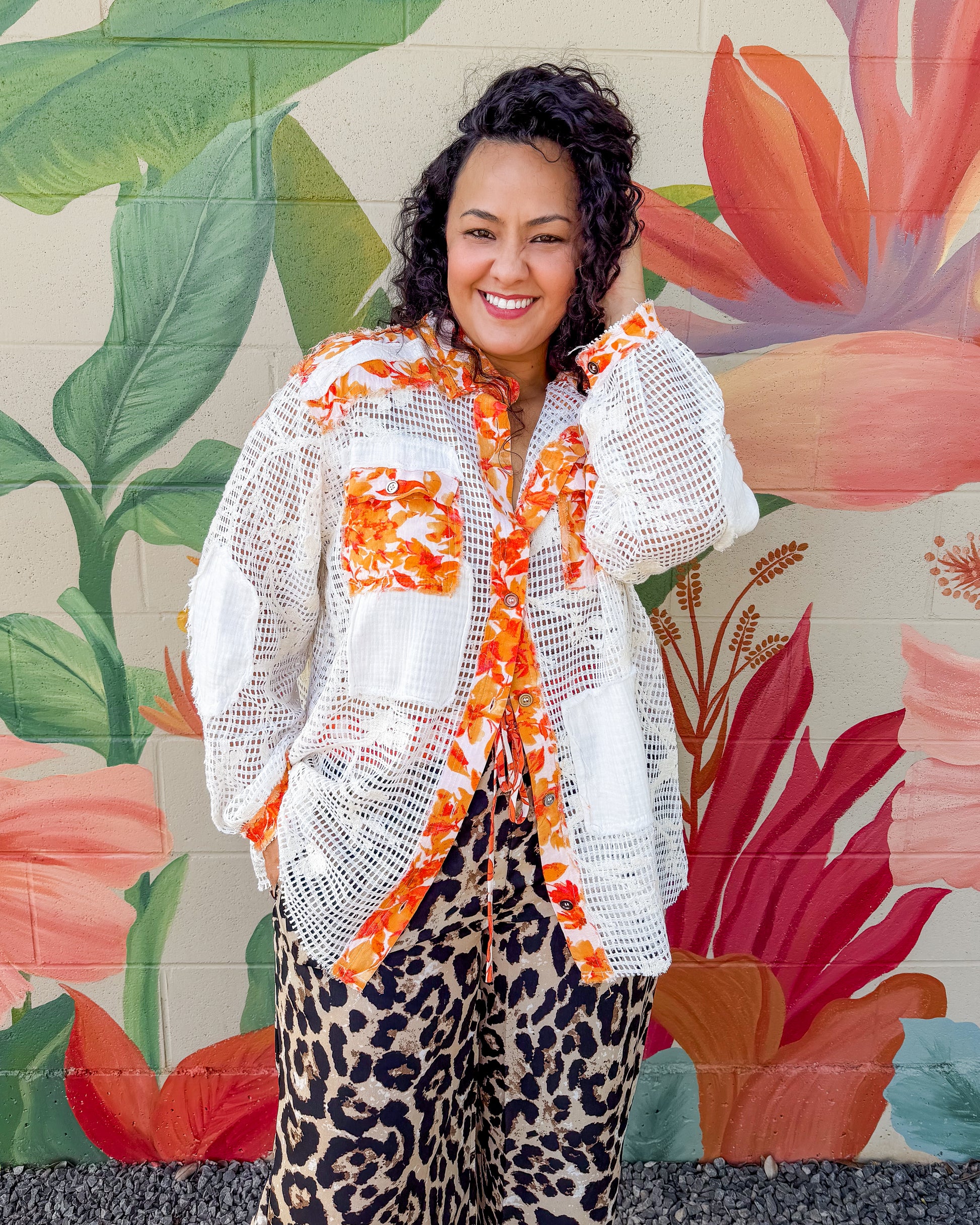 The Amalie Top features a relaxed, easy-to-wear silhouette with delicate crochet lace and raw edge detailing. Designed with a classic collar and charming balloon sleeves, this piece showcases an intricate pointed floral pattern. Perfect for layering or wearing solo, it's a versatile addition to any wardrobe.