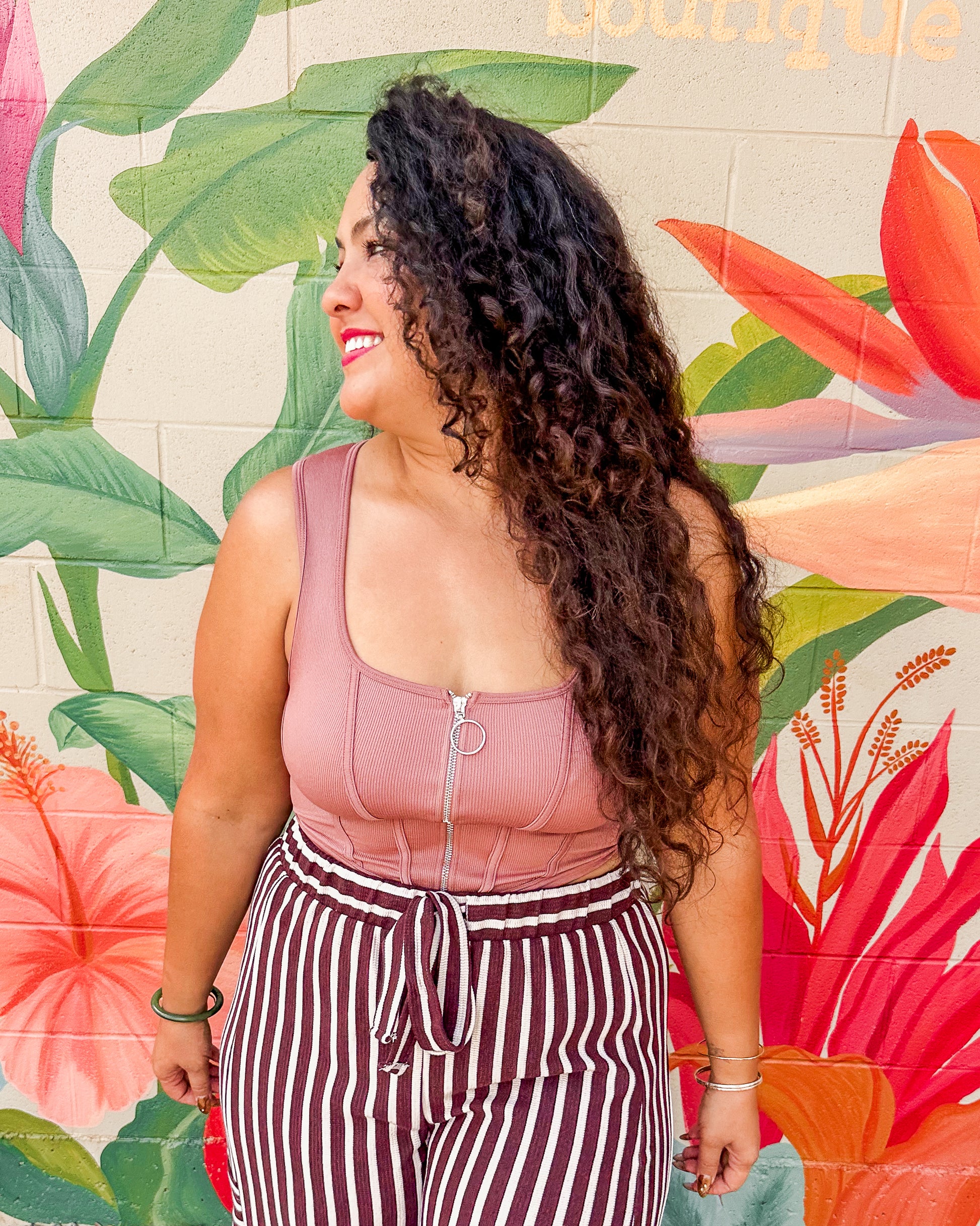 The Arlyn Tank features a seamless design with a front zipper accented by an O-ring, inspired by classic corset styles. Its smooth fit offers comfort and a sleek silhouette, making it a versatile piece for layering or wearing alone with understated elegance.
