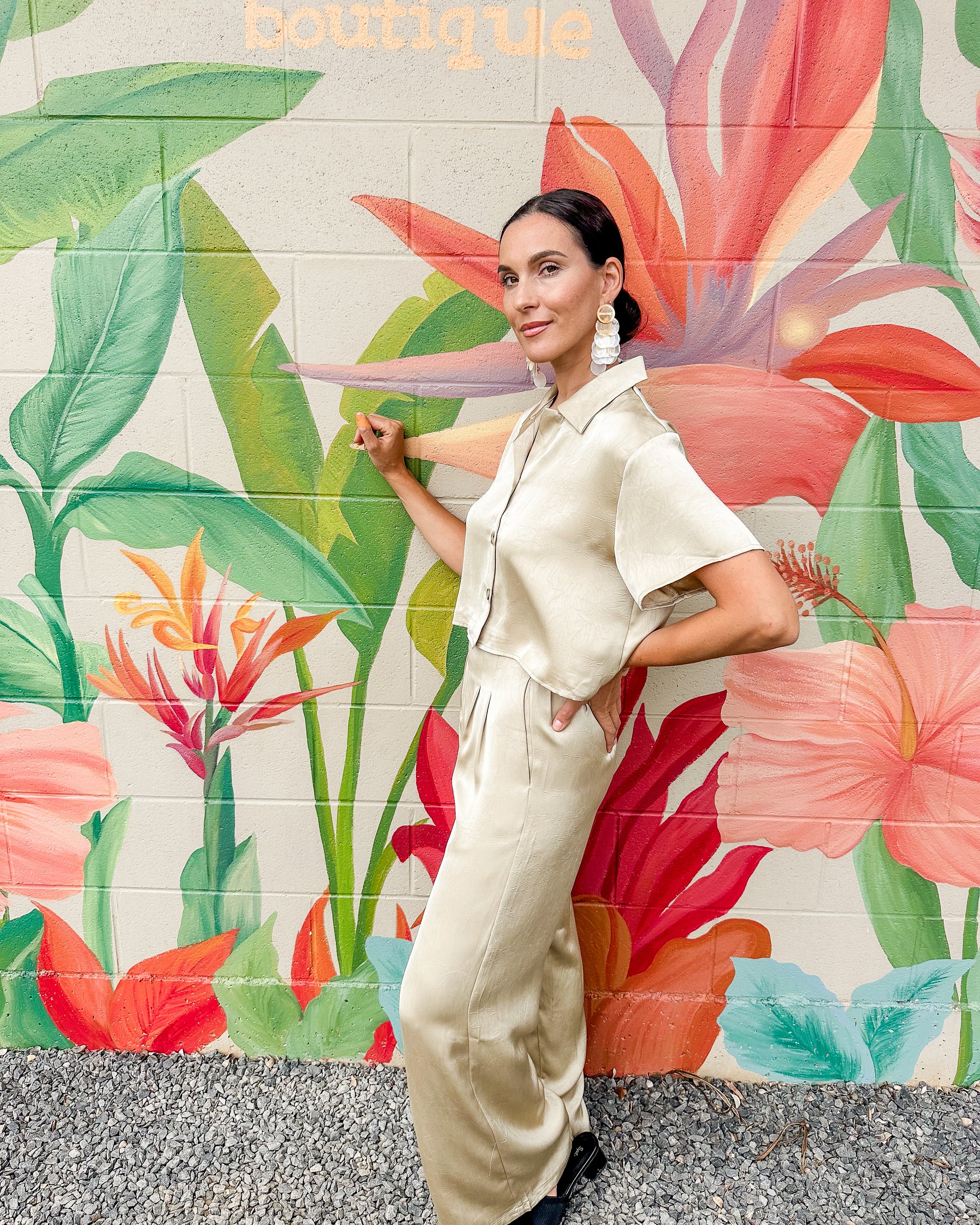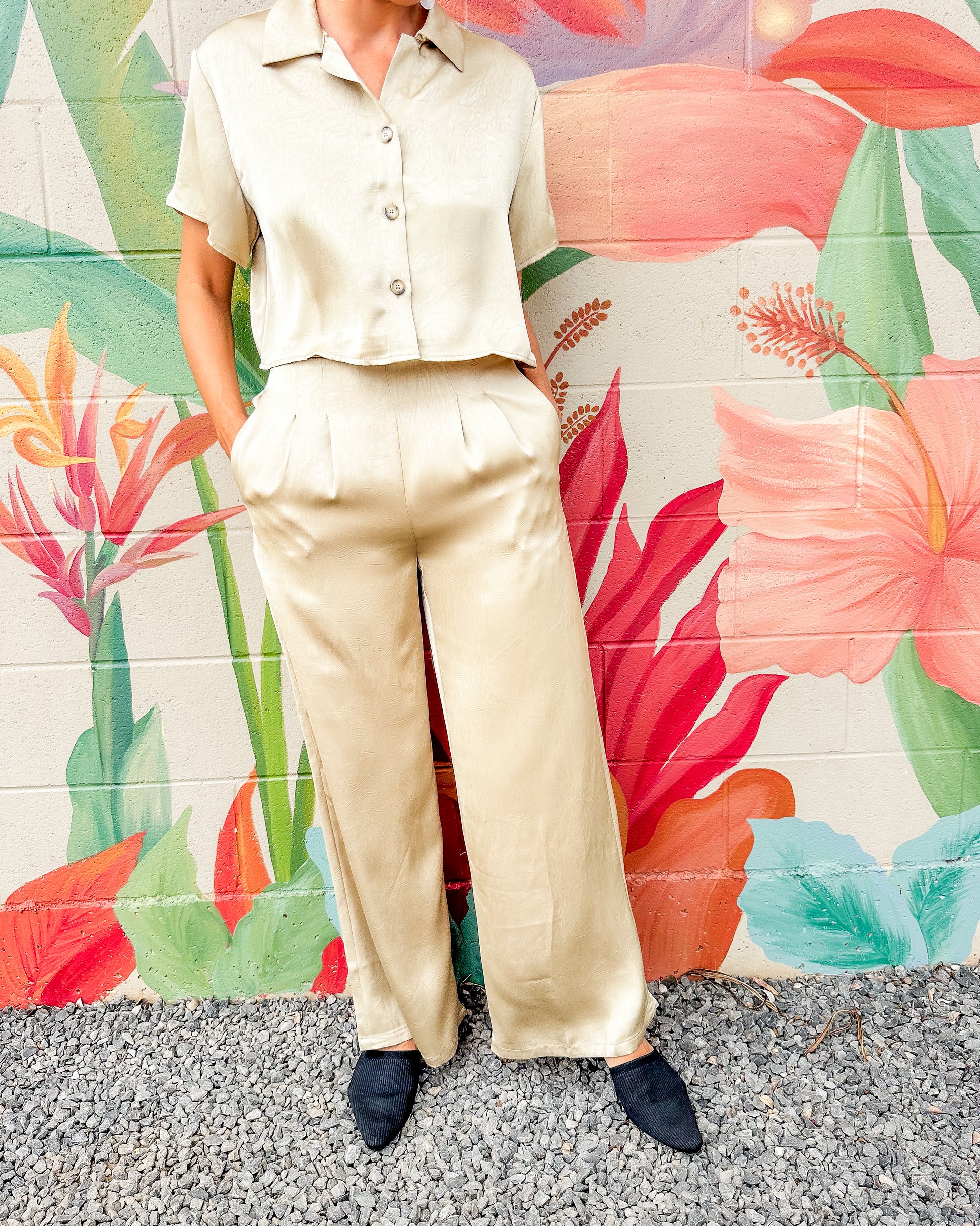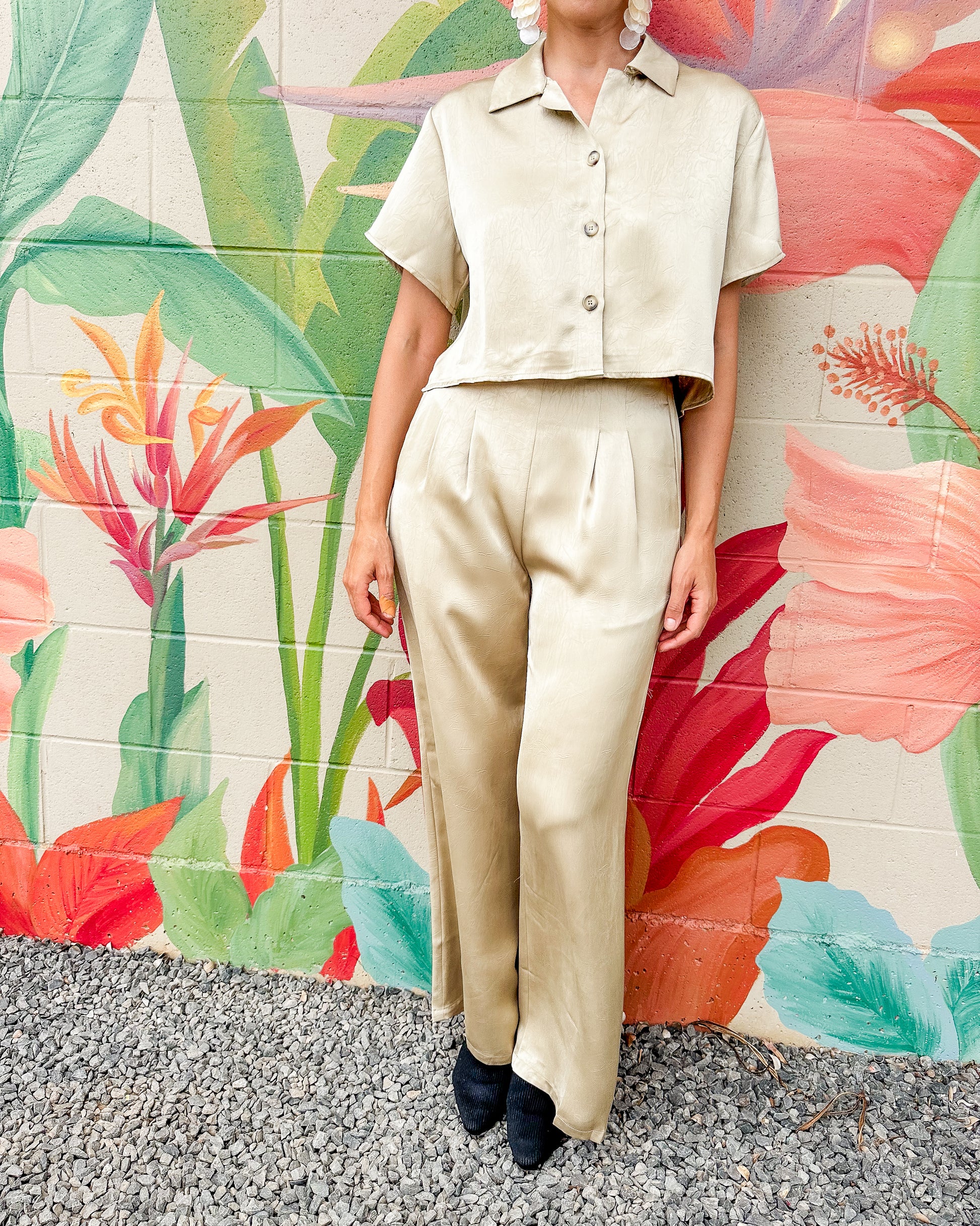 These high-waisted Atlas Pants offer a comfortable fit with a sleek silhouette. Designed with practical side pockets, they provide convenient storage while maintaining a clean, polished look. Perfect for everyday wear, they combine style and functionality effortlessly.