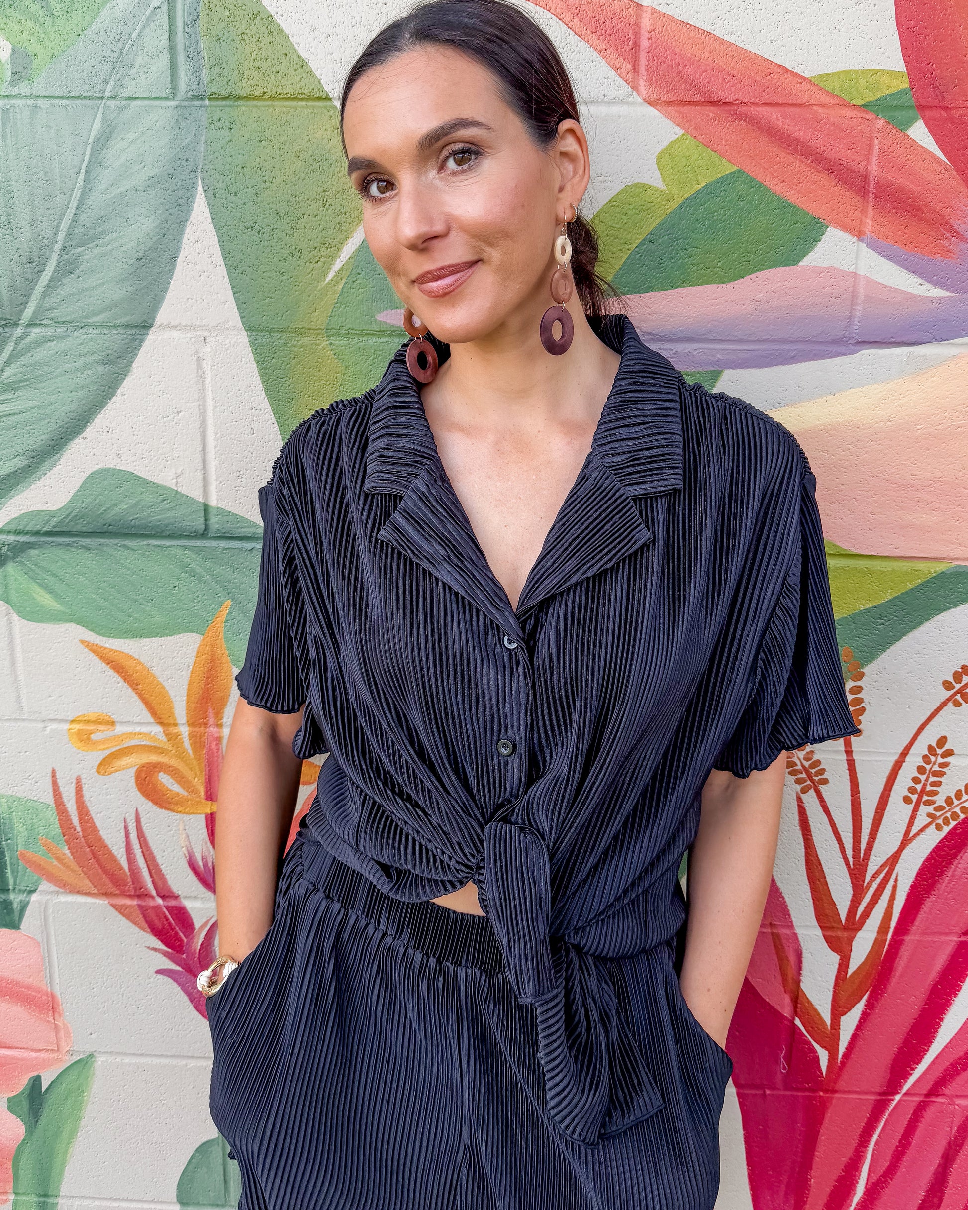 Elevate your everyday style with the Benjamin Top, featuring luxurious satin fabric and refined pleated detailing. The classic button front adds versatility, making it perfect for dressing up or down. Smooth, sophisticated, and effortlessly chic—a wardrobe essential that works for any occasion.