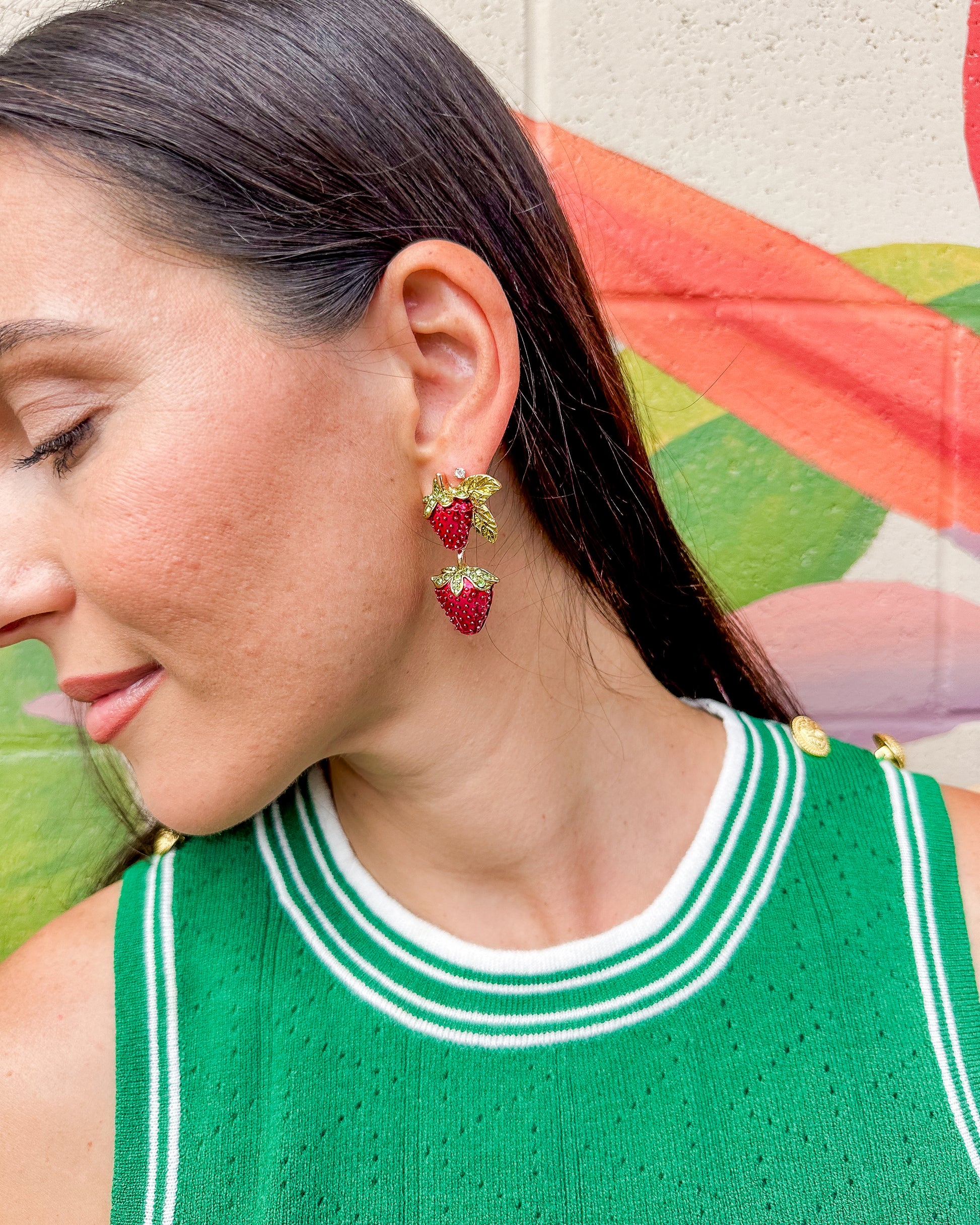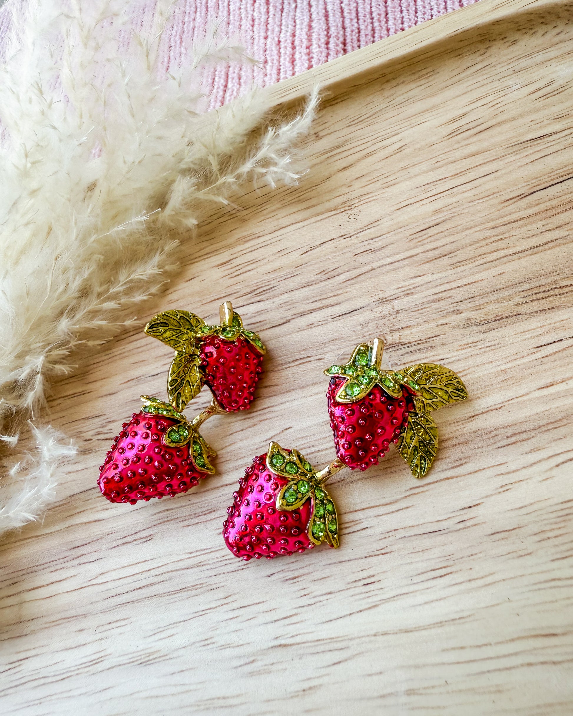 These fun strawberry earrings are berry cute and you definitely need them! Bright pink berries accented with chartreuse green leaves are the perfect combo for summer. Stud backing.