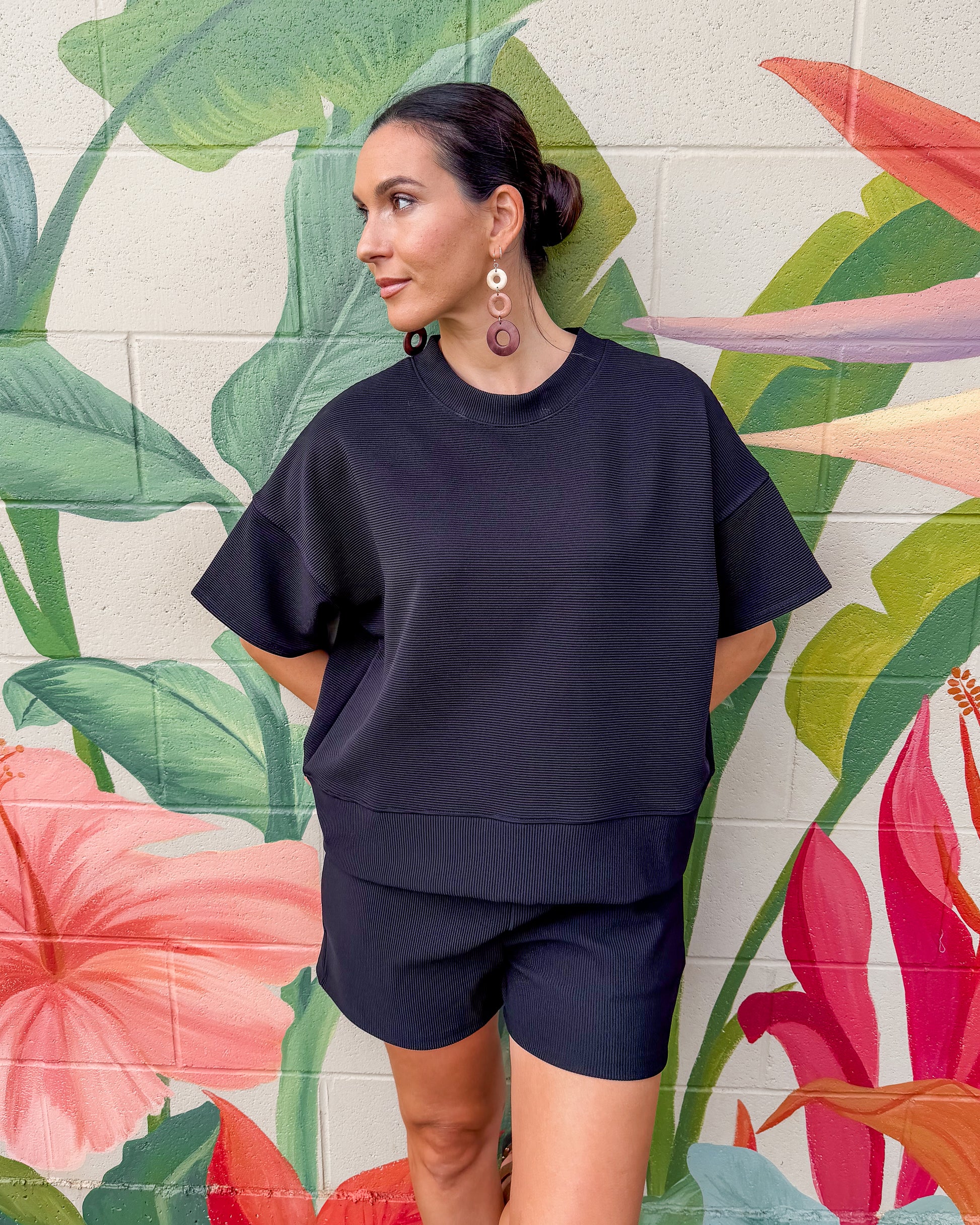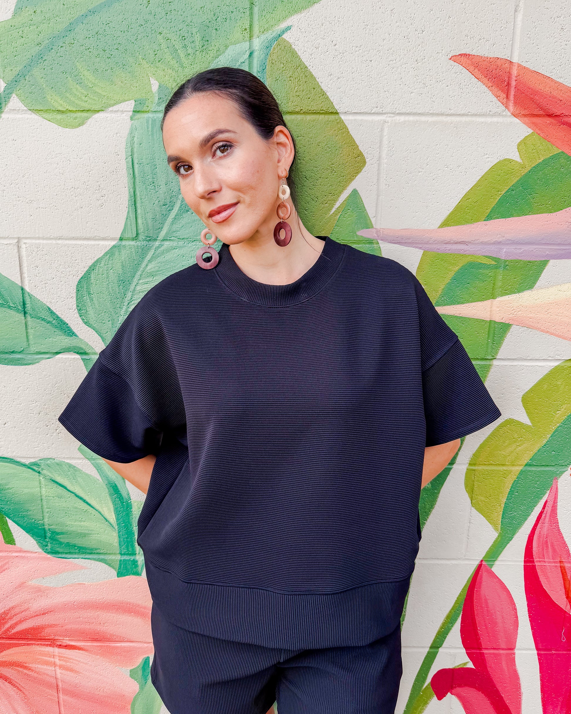 Effortless everyday essential with a ribbed knit construction that moves with you. The rounded neckline and waist banding create a flattering, fitted silhouette. Crafted from quality ribbed fabric for durability and comfort that lasts.