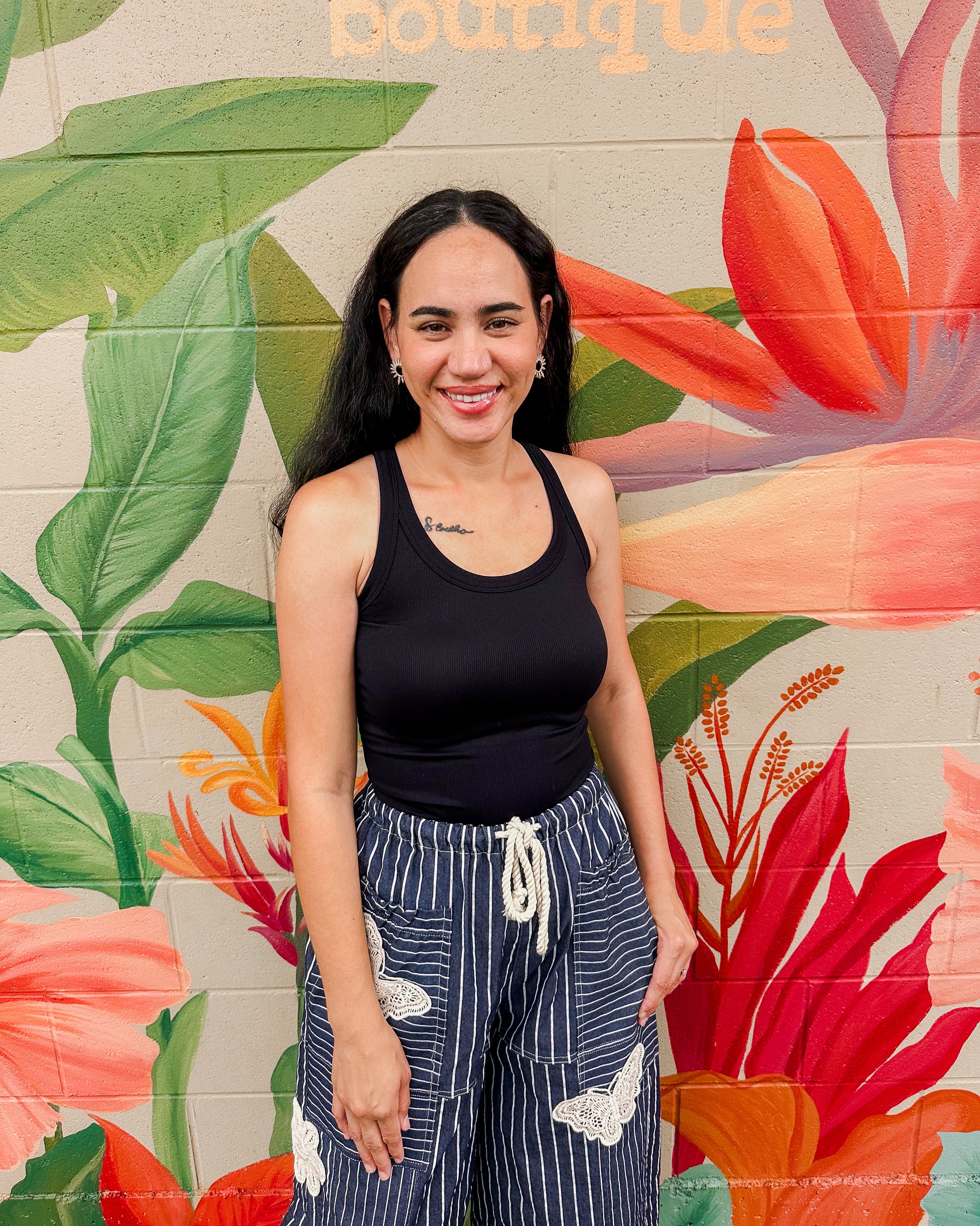 This Bruno Tank in black features a sleek racerback design that offers both comfort and freedom of movement. Crafted for a relaxed fit, it’s perfect for layering or wearing solo on warm days. Its versatile style pairs easily with casual or activewear, making it a staple piece for your wardrobe.