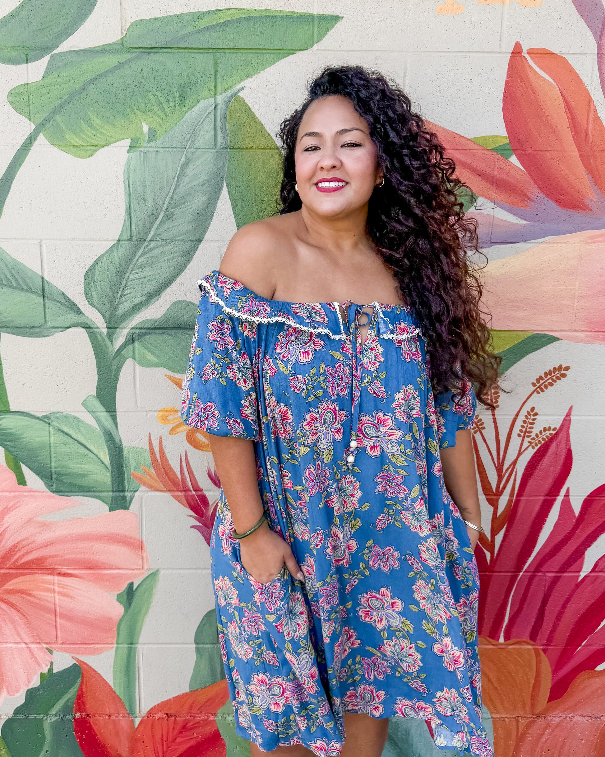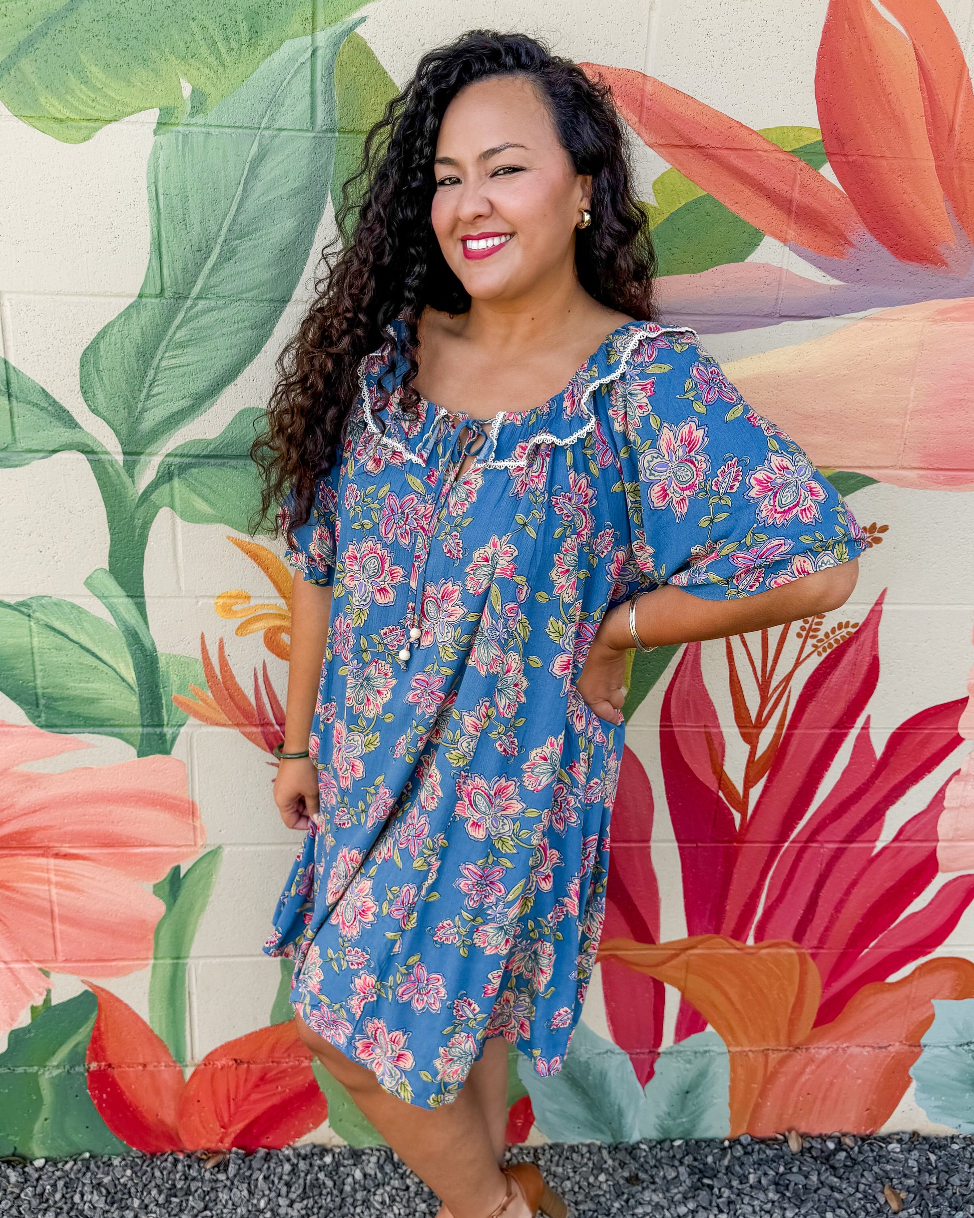 The Caspian Dress features a charming floral print on lightweight gauze that moves beautifully with you. Puff sleeves and a ruffled neckline add romantic detail, while the elasticized design lets you wear it off-the-shoulders for versatile styling. The relaxed, flowy silhouette keeps you comfortable all day, and practical side pockets are a welcome bonus. Perfect for warm weather adventures.