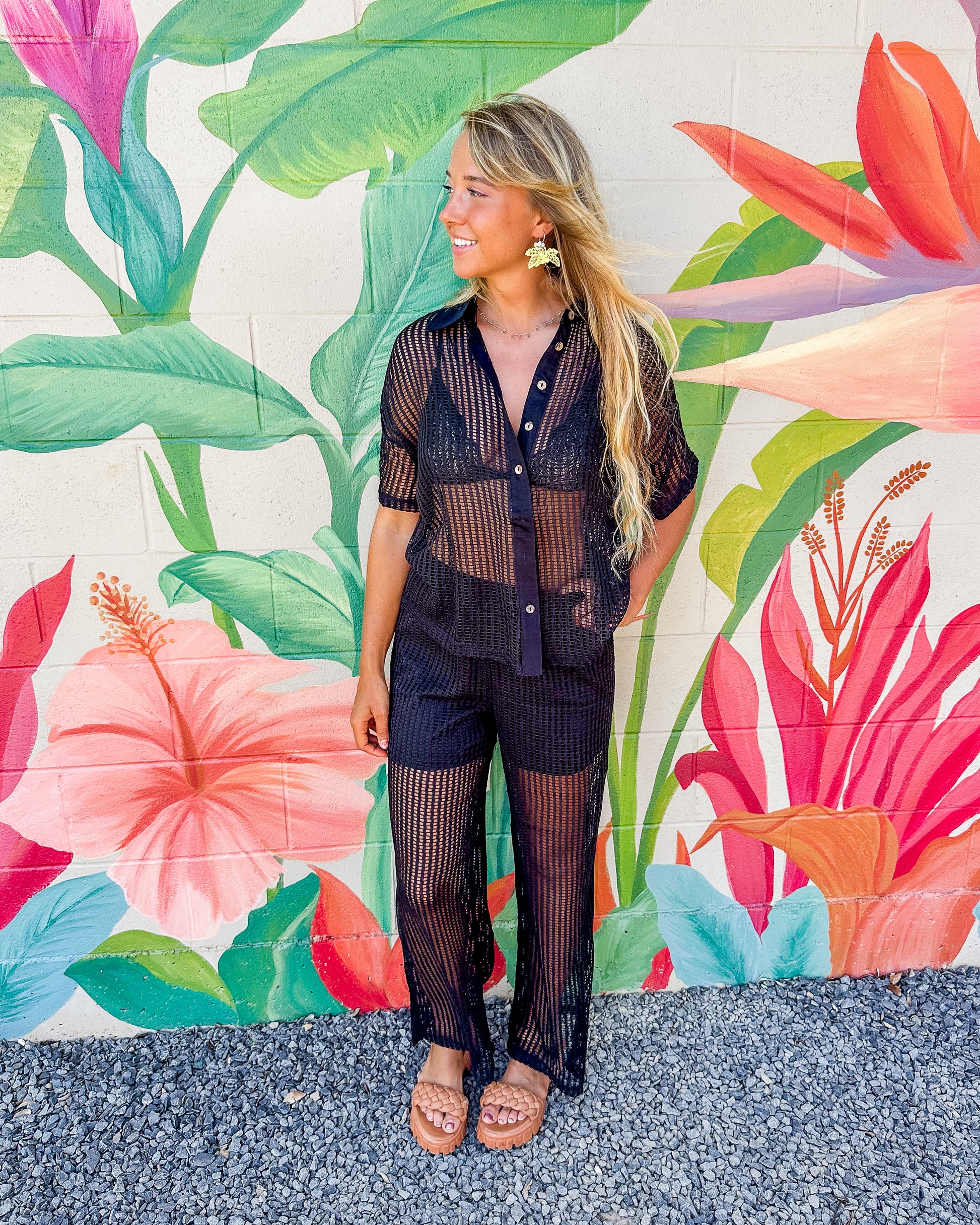 These Cerveza Pants in black offer a relaxed fit with wide legs for effortless comfort. Crafted from soft knit fabric, they feature a lined shorts layer underneath and an elastic waistband, ensuring ease of movement and a smooth feel against the skin. Perfect for casual wear, they combine style and comfort in a calm, understated design.