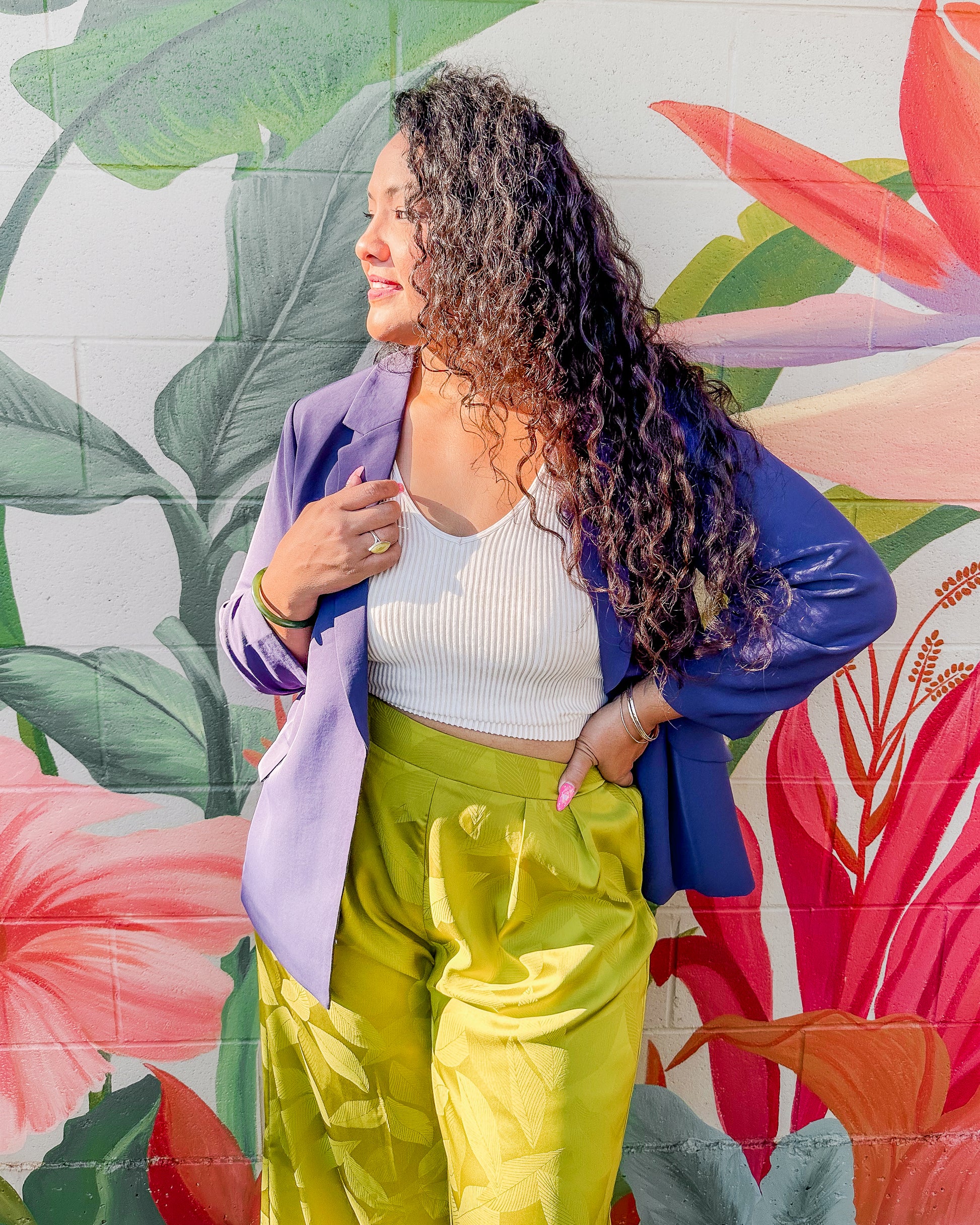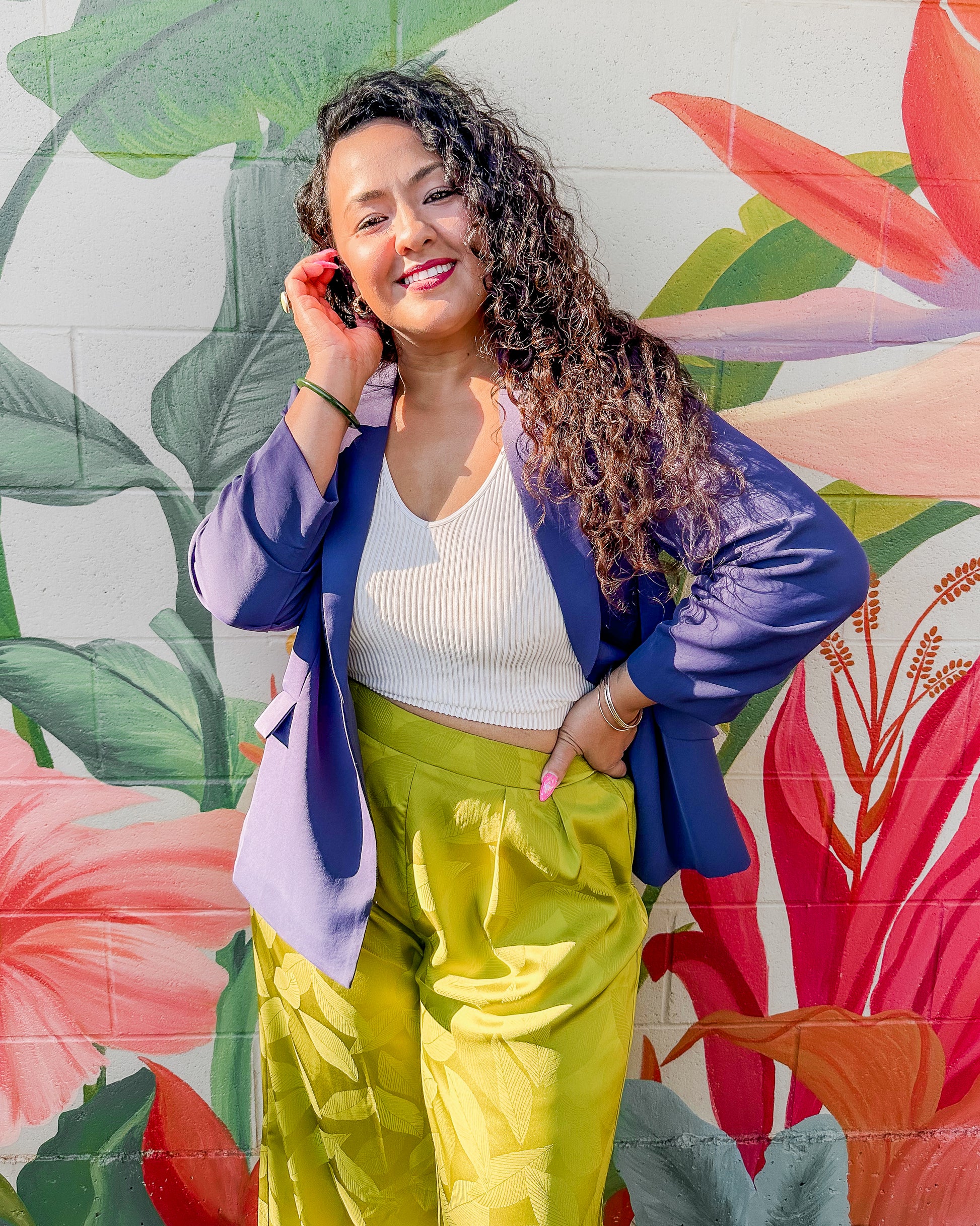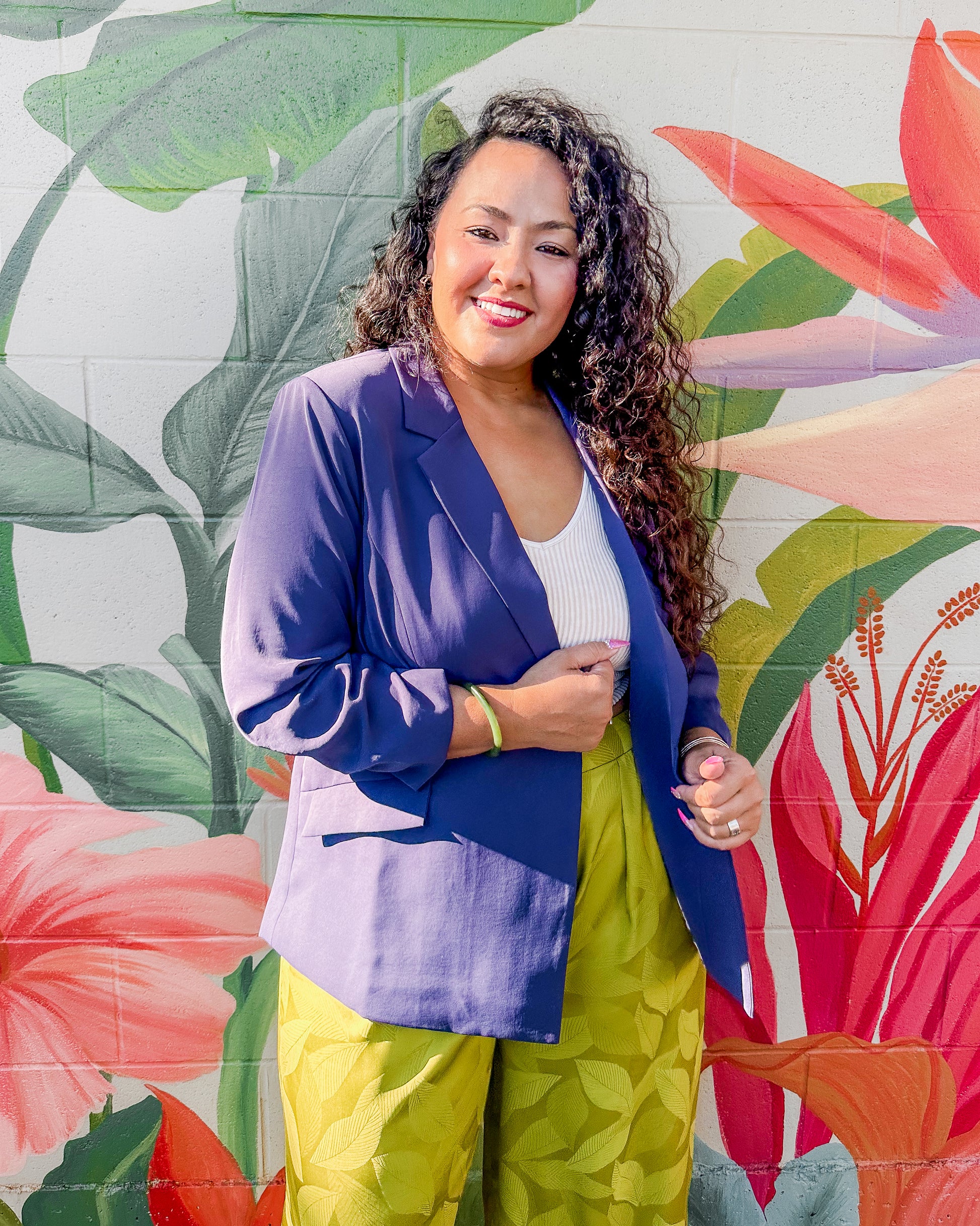 Eco-friendly and sustainable! This blazer is made from recycled polyester, with shirred 3/4 sleeves, front pockets and a relaxed fit. If you're familiar with the Luca, you can go ahead and grab the same size in this one!
