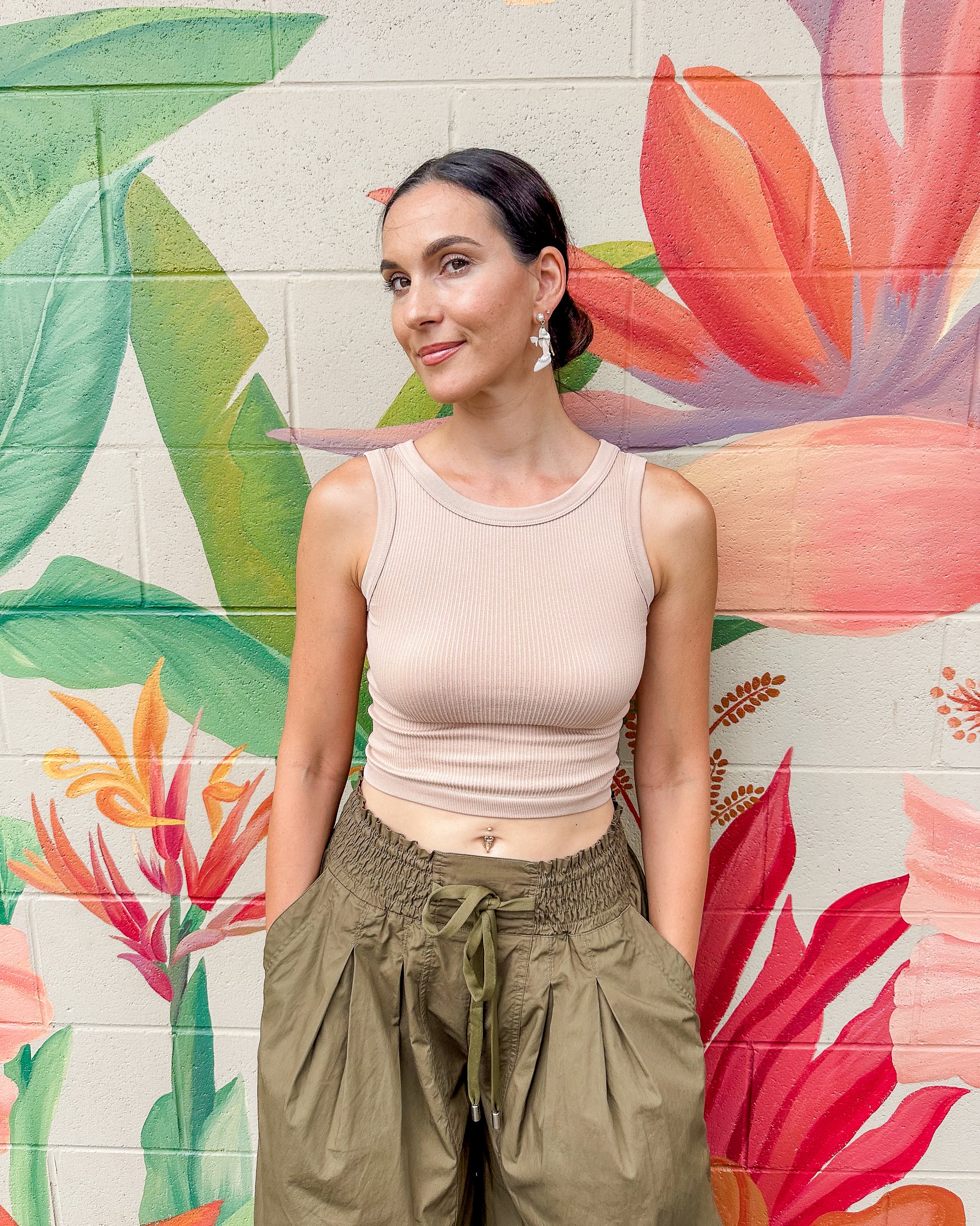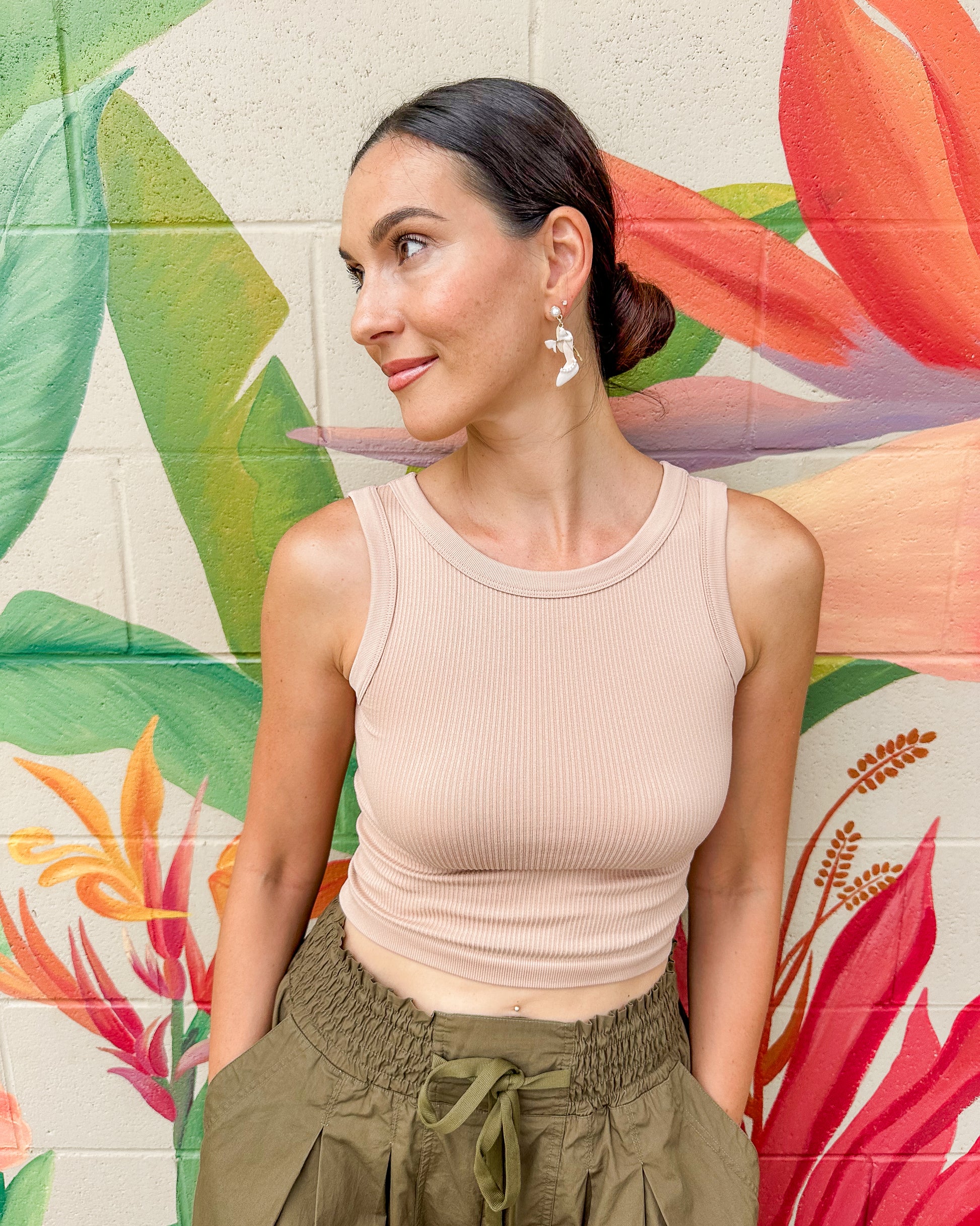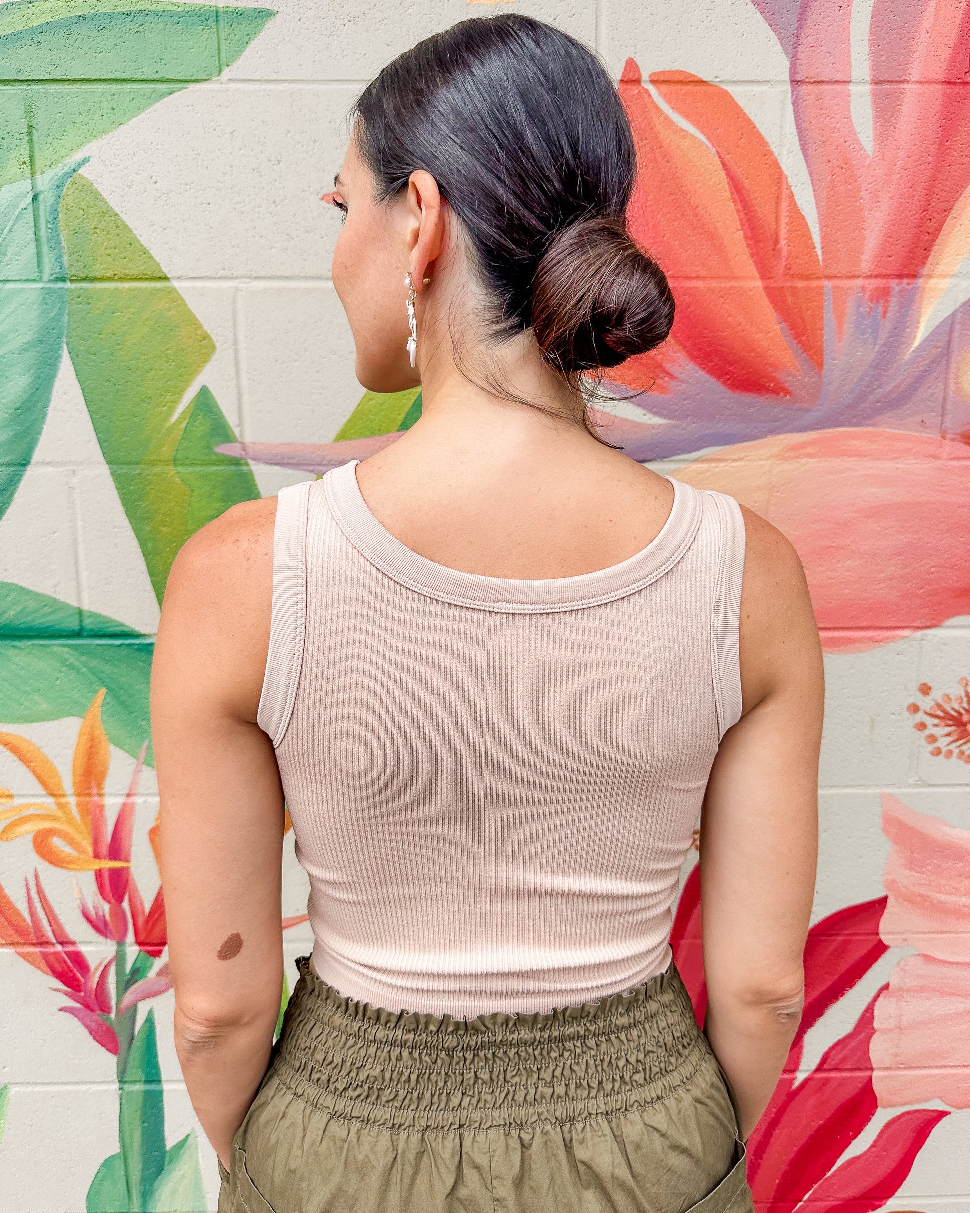 The Circe Tank in Nude offers a sleek, ribbed texture that gently contours to your silhouette. This versatile essential provides both comfort and style for everyday wear, with a timeless design that pairs effortlessly with your favorite bottoms. The breathable fabric ensures you stay comfortable throughout your day.