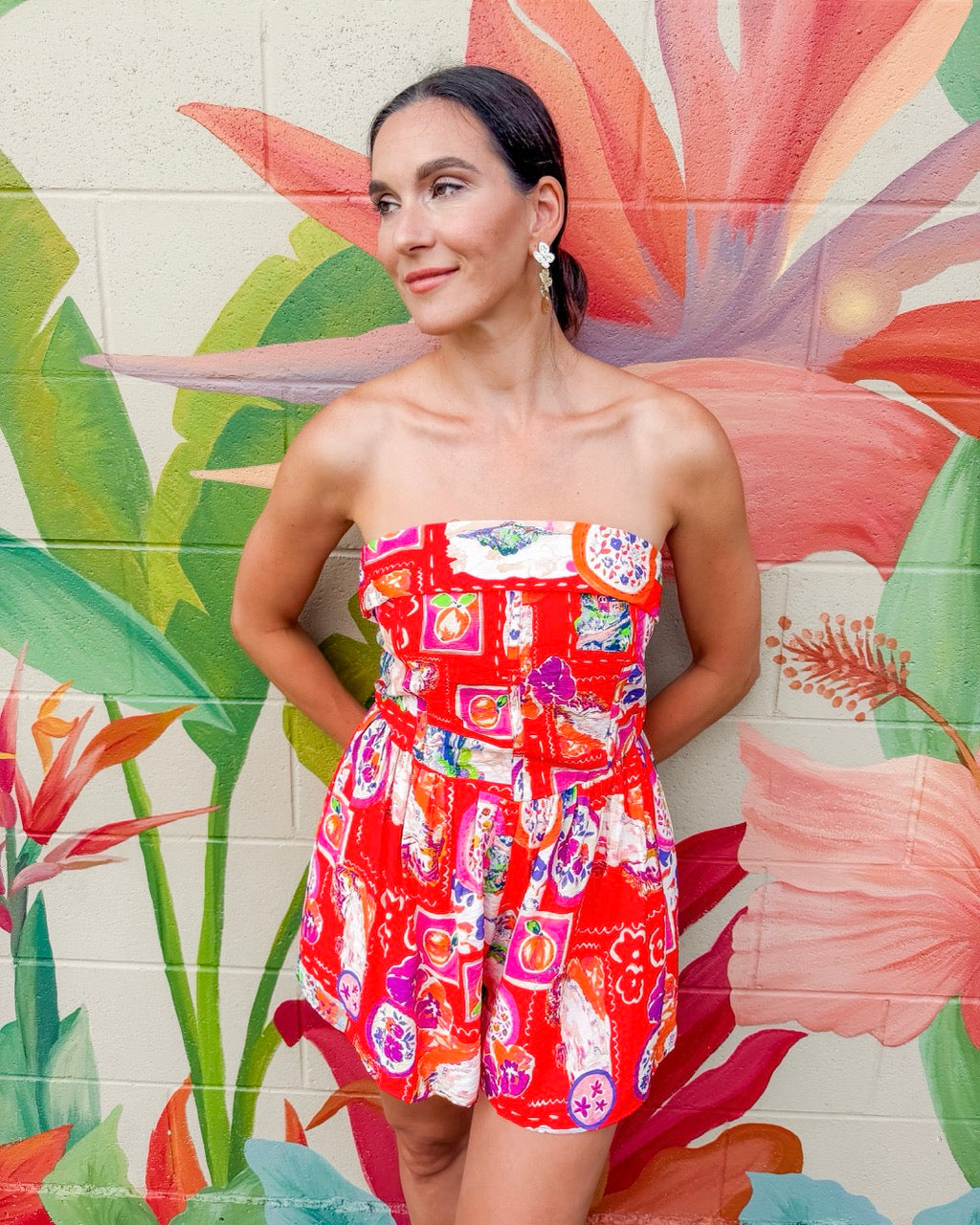 Effortlessly chic and playfully bold, this Cleobella romper turns heads with its dreamy watercolor floral print. The tube top silhouette pairs perfectly with front banded detailing and a flattering ruched waist that hugs you in all the right ways. Perfect for summer adventures, beach days, or that spontaneous night out. Slip it on and feel the confidence.