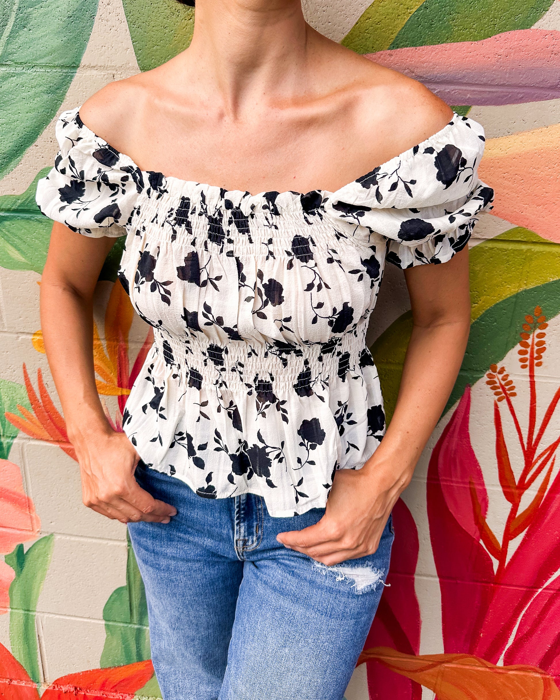 The Connell Blouse features a delicate floral print and a smocked bodice that offers a comfortable, flattering fit. Its peplum design gently flares at the waist, adding a subtle touch of elegance to your look. Perfect for both casual days and refined occasions, this blouse combines comfort with timeless style.