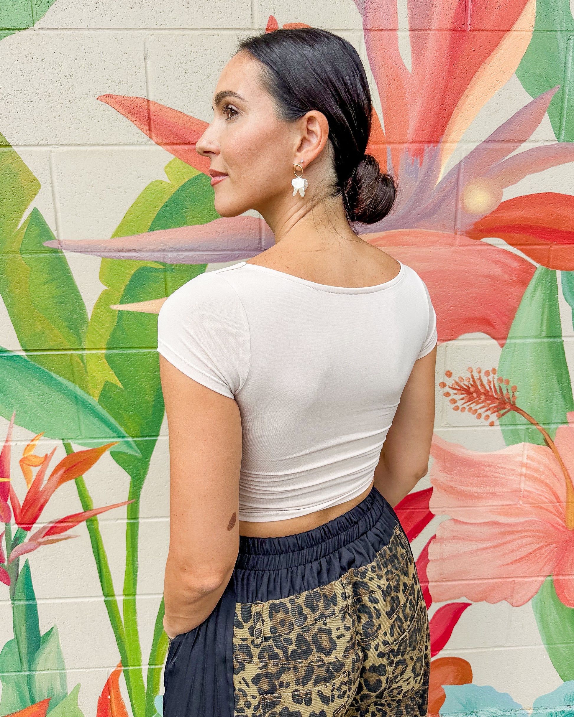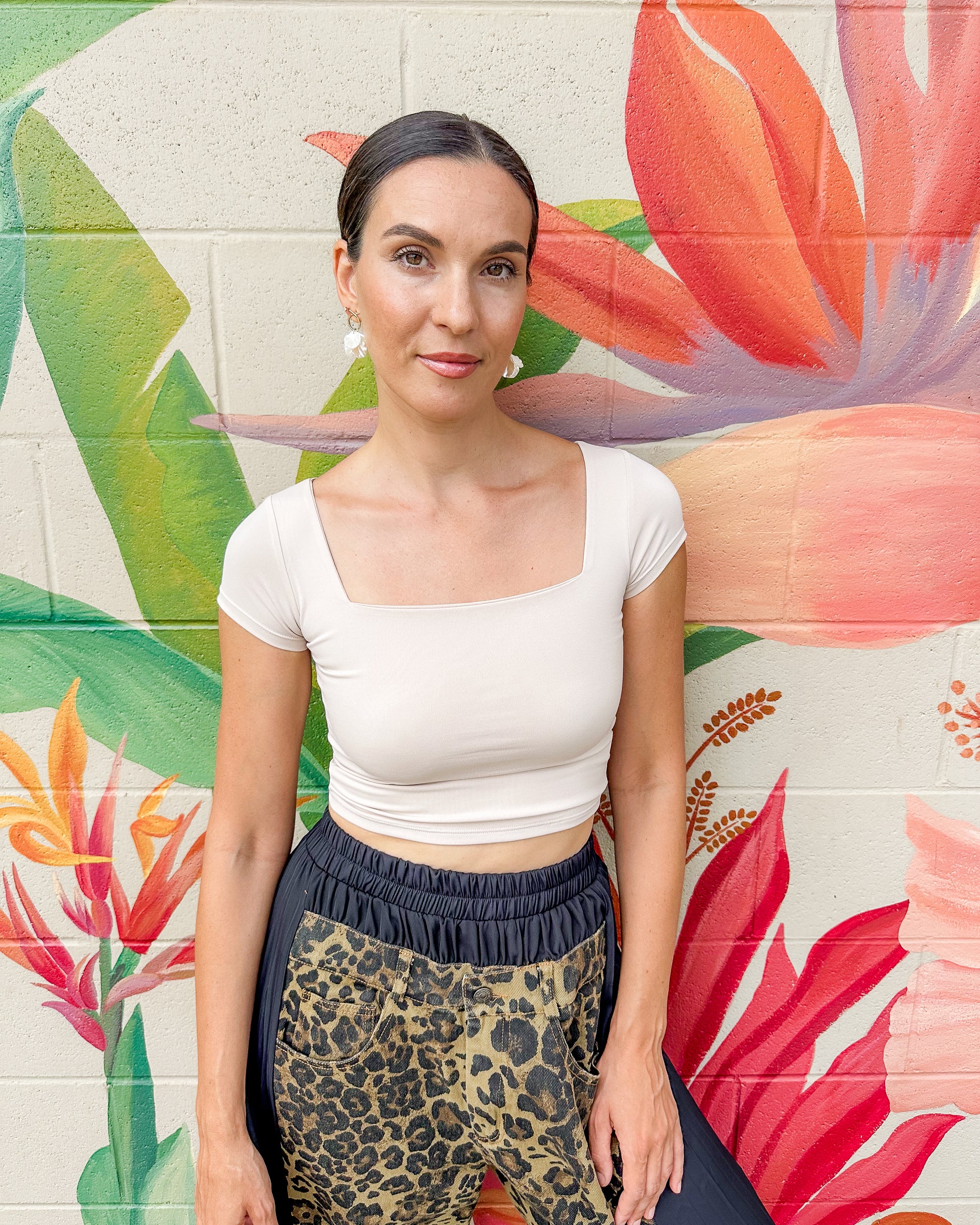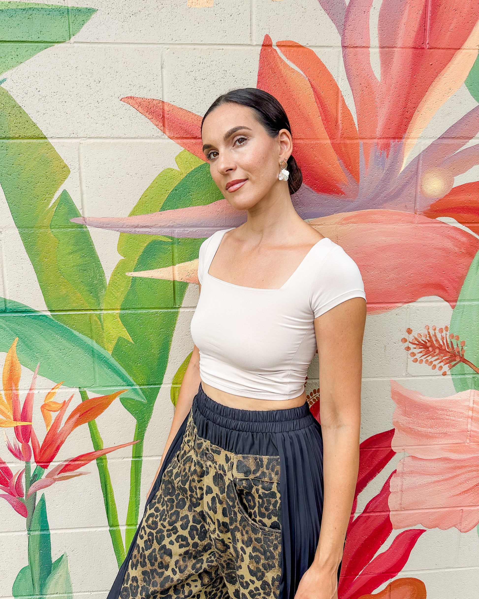 The Cora Baby Tee features a stylish double-layer square neck design that offers a comfortable and flattering fit. Its soft fabric ensures all-day ease, making it a perfect choice for casual wear or layering. This top combines simplicity with subtle elegance for a calm, effortless look.