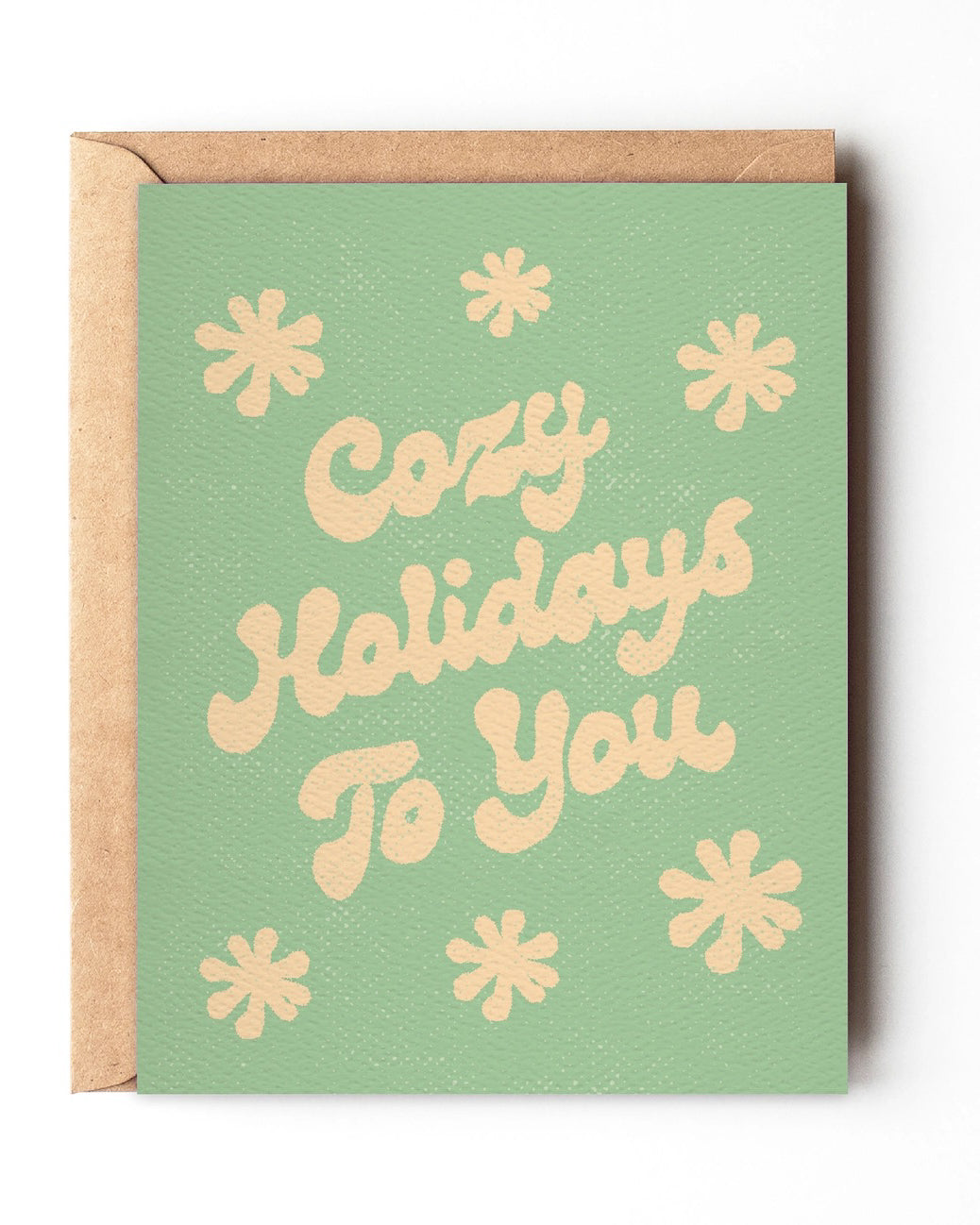 A pastel blue snowflake Holiday card. Featuring off-white lettering and snowflakes on a mint background, this card brings warmth to your holiday greetings. Our greeting cards are: