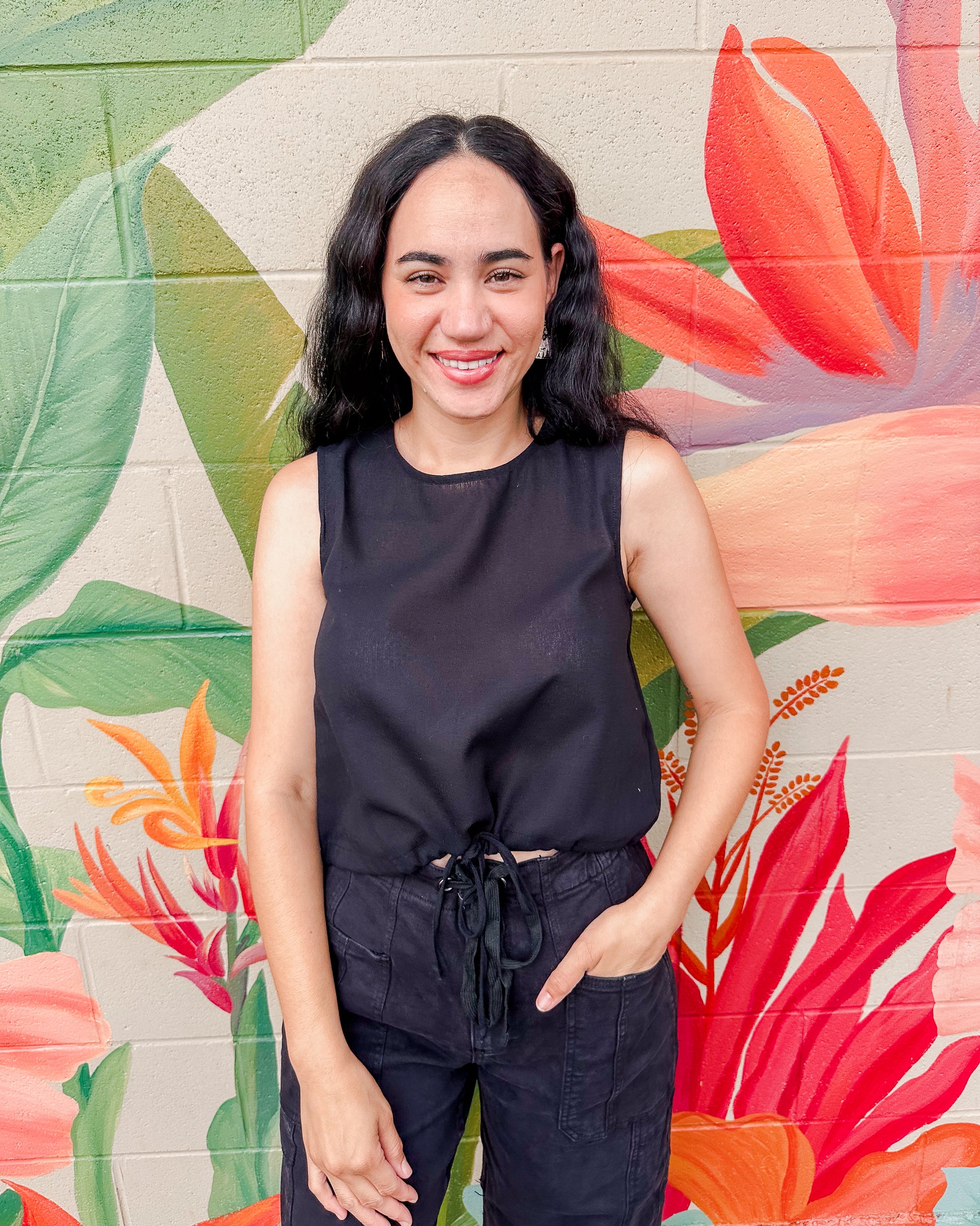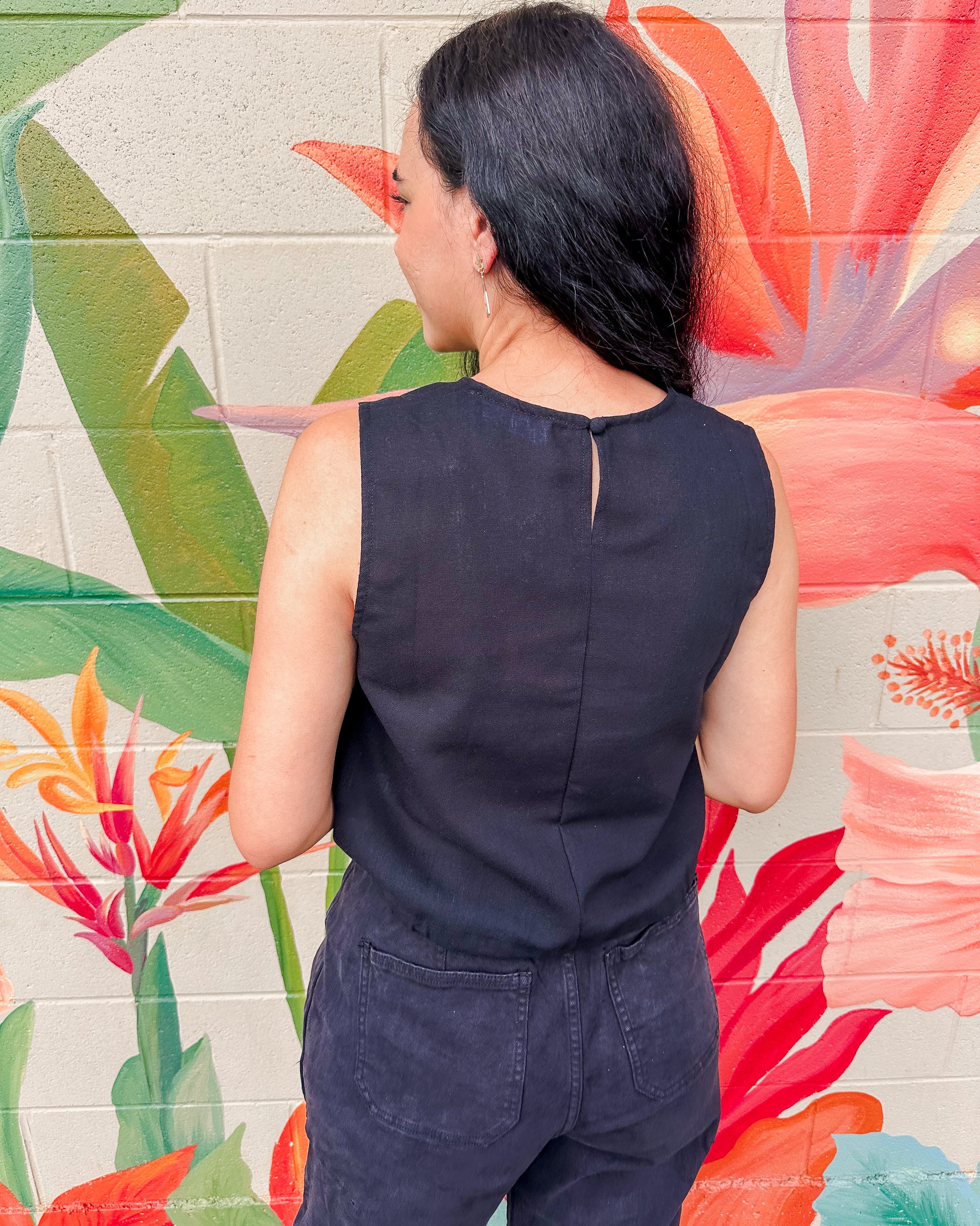 The Davie Top combines simplicity and comfort with its soft cotton linen fabric and sandwashed finish. Its crew neckline and sleeveless cut create a relaxed, airy feel, while the cropped hem adds a modern touch. A drawstring detail at the waist lets you adjust the fit to your liking, making it a versatile piece that pairs effortlessly with any outfit for an understated, charming look.