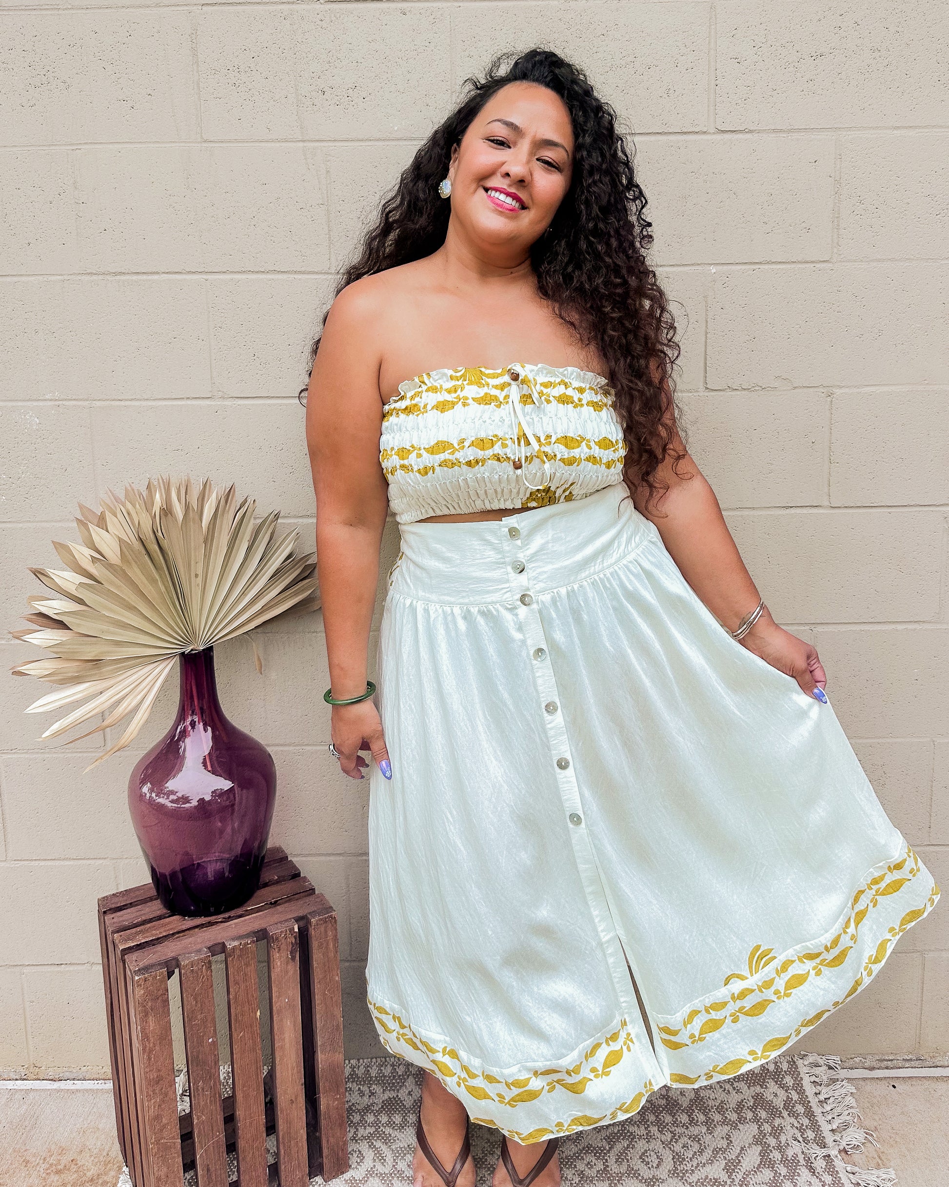 The Dean Top is a comfortable elastic smocked tube top that fits snugly while allowing easy movement. Its stretchy fabric contours to your shape for a flattering silhouette, making it perfect for warm days or layered looks. Simple yet stylish, it pairs effortlessly with your favorite bottoms for a relaxed, calm vibe.