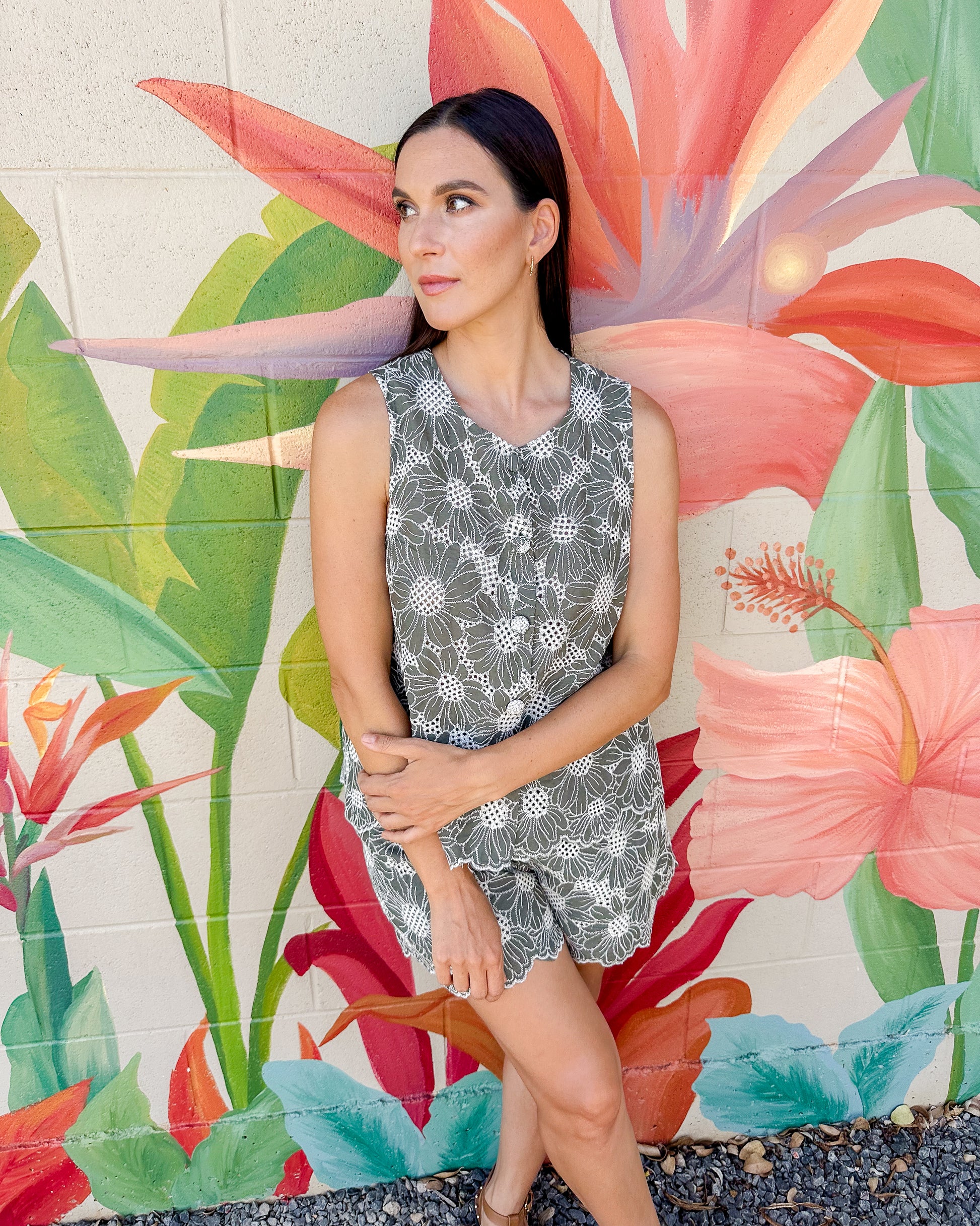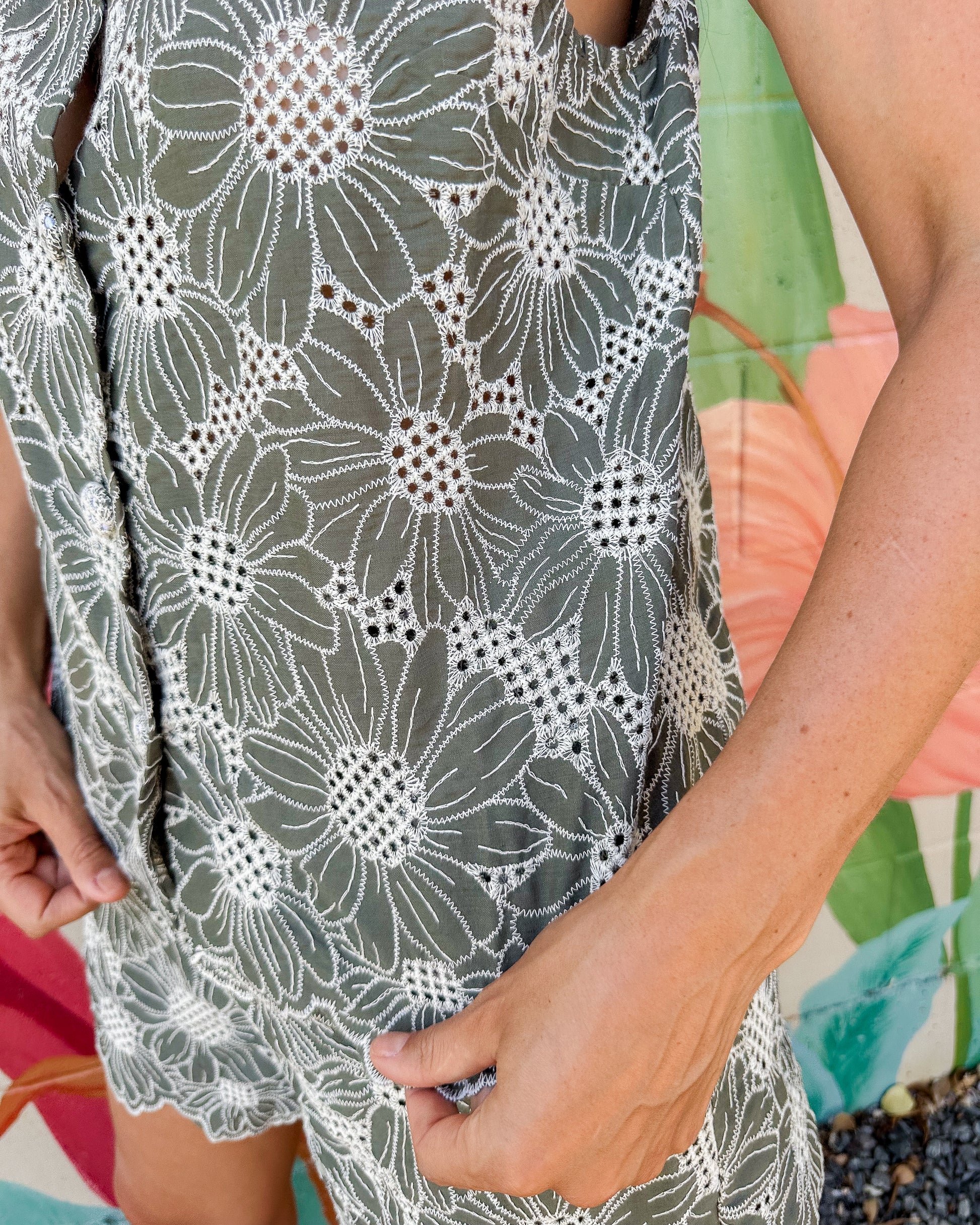 Delicate eyelet lace adorns this sleeveless vest, creating a breezy, effortless silhouette. The Delmar Tank offers versatile styling options for warm weather, with intricate detailing that elevates your everyday wardrobe.