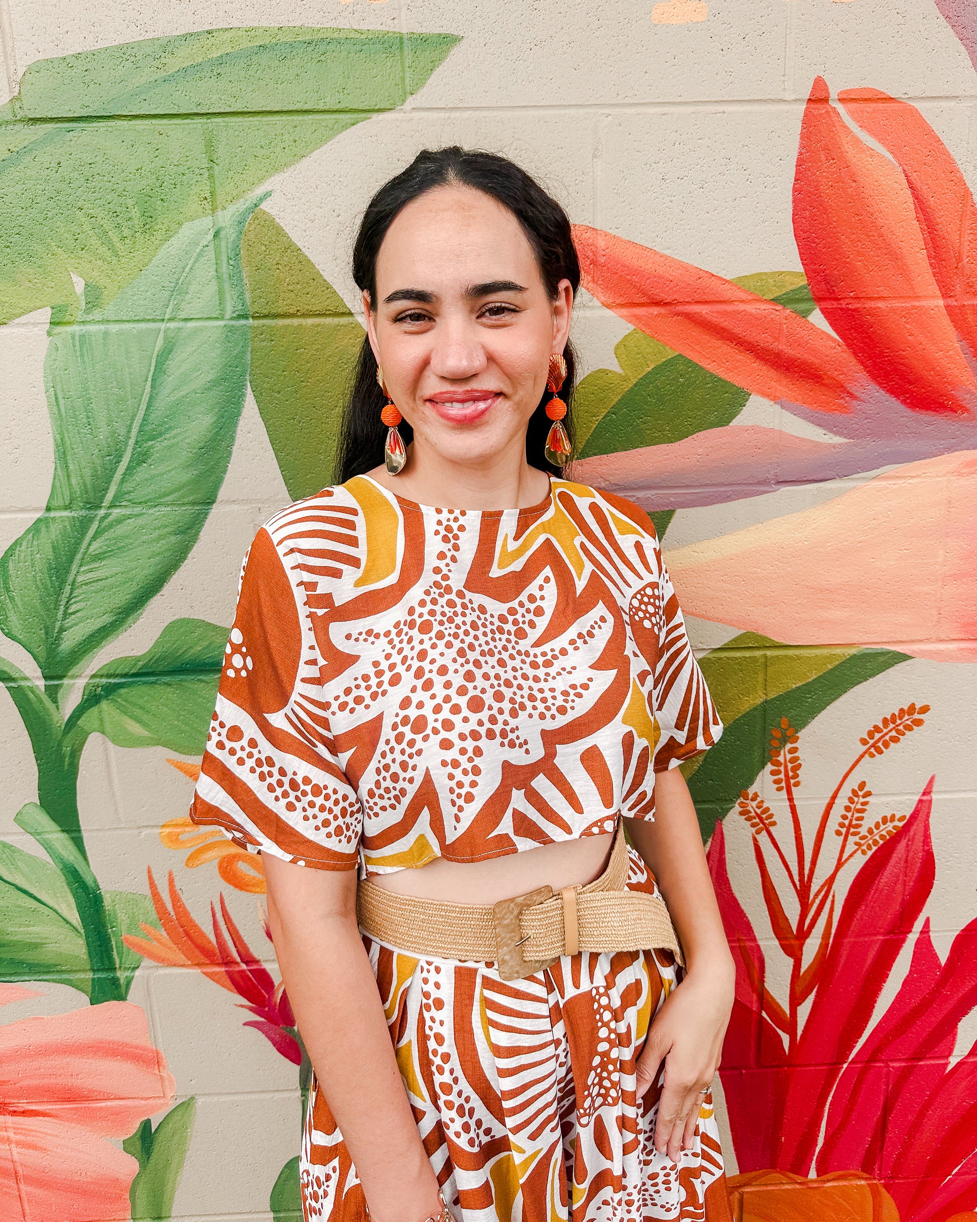 The Elio Top is a fun printed boxy cropped style that adds a playful touch to any outfit. Its relaxed silhouette and vibrant pattern make it perfect for casual days or layering, offering both comfort and a cheerful look.