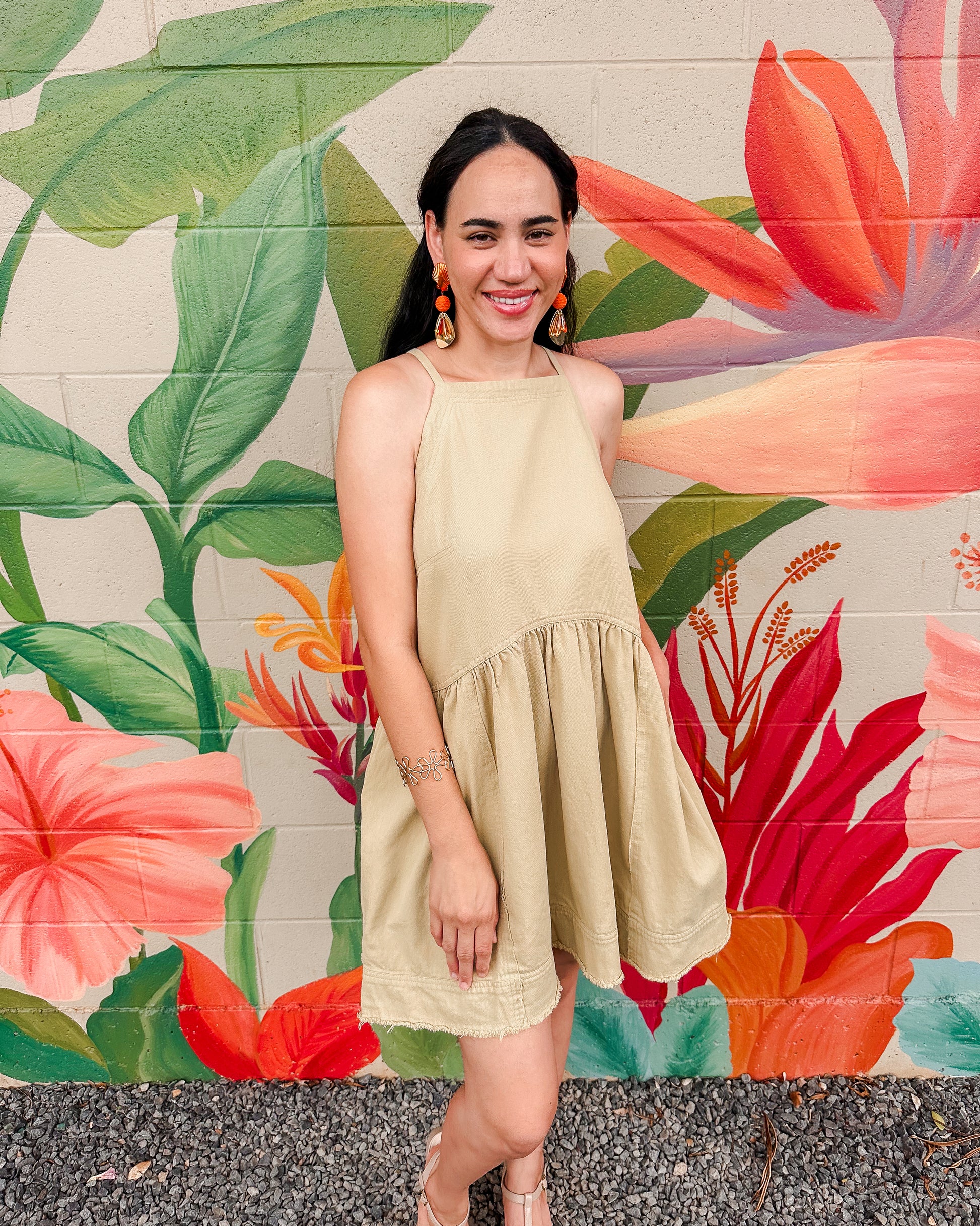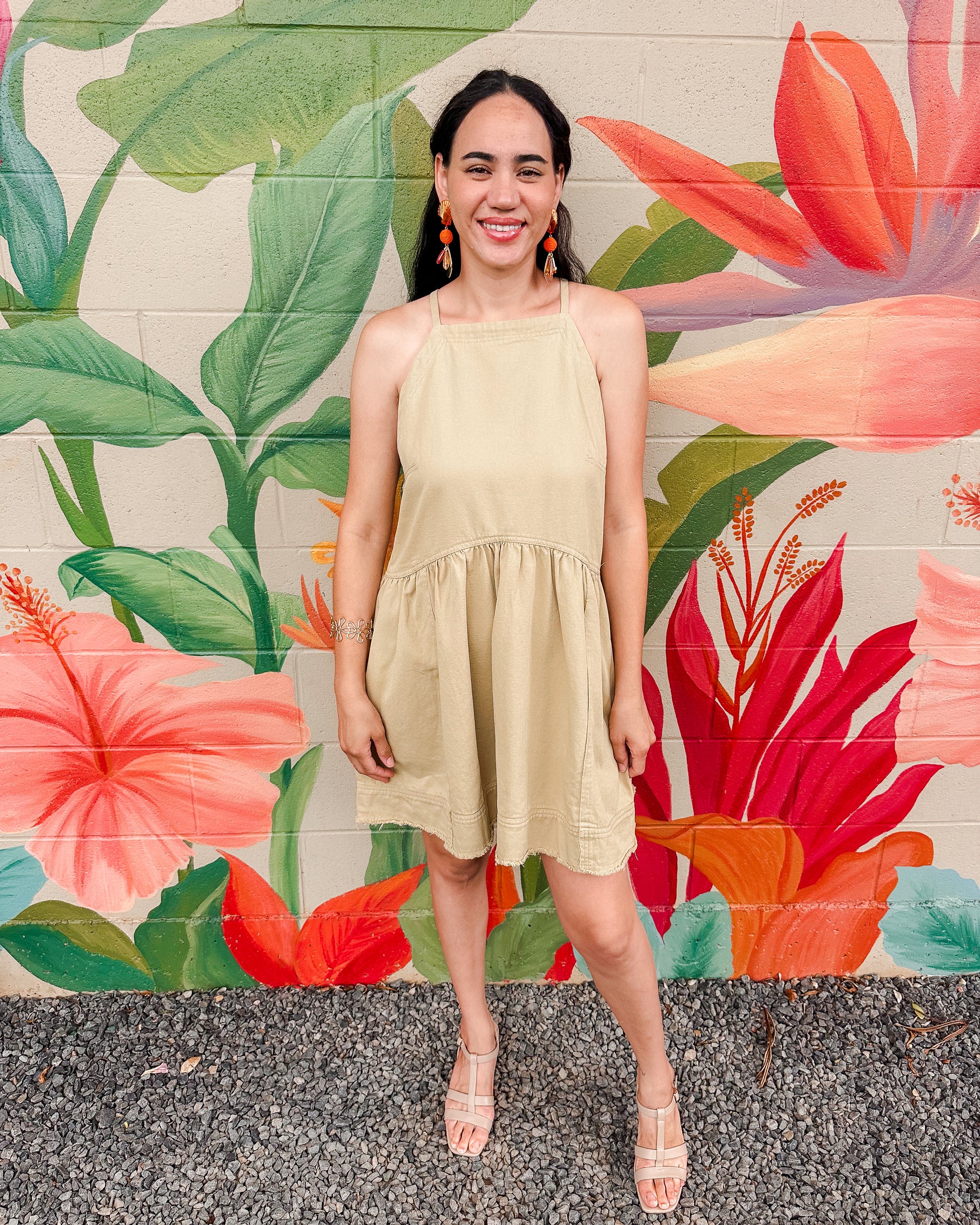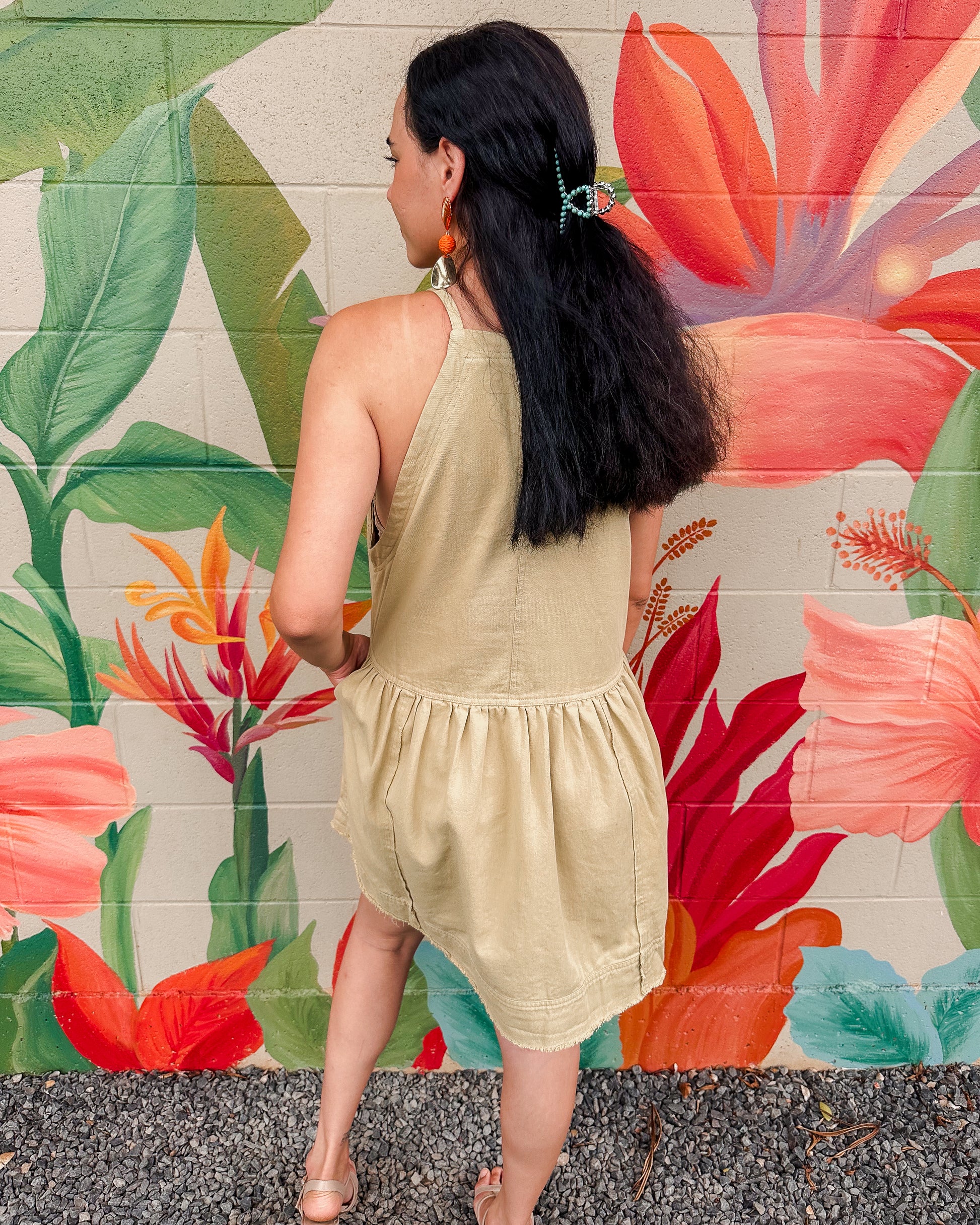 The Elsa Dress features delicate thin shoulder straps and a straight neckline, creating a simple yet elegant look. Its sleeveless bodice and dropped waist design offer a relaxed fit that flows gently into a flattering mini hem. Perfect for casual outings, this dress combines comfort with a charming silhouette.