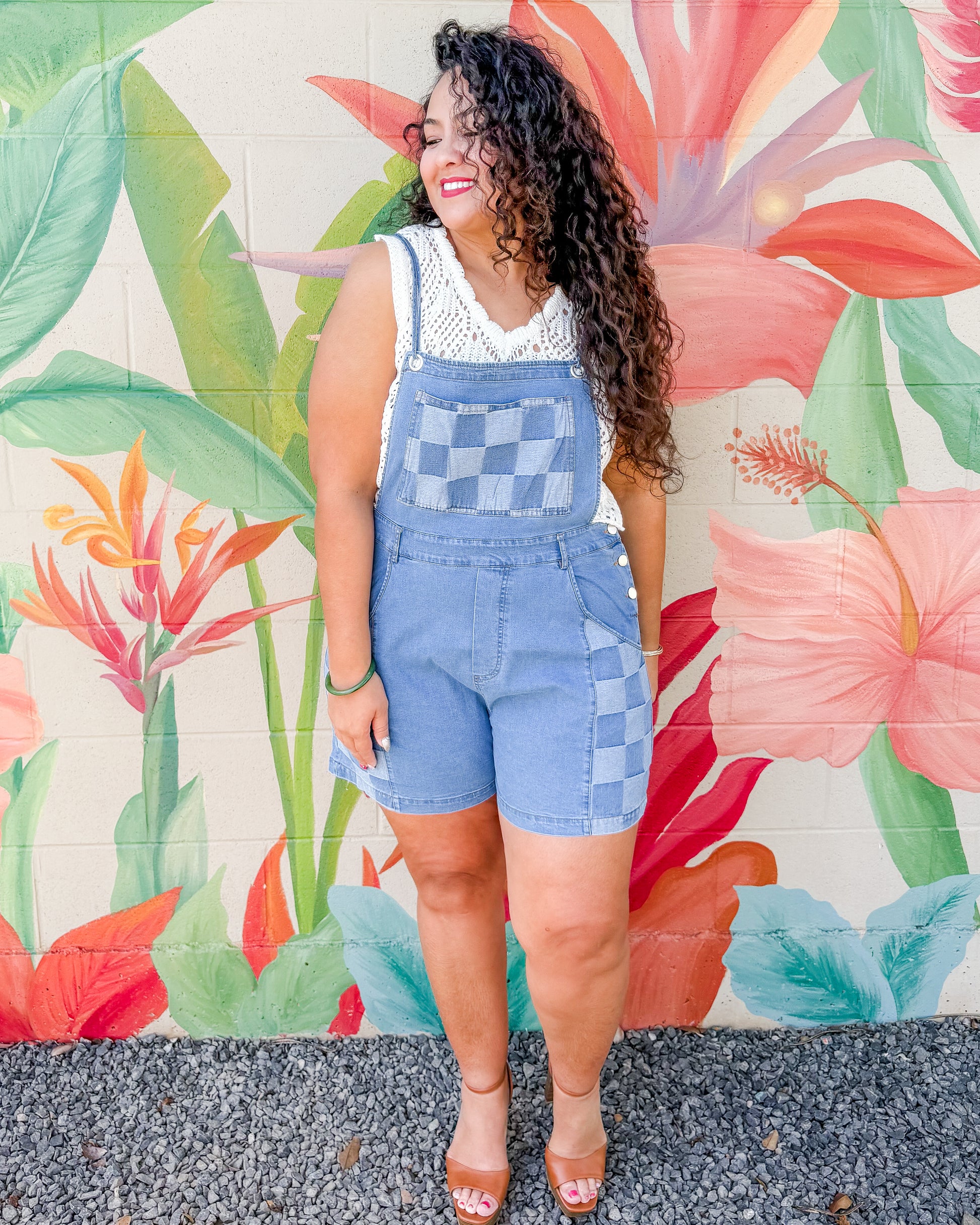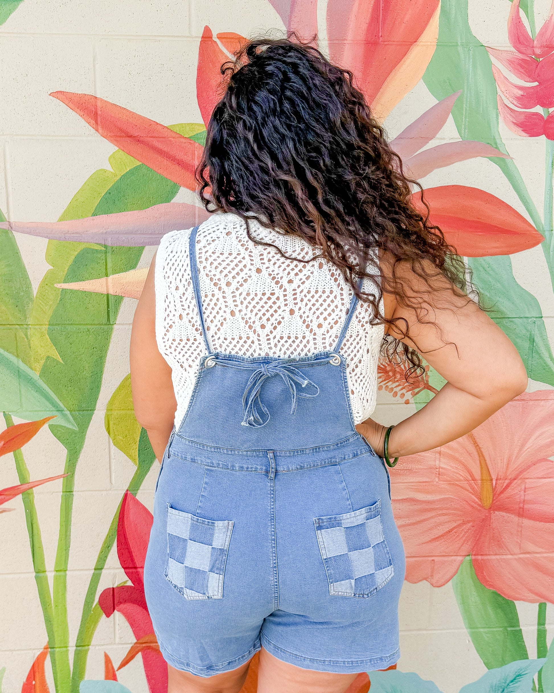 Enzo Shortalls feature a classic checkered pattern in soft washed denim blended with spandex for comfortable stretch and movement. The shortall style offers a playful, vintage-inspired look perfect for casual outings. Durable construction and breathable fabric make these a versatile wardrobe staple for everyday wear.