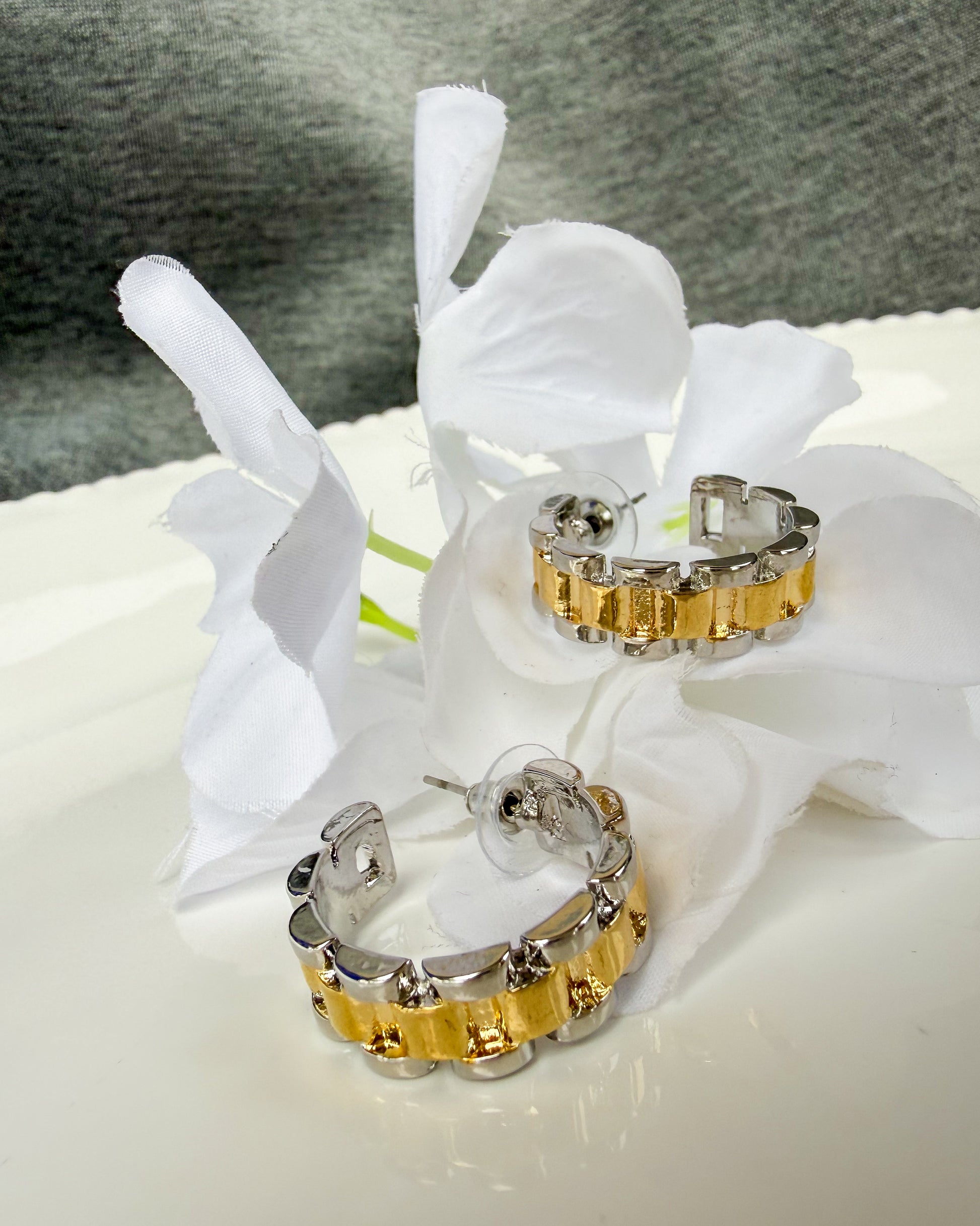 2-tone chain link hoops. Gold and silver plated.