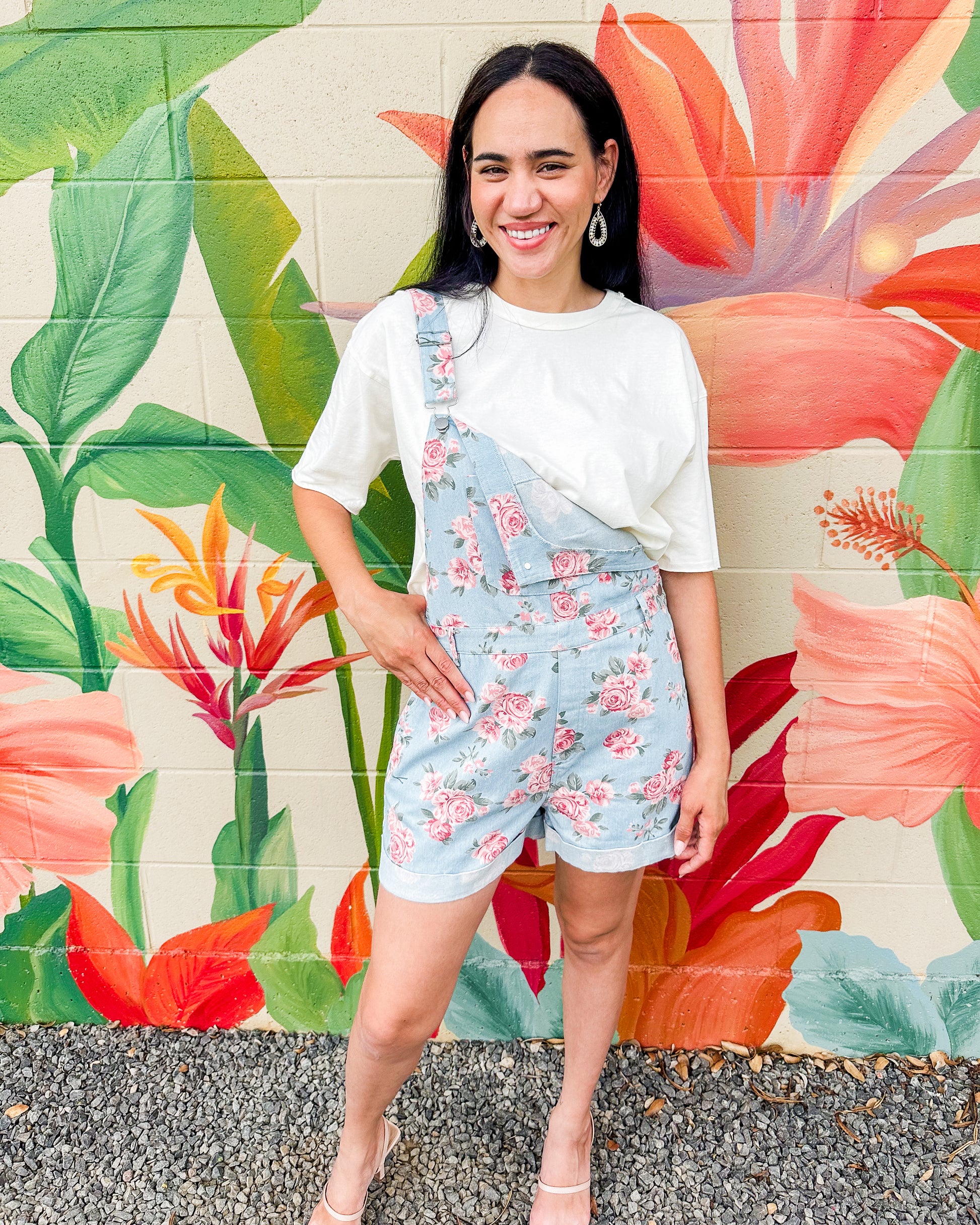 Embrace casual elegance with our Florita Shortalls. These floral print denim romper shortalls feature adjustable shoulder straps, a practical bib pocket, and stylish rolled hemlines. The convenient side button closures ensure a perfect fit, while the adjustable brace straps provide customized comfort for all-day wear.
