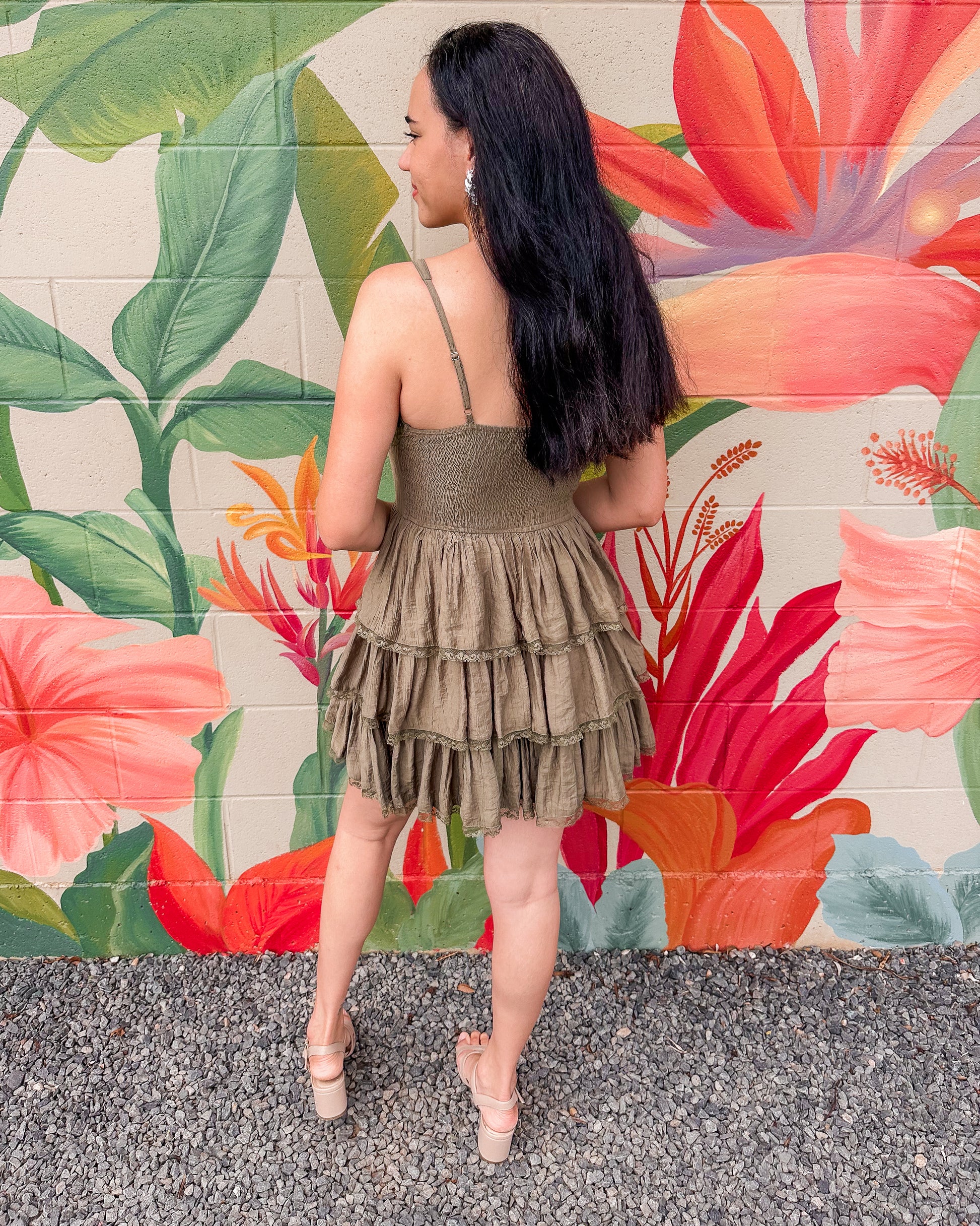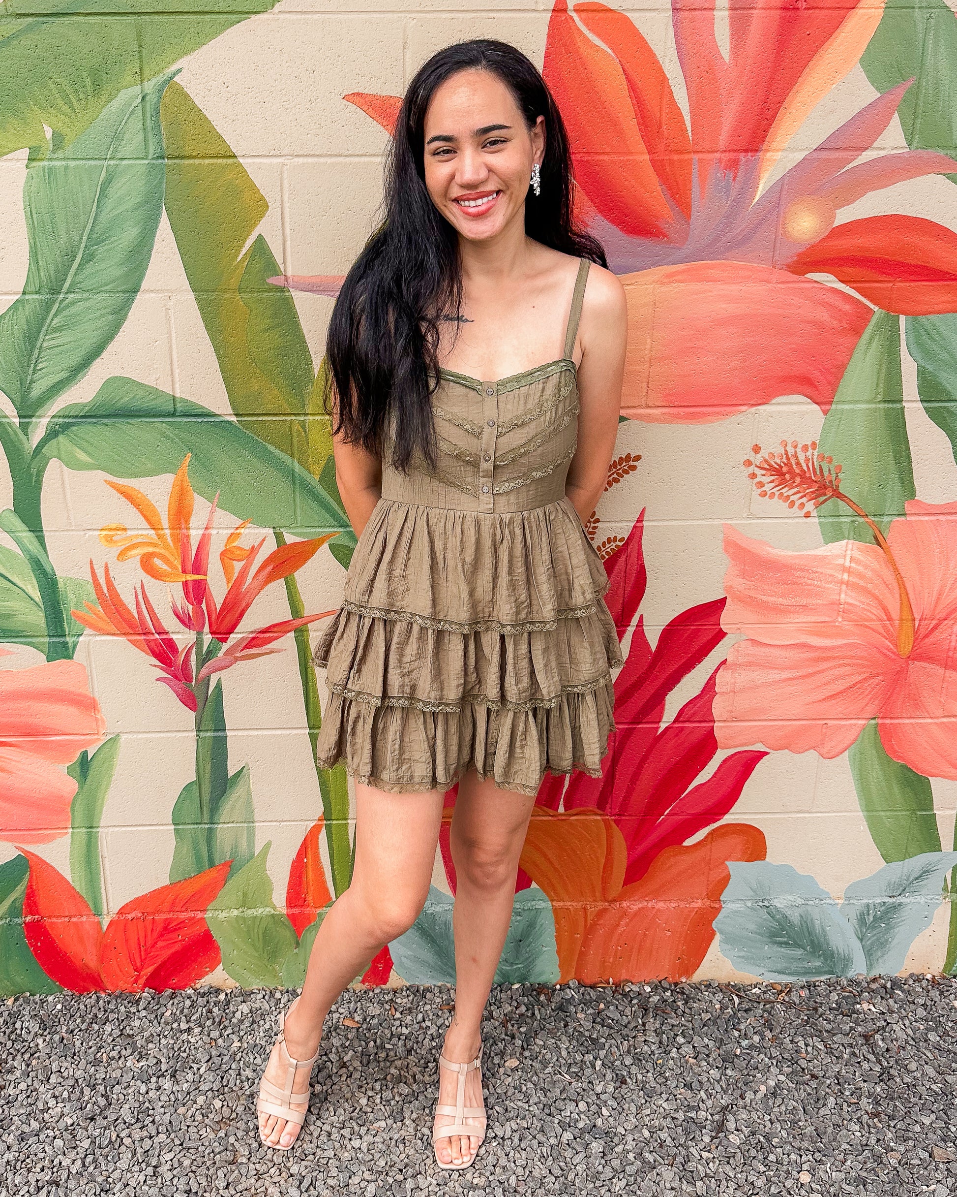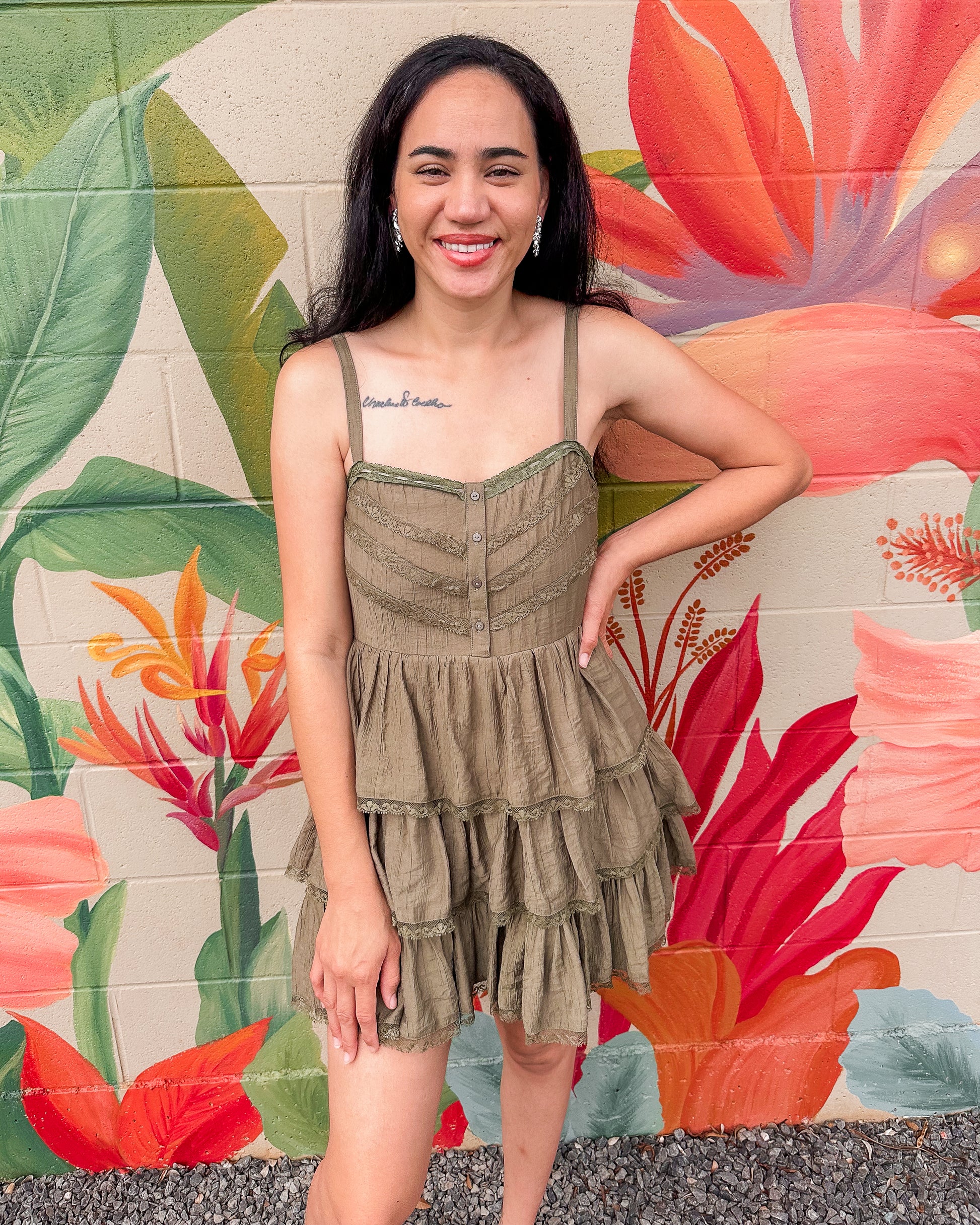 The Gary Dress features delicate ruffle lace detailing in a flattering mini silhouette. Perfect for date nights, parties, or any occasion where you want to feel effortlessly elegant. The soft lace construction offers a romantic touch while the ruffles add playful movement and dimension. A versatile piece that transitions beautifully from day to evening.