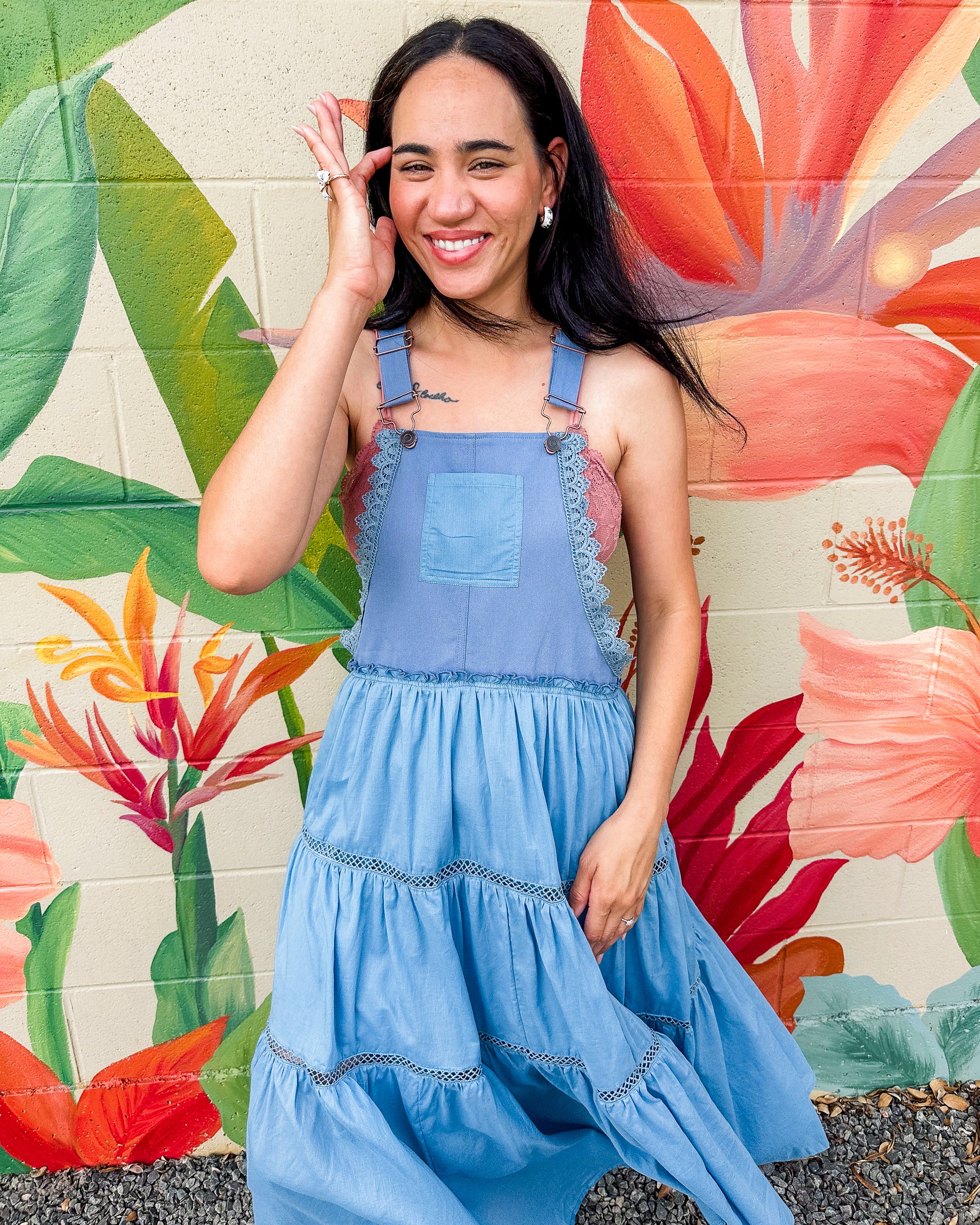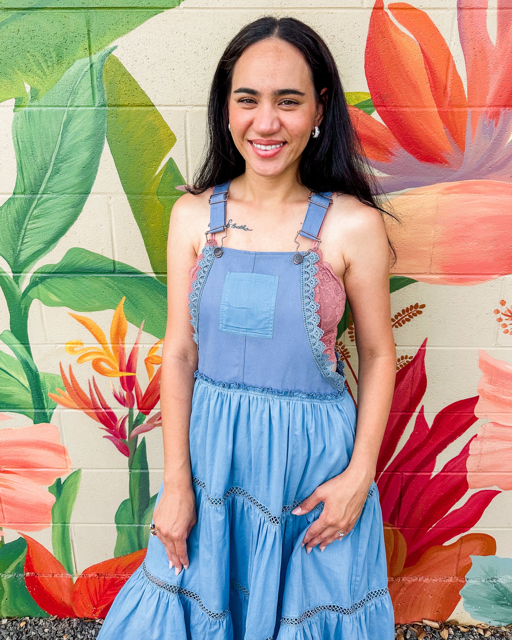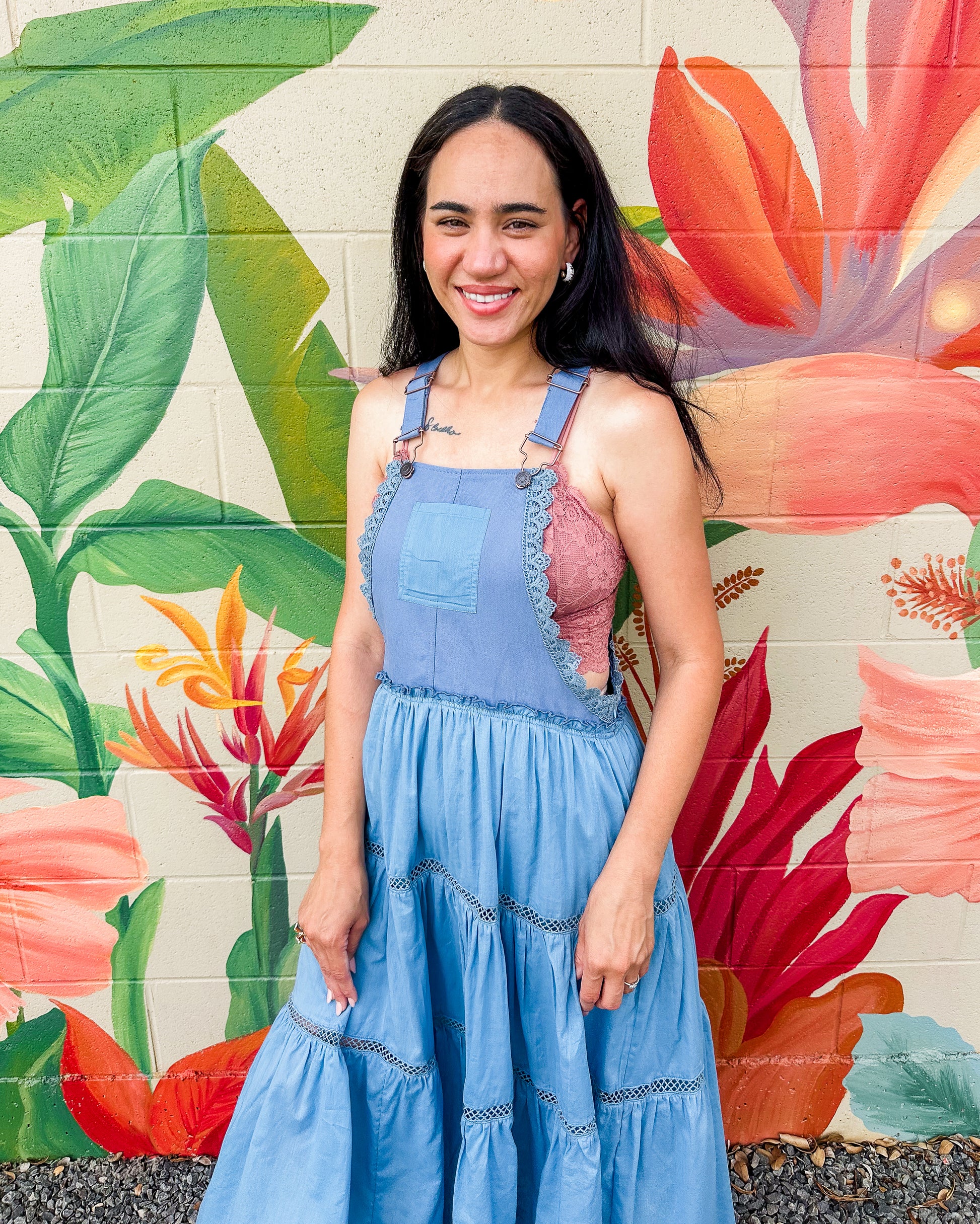 The Gerald Dress offers effortless style for any occasion. This mixed media overall dress combines comfort with island-inspired design through its relaxed bodice and flowing tiered maxi skirt. Featuring practical thick shoulder straps with hook closures and a convenient front chest pocket, it's the perfect versatile piece for your wardrobe. Embrace casual elegance all season long.