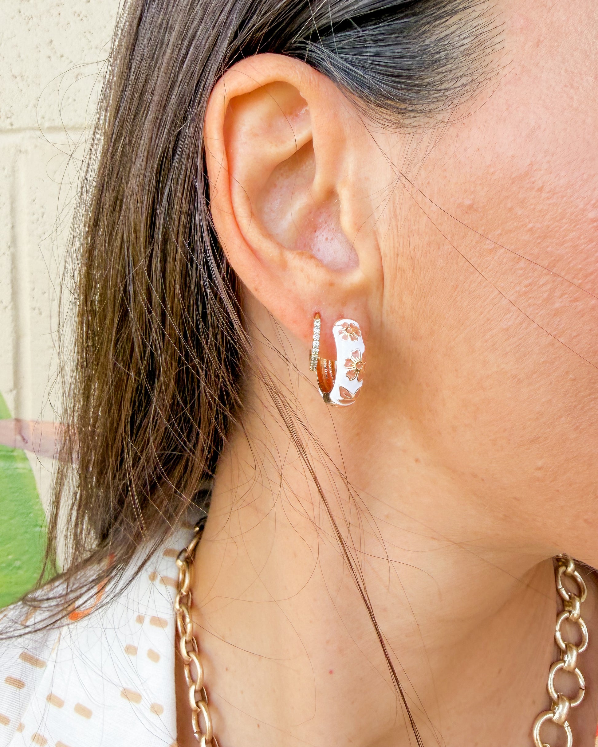 Dainty floral huggies that are sure to match all of your Spring outfits. Gold plated.