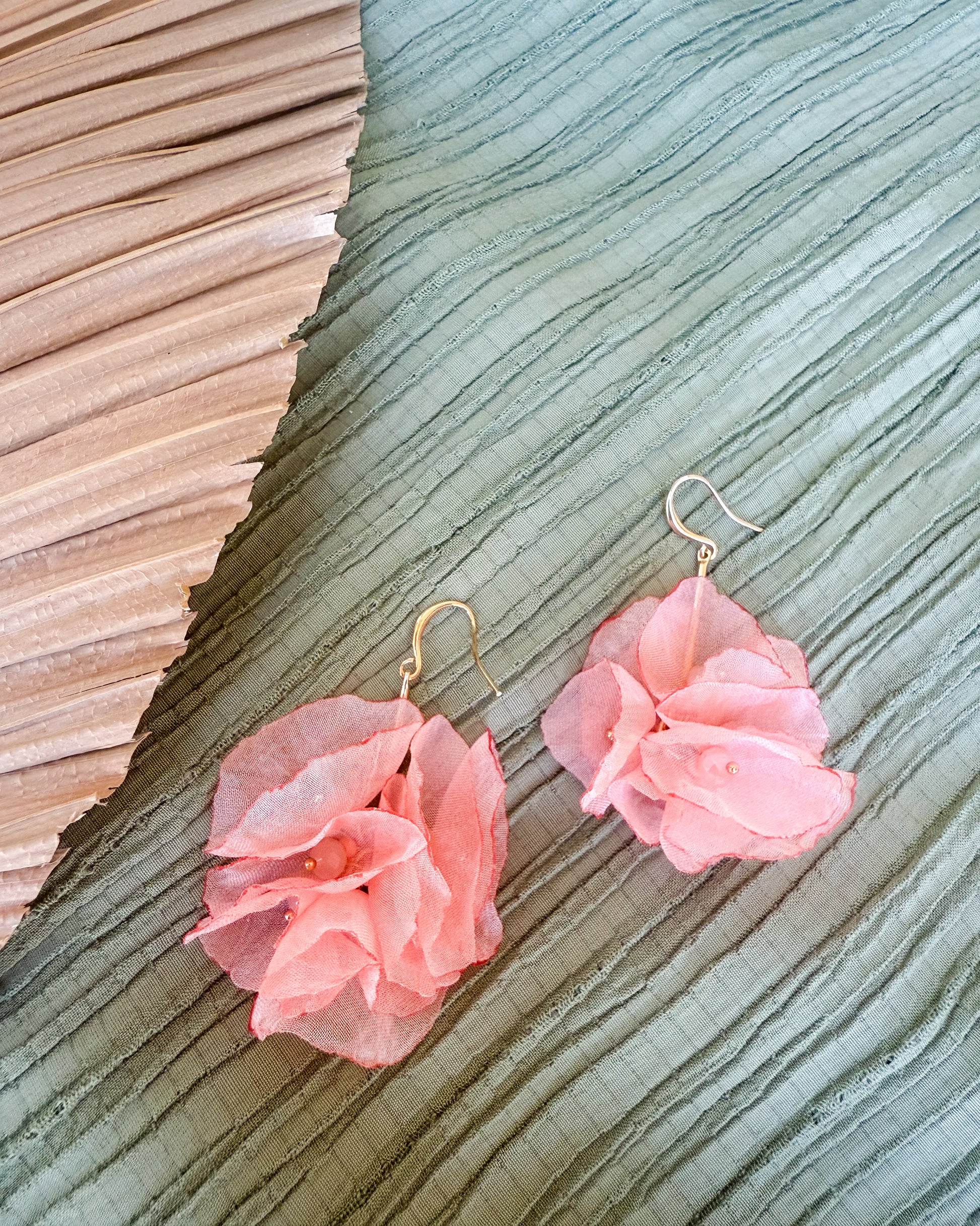 These cute gold plated dangles feature pink floral pom poms that remind of us rosey cheeks! Lightweight & easy to wear, what a fun pop of color for your next simple outfit!