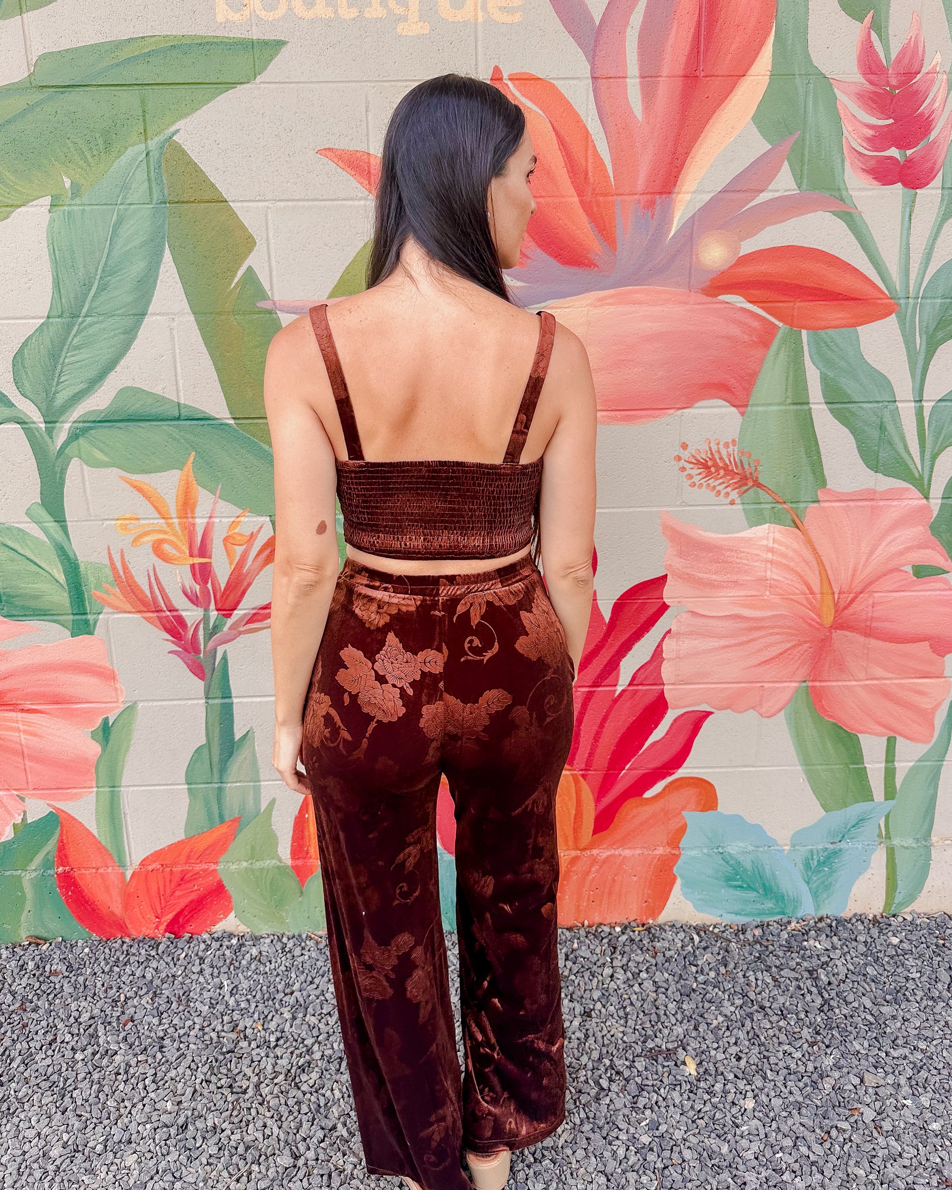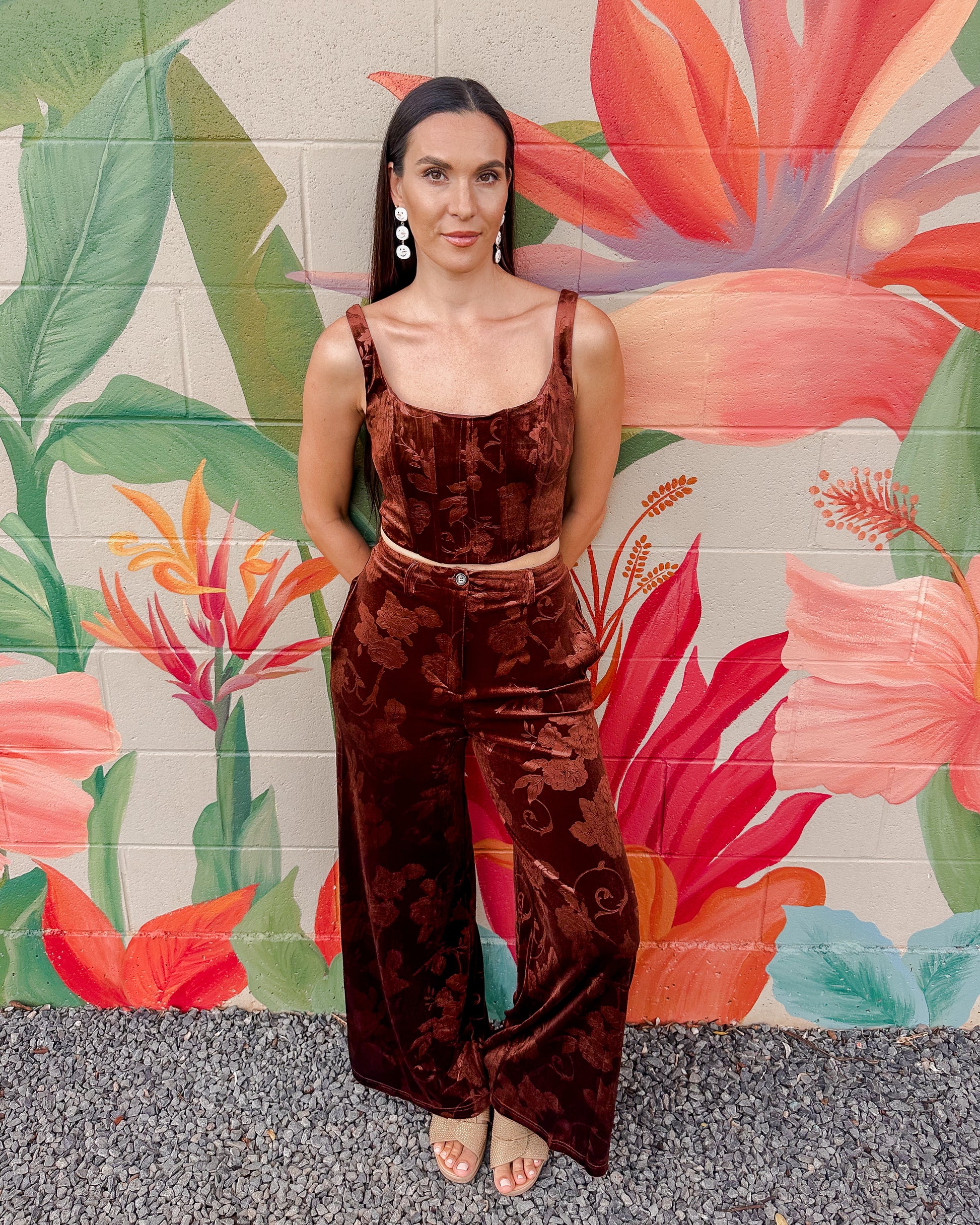 Slip into the Harlan Pants and enjoy a flattering high-waisted silhouette paired with luxurious stretch velvet. The jacquard print brings visual interest while the flexible fabric ensures all-day comfort. A versatile piece that transitions seamlessly from casual to dressed up.
