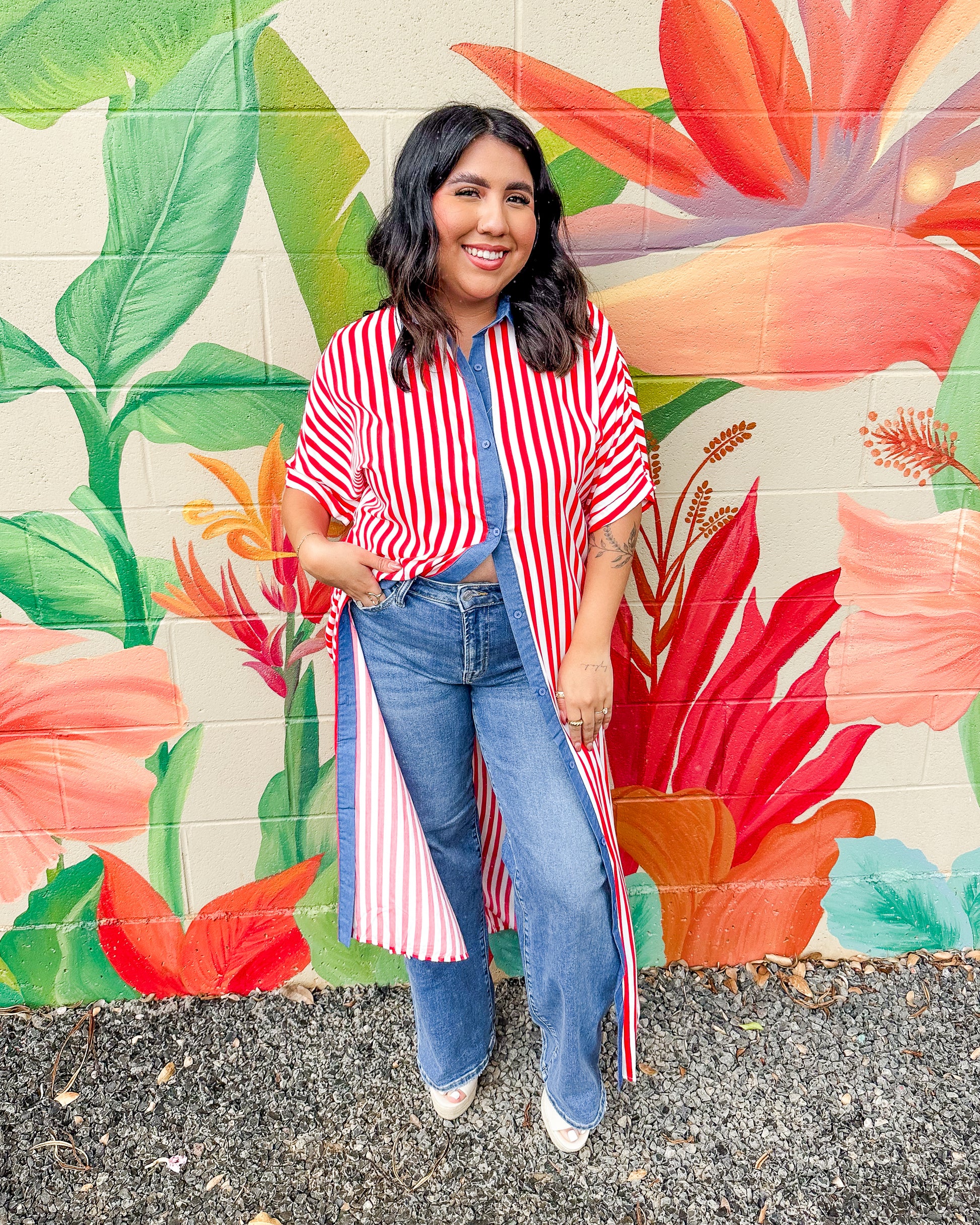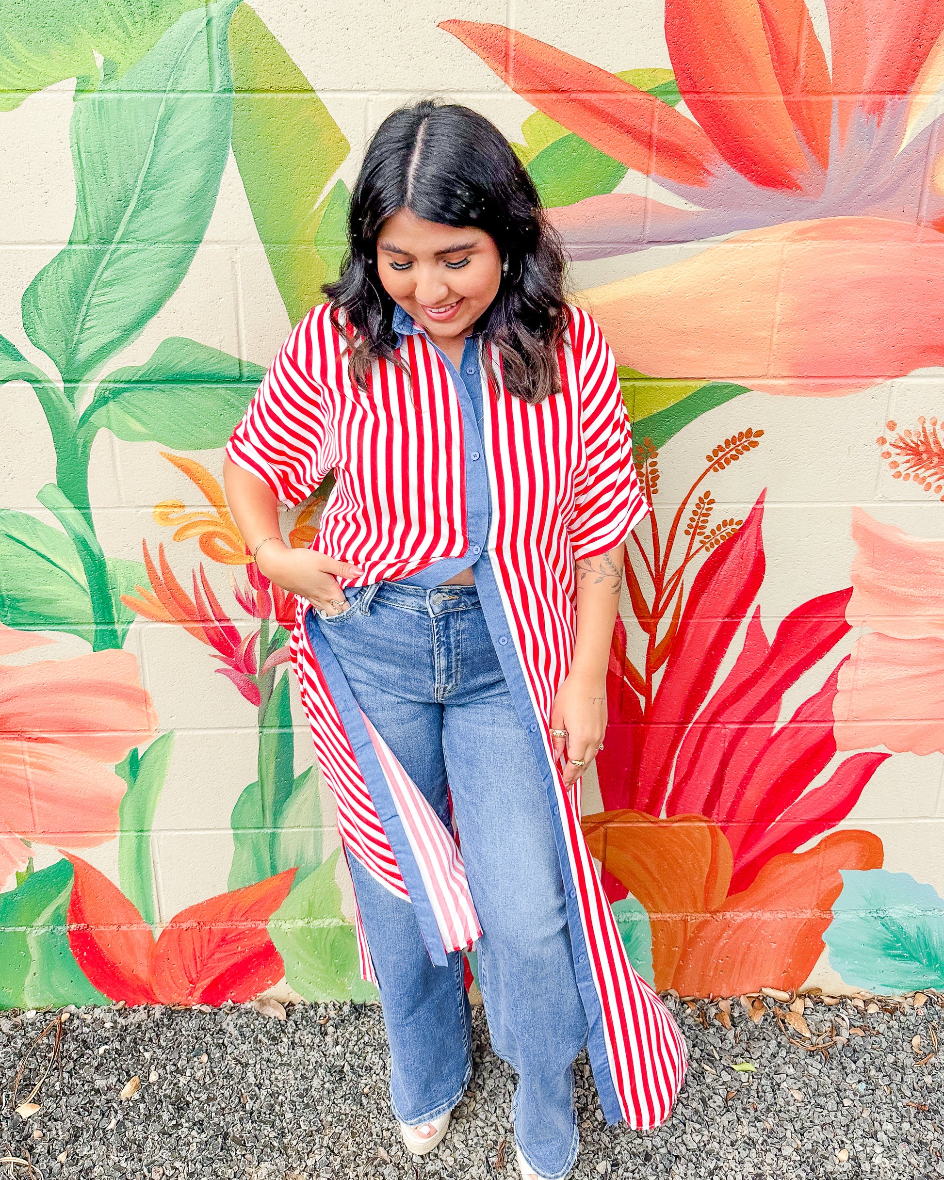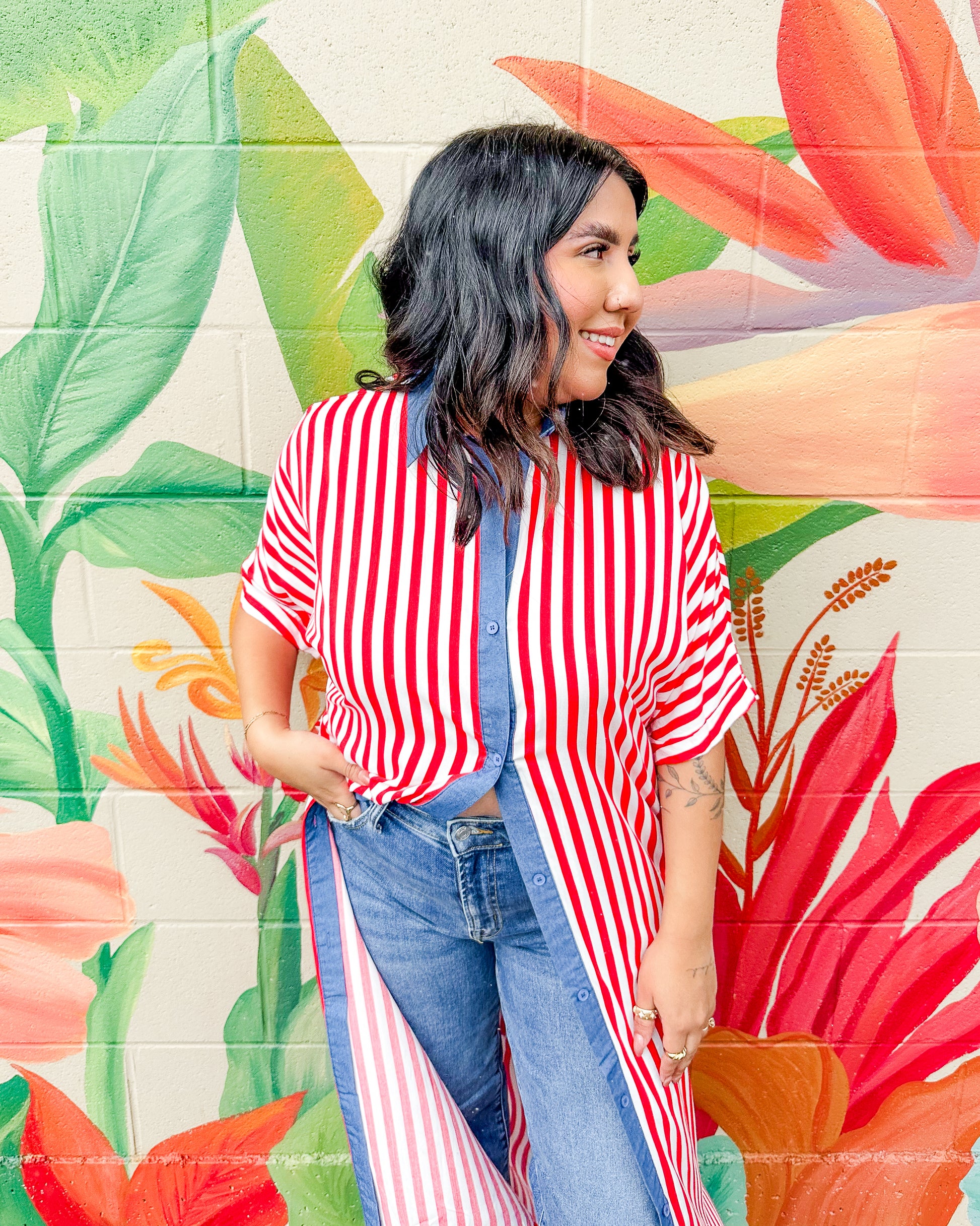 The Janine Shirt Dress features classic stripes and a button-down front, offering a relaxed yet polished look. Its lightweight fabric ensures comfort throughout the day, making it perfect for casual outings or effortless office wear. The timeless design allows for easy styling, providing a versatile addition to your wardrobe.