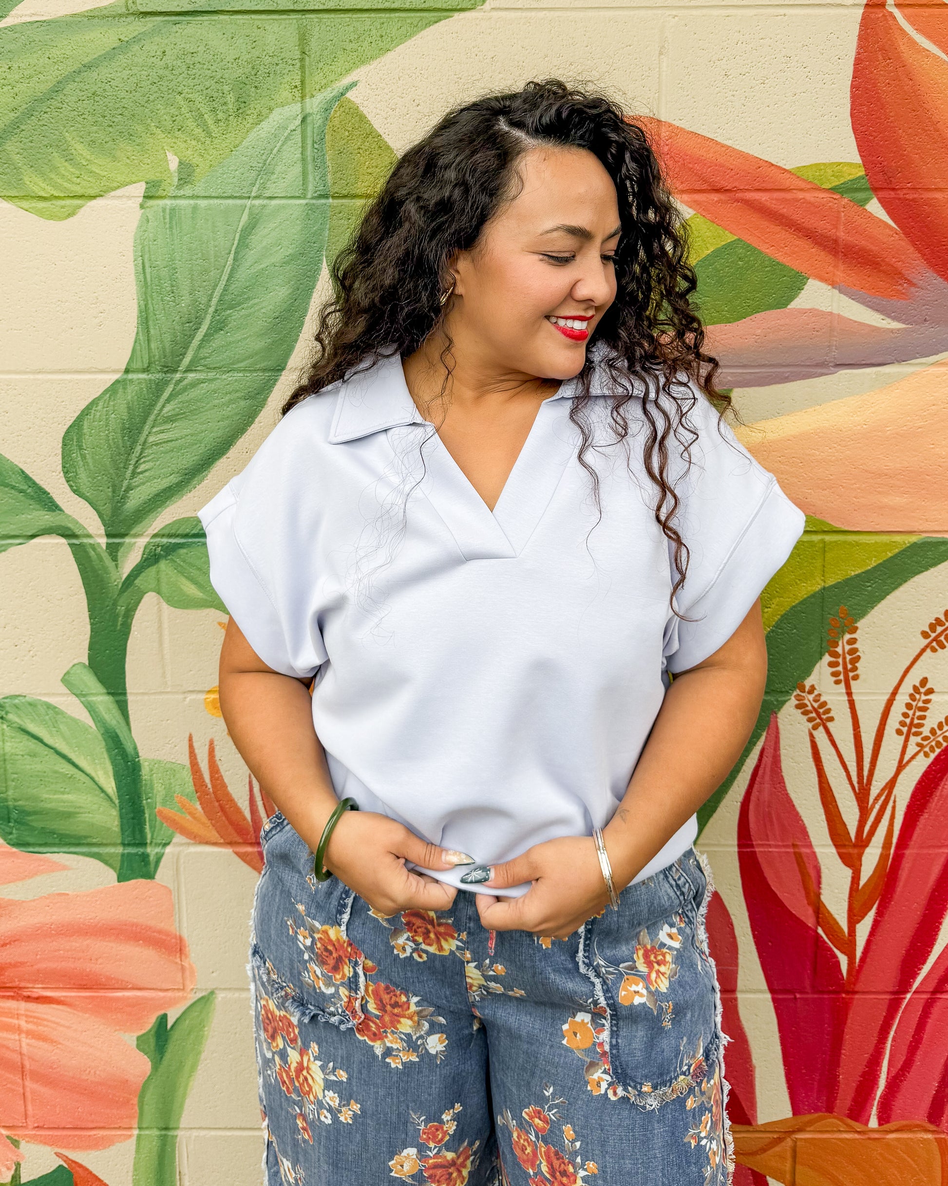 The Kayla Top features a flattering V-neckline and relaxed wide short sleeves for effortless style. Crafted from buttery soft fabric with stretch, it moves with you throughout your day. Ribbed hem keeps the silhouette polished and put-together.