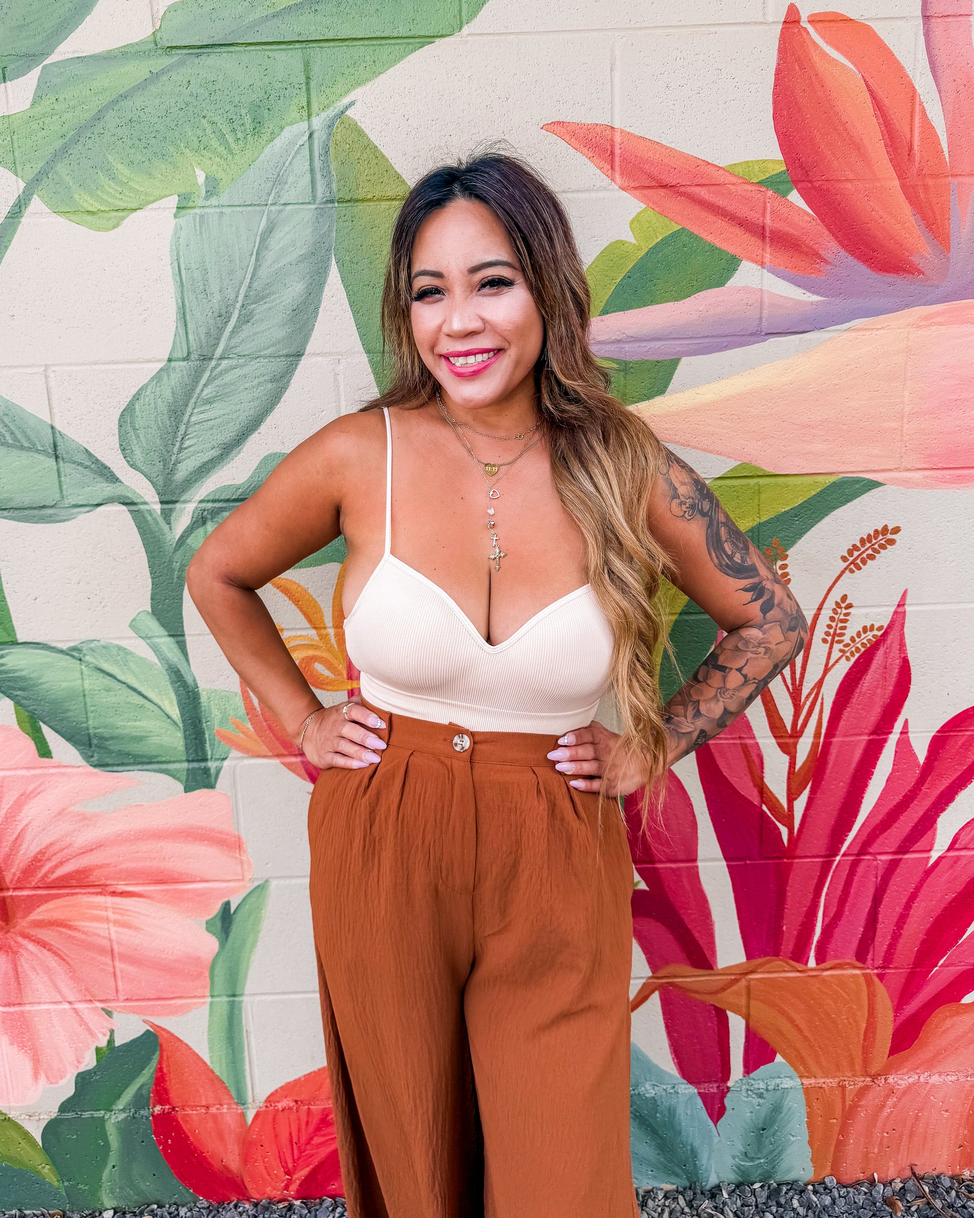 The Lia Tank features a solid fine rib design with a built-in padded bra cup, offering gentle support and a smooth silhouette. Its camisole style provides comfortable coverage, making it an ideal layering piece or a standalone top for relaxed, everyday wear.