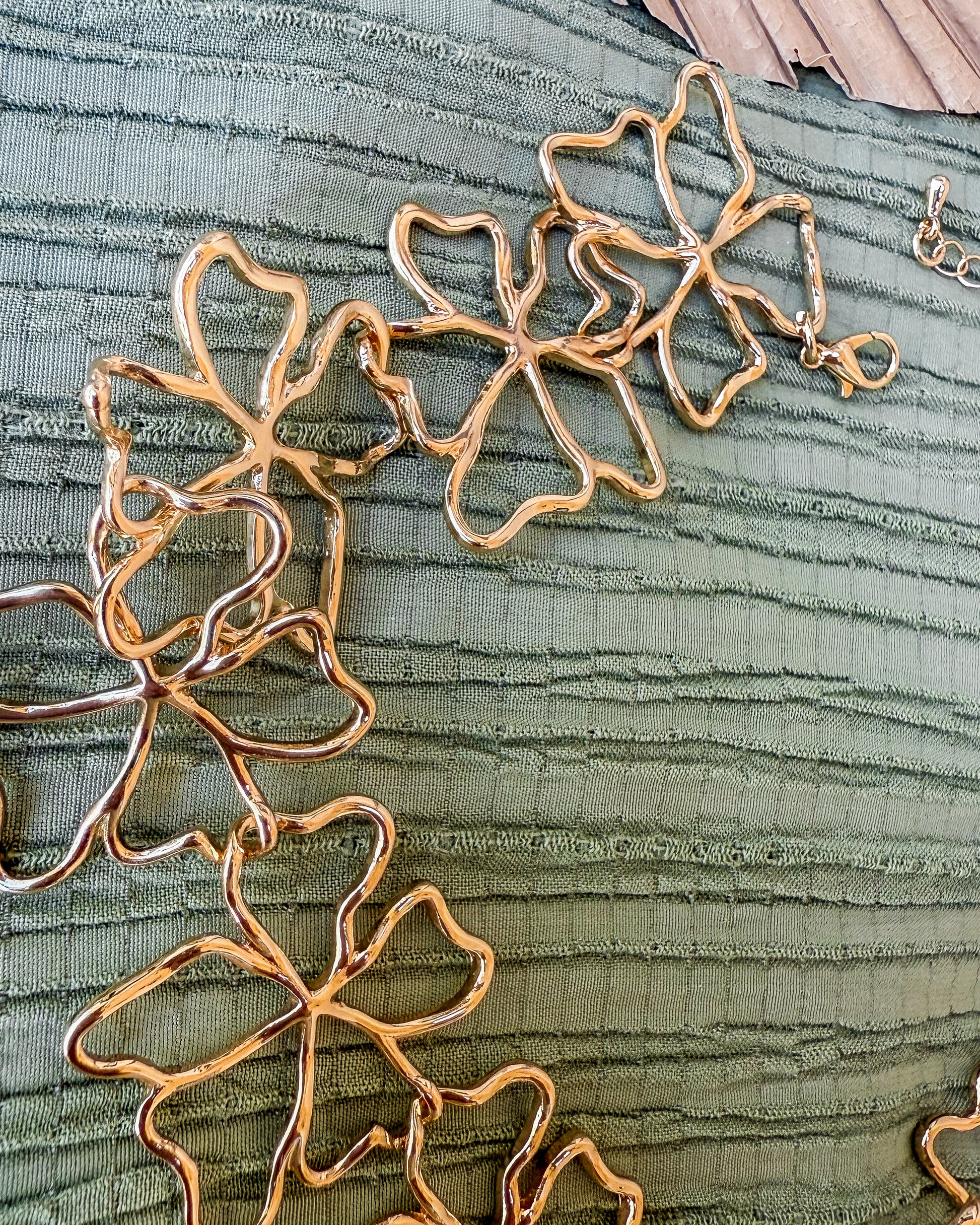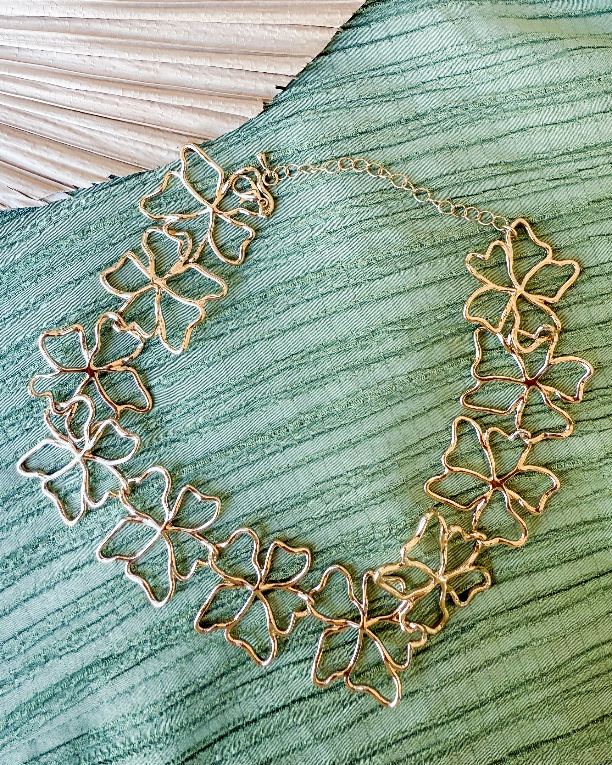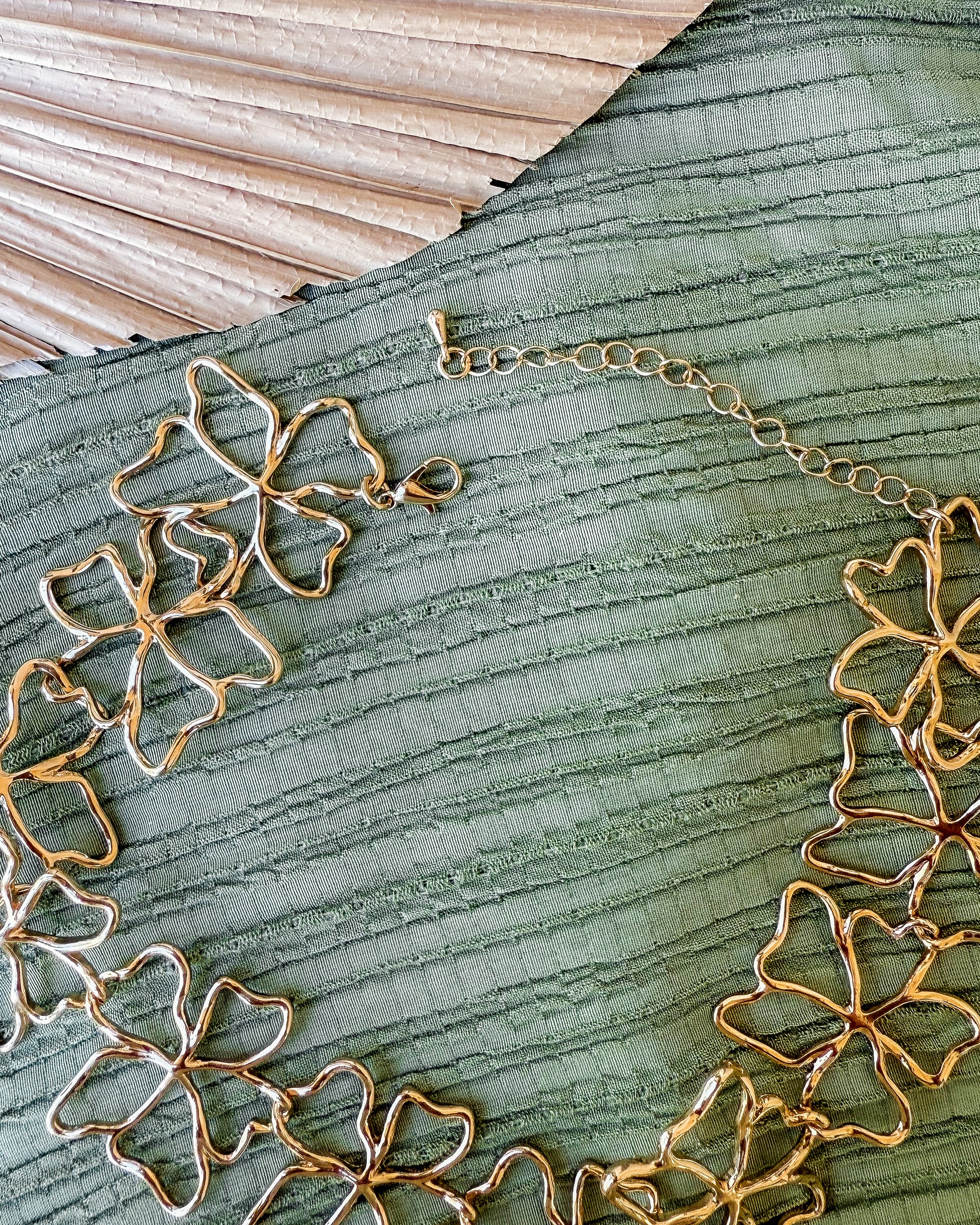Gorgeous gold plated organic floral link necklace with adjuster. The perfect little statement for your bare décolleté.