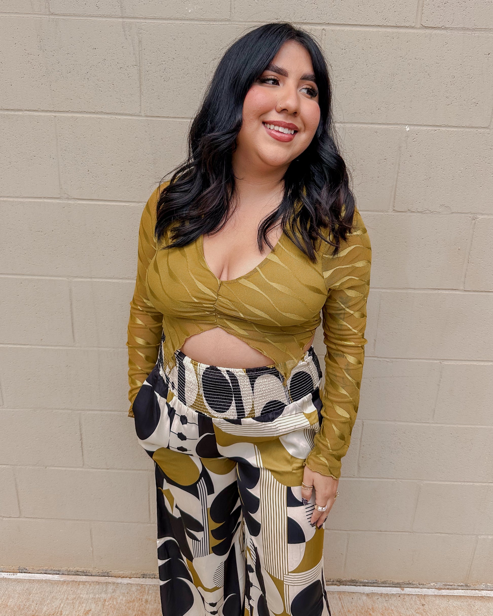 The Mariah Top is a stylish long sleeve mesh crop top designed with a unique split front hem that adds a subtle edge to your look. Its breathable mesh fabric ensures comfort while layering or wearing alone, perfect for casual outings or evening wear. The crop length pairs well with high-waisted bottoms, offering a balanced silhouette and effortless style.