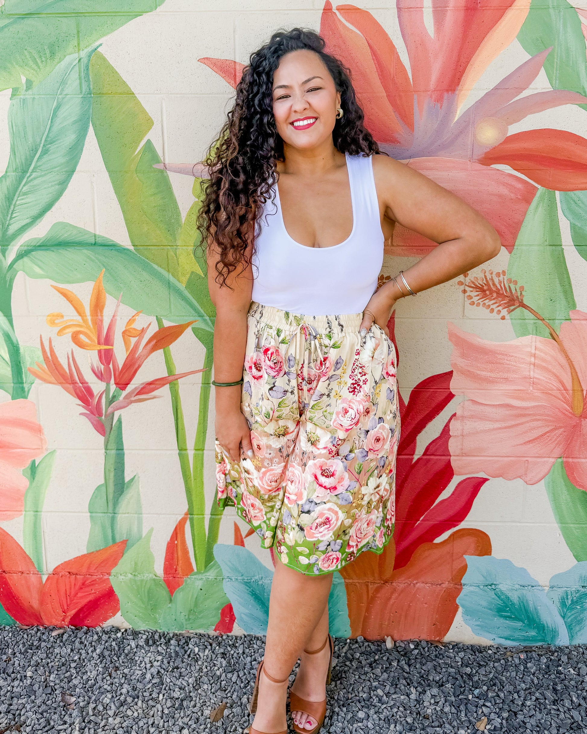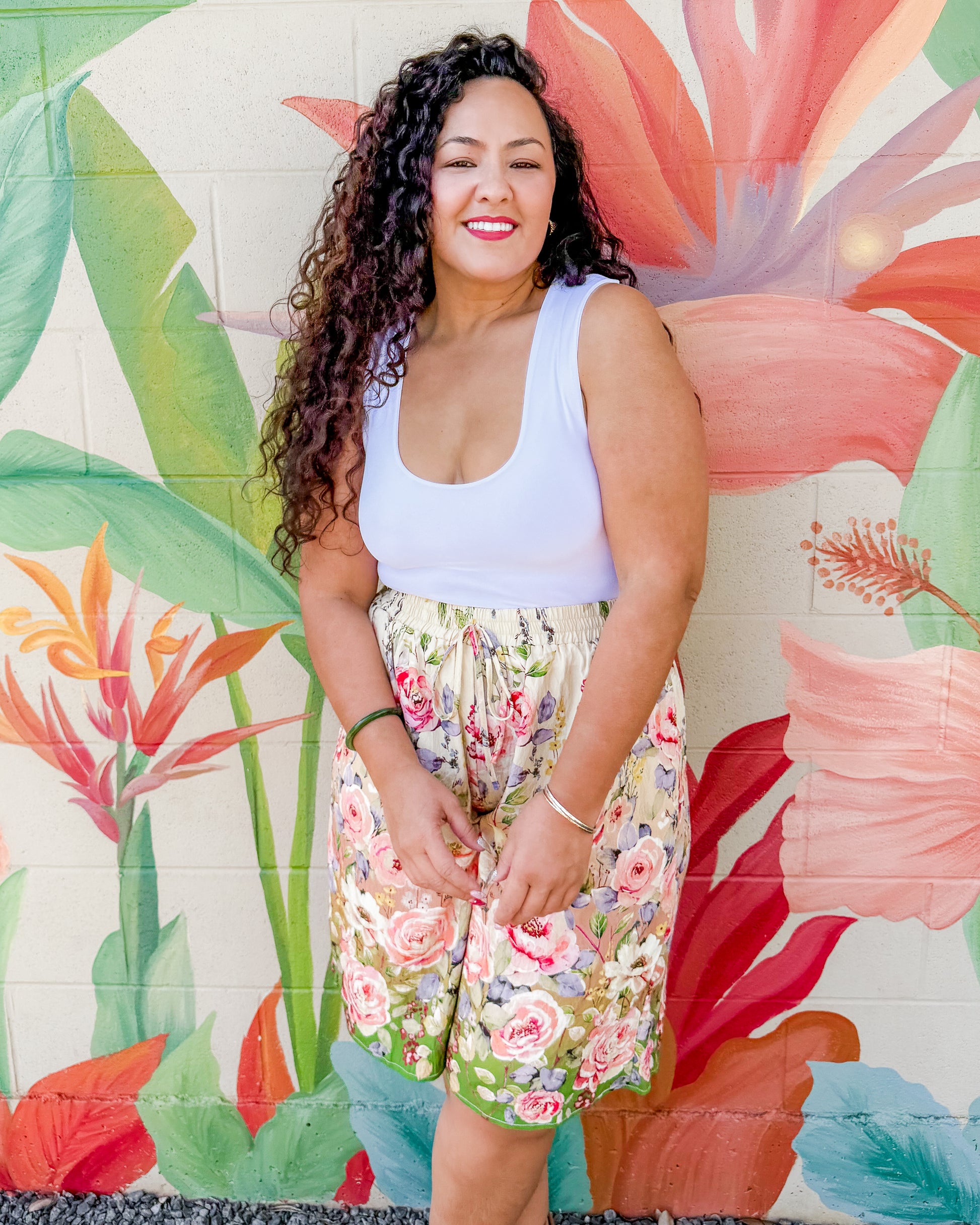 Effortless style meets comfort in these floral printed culottes. The elastic waistband and relaxed drape create an easy, breezy fit perfect for warm days. Slip them on and go—no fuss, just flattering.