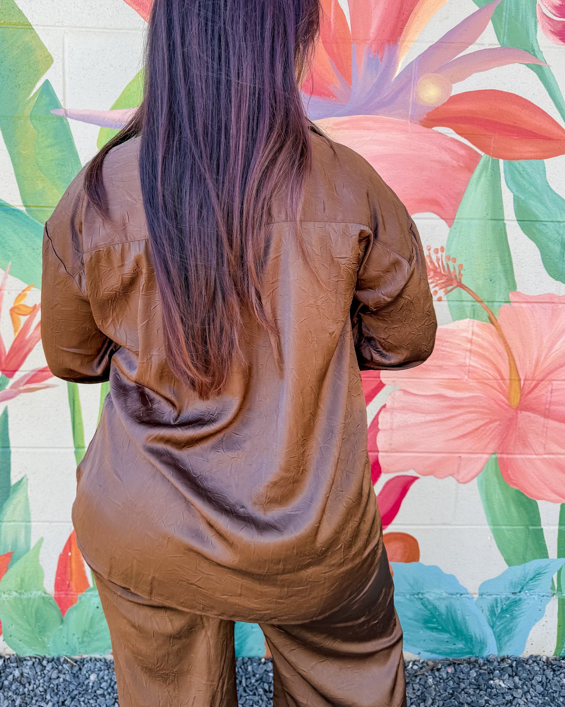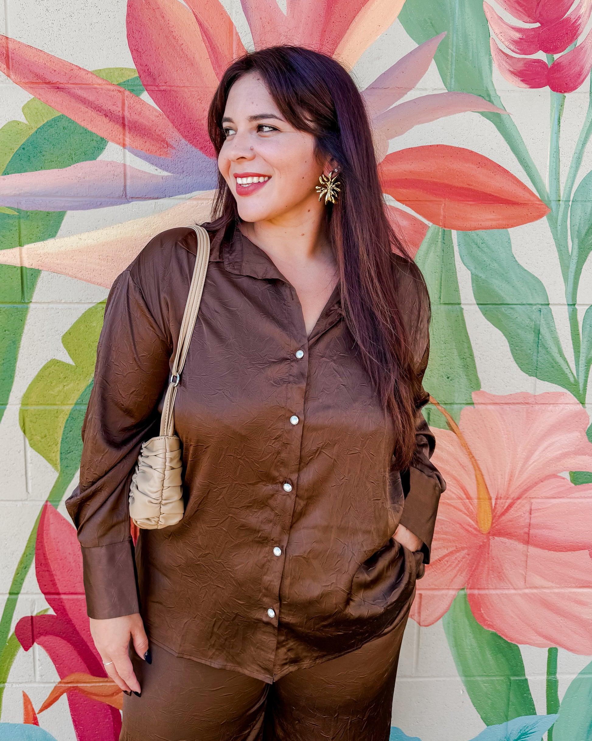 The Melba Top features a distinctive wrinkled texture that adds visual interest and dimension to your everyday wardrobe. This classic button-down shirt is crafted with quality pearl buttons for a polished finish. Perfect for layering or wearing solo, it's a versatile piece that effortlessly transitions from casual to put-together.