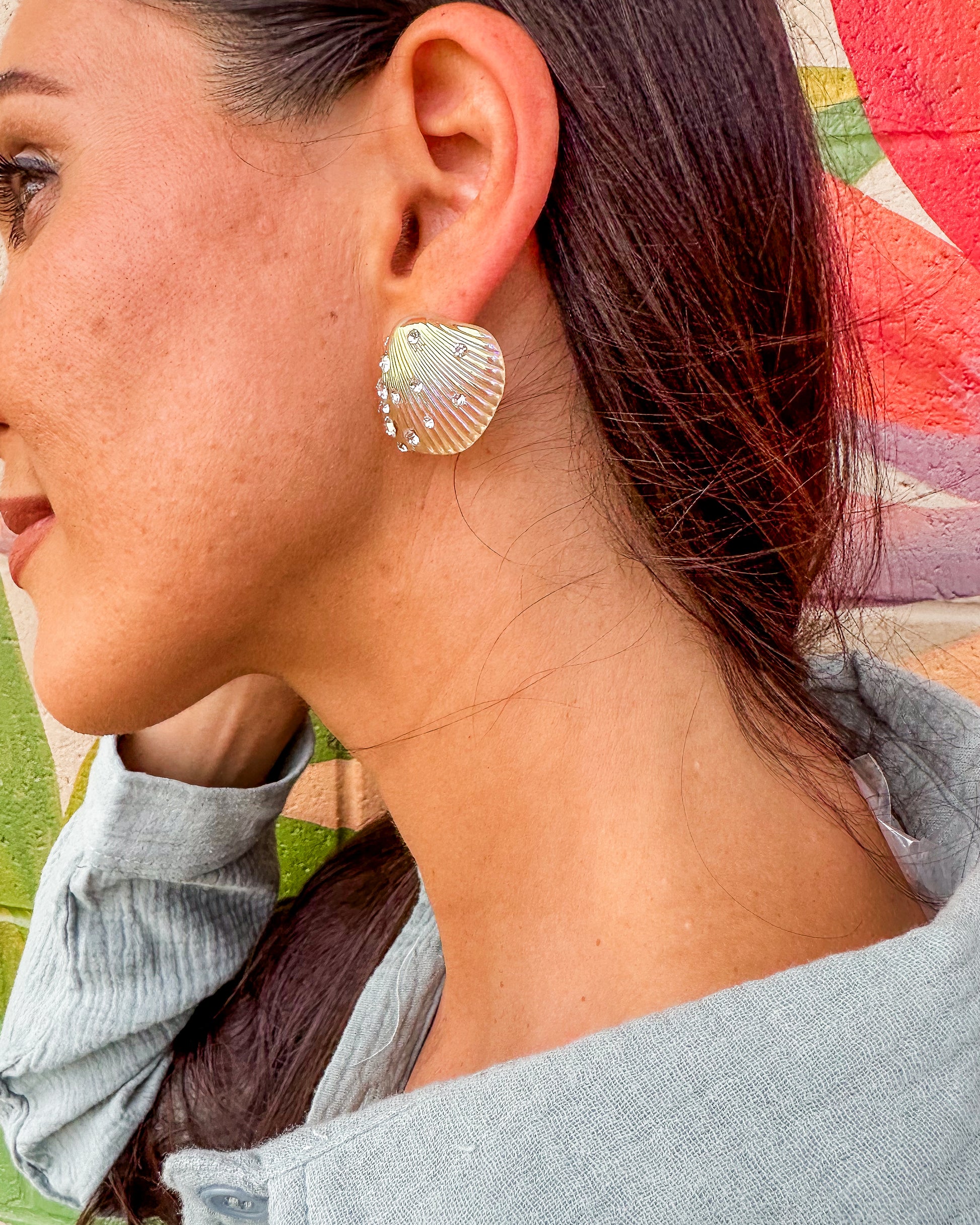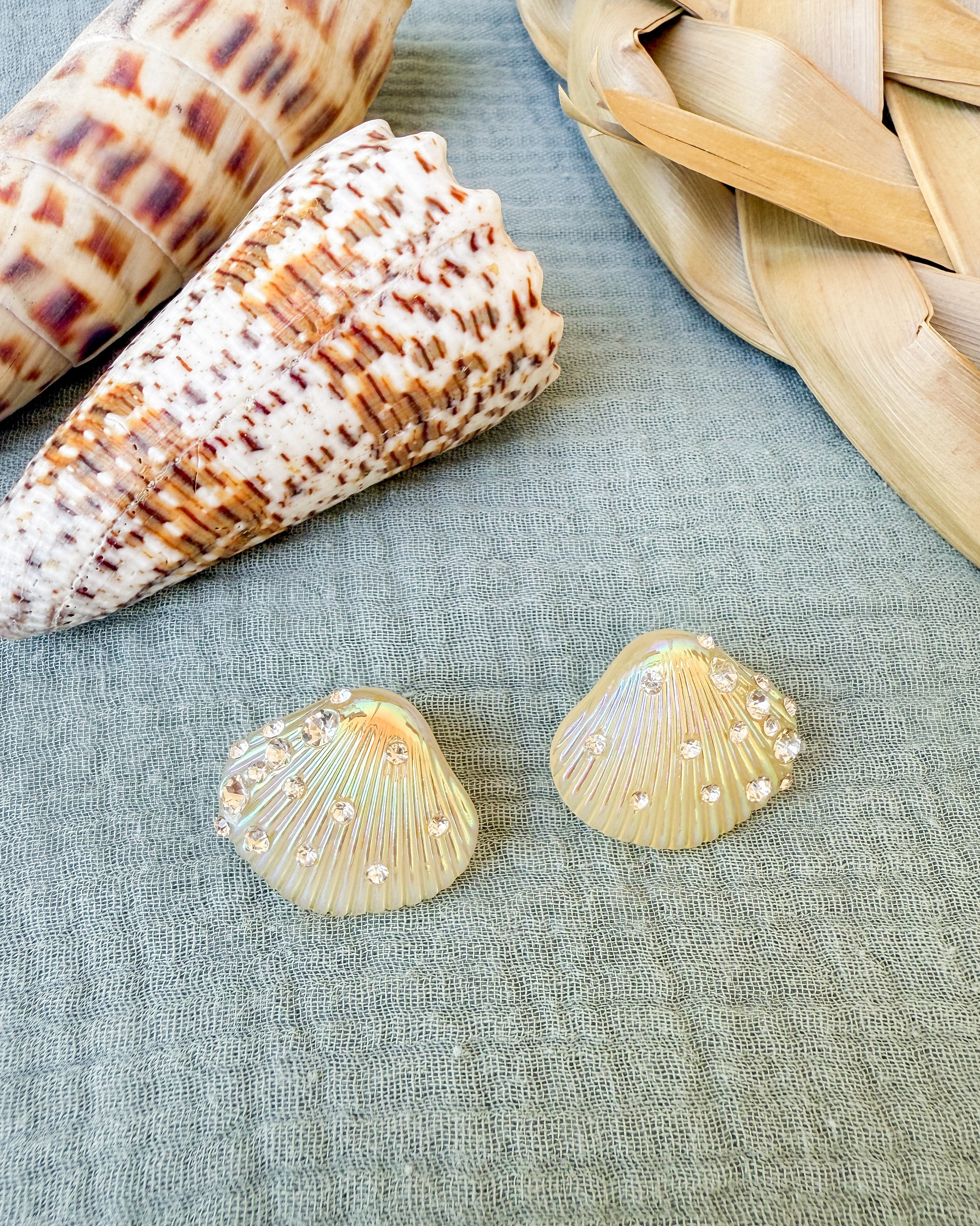 Another beautiful sea shell stud earring for when you're feeling all the mermaid vibes! These cuties are adorned with some sparkle too, you're going to love them!