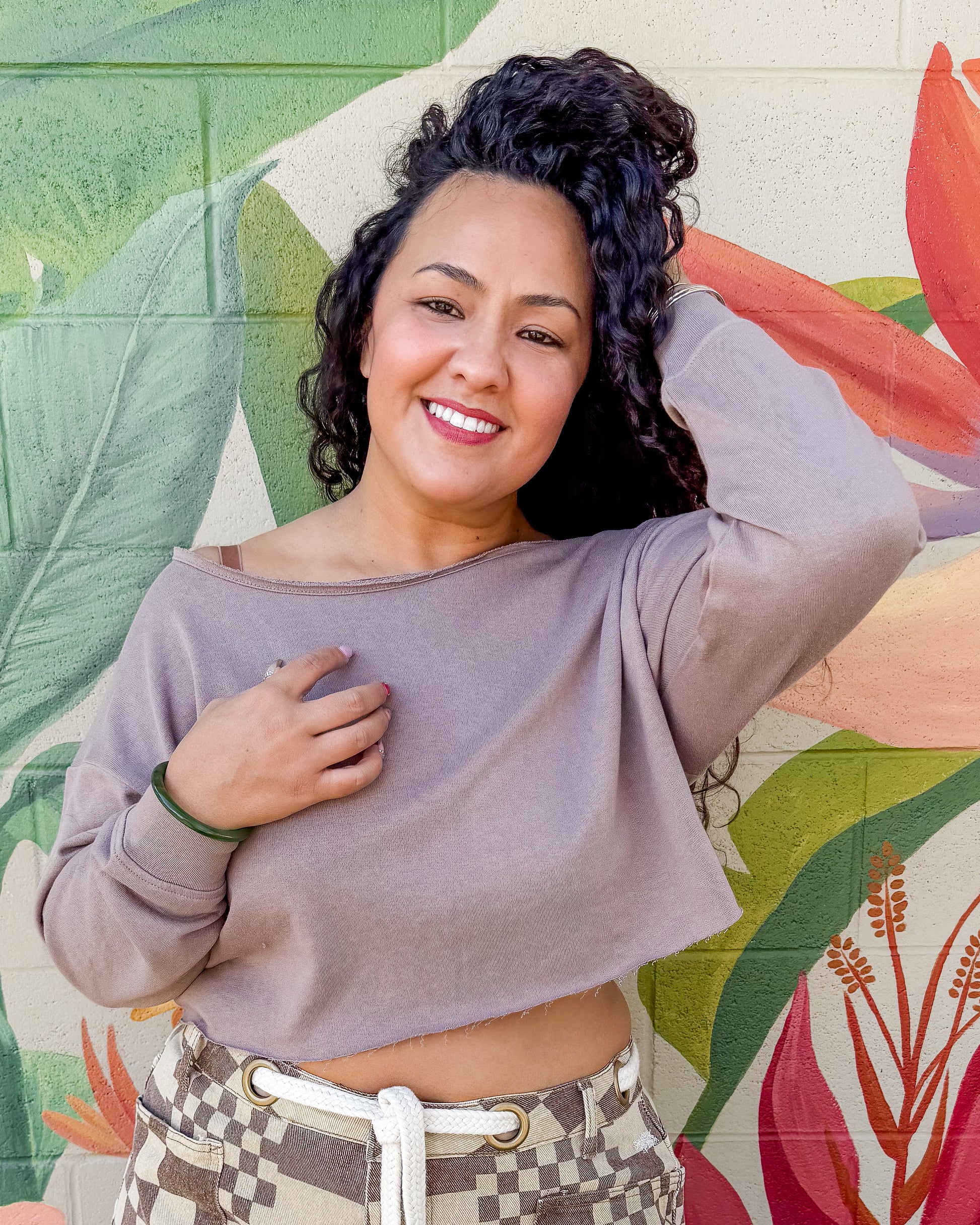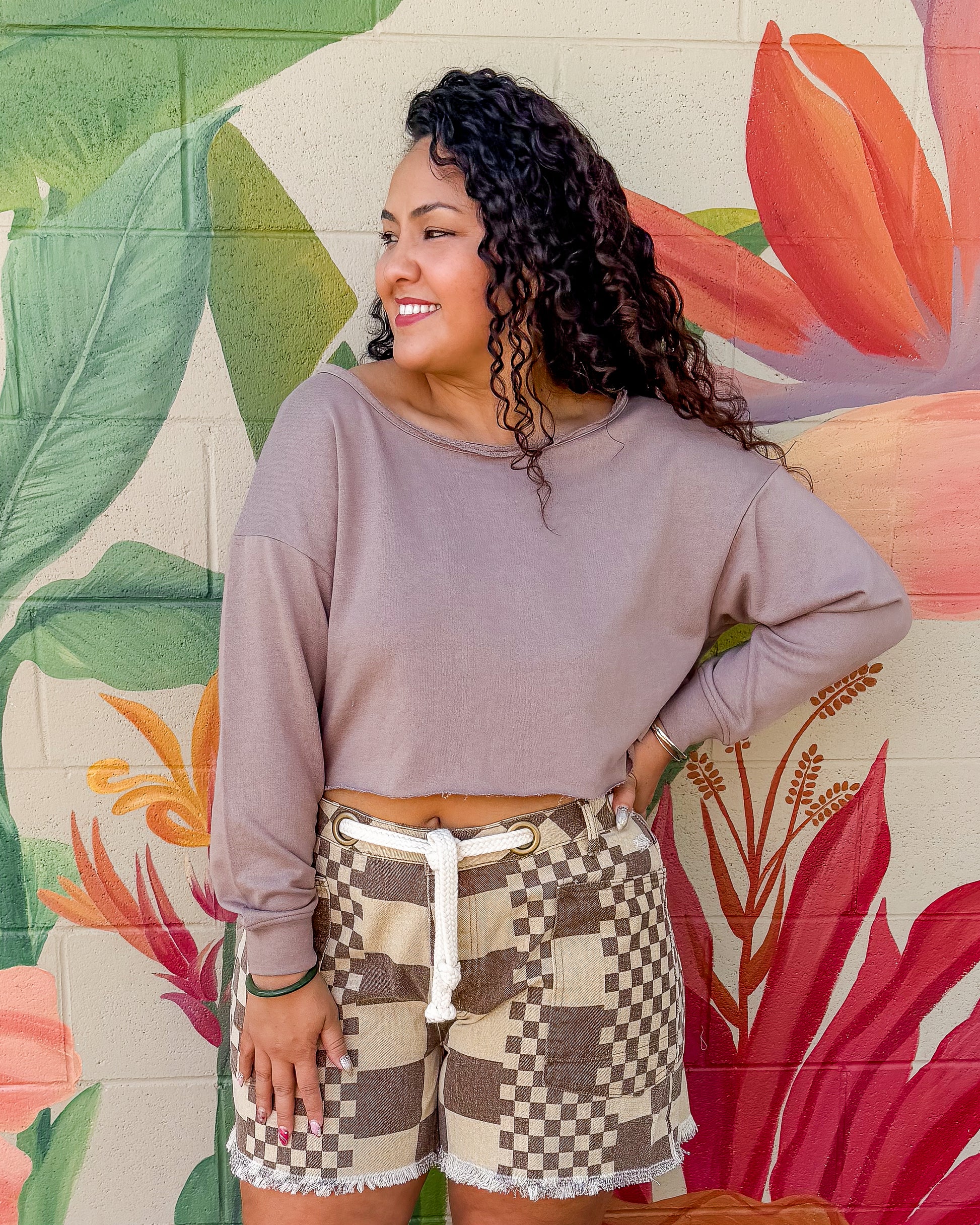 Effortless elegance meets comfort in this French terry boatneck crop top. The soft, breathable fabric drapes beautifully while the classic boatneck neckline flatters any frame. Perfect for layering or wearing solo, this versatile sand-colored piece transitions seamlessly from casual days to relaxed evenings. A wardrobe essential that feels as good as it looks.