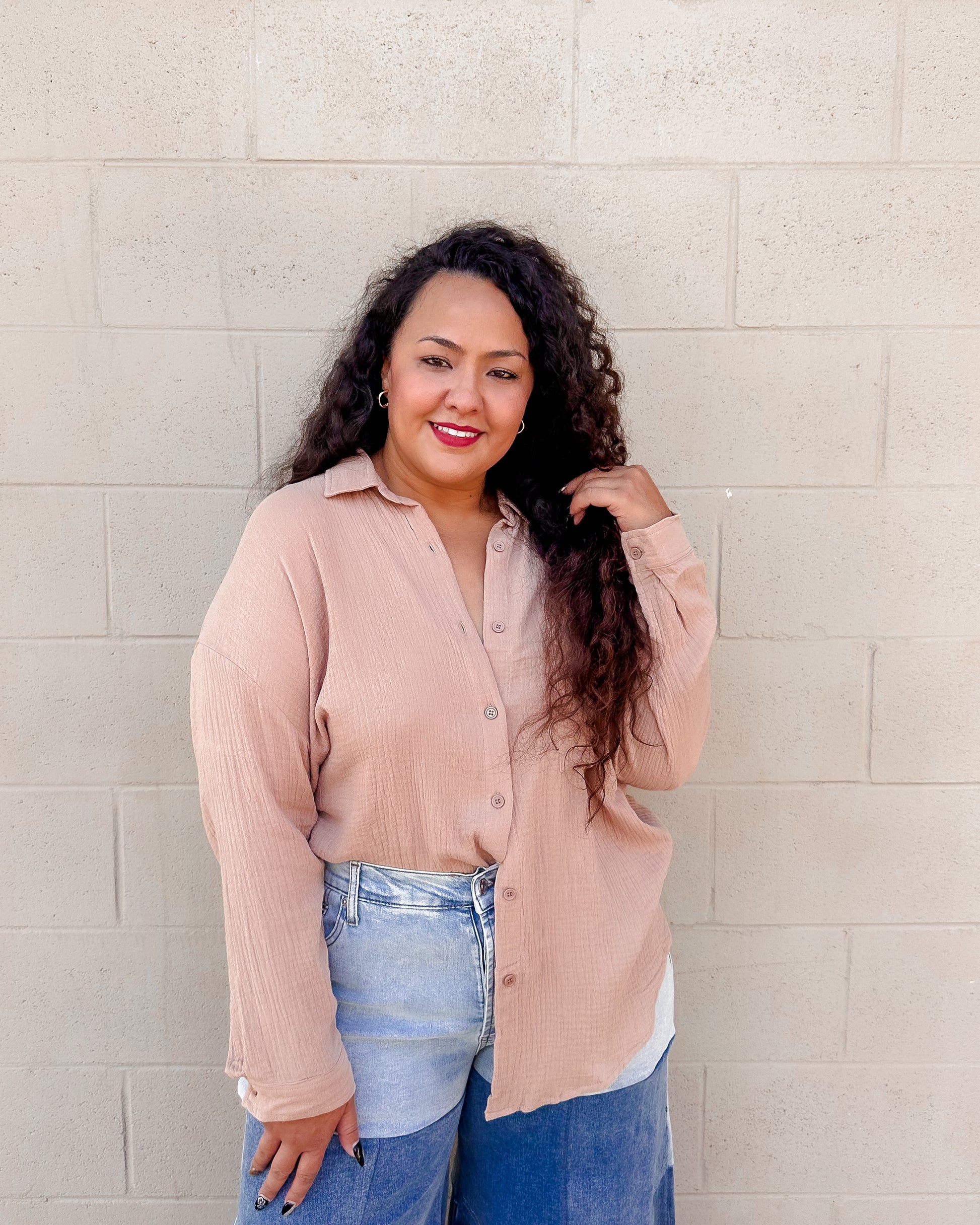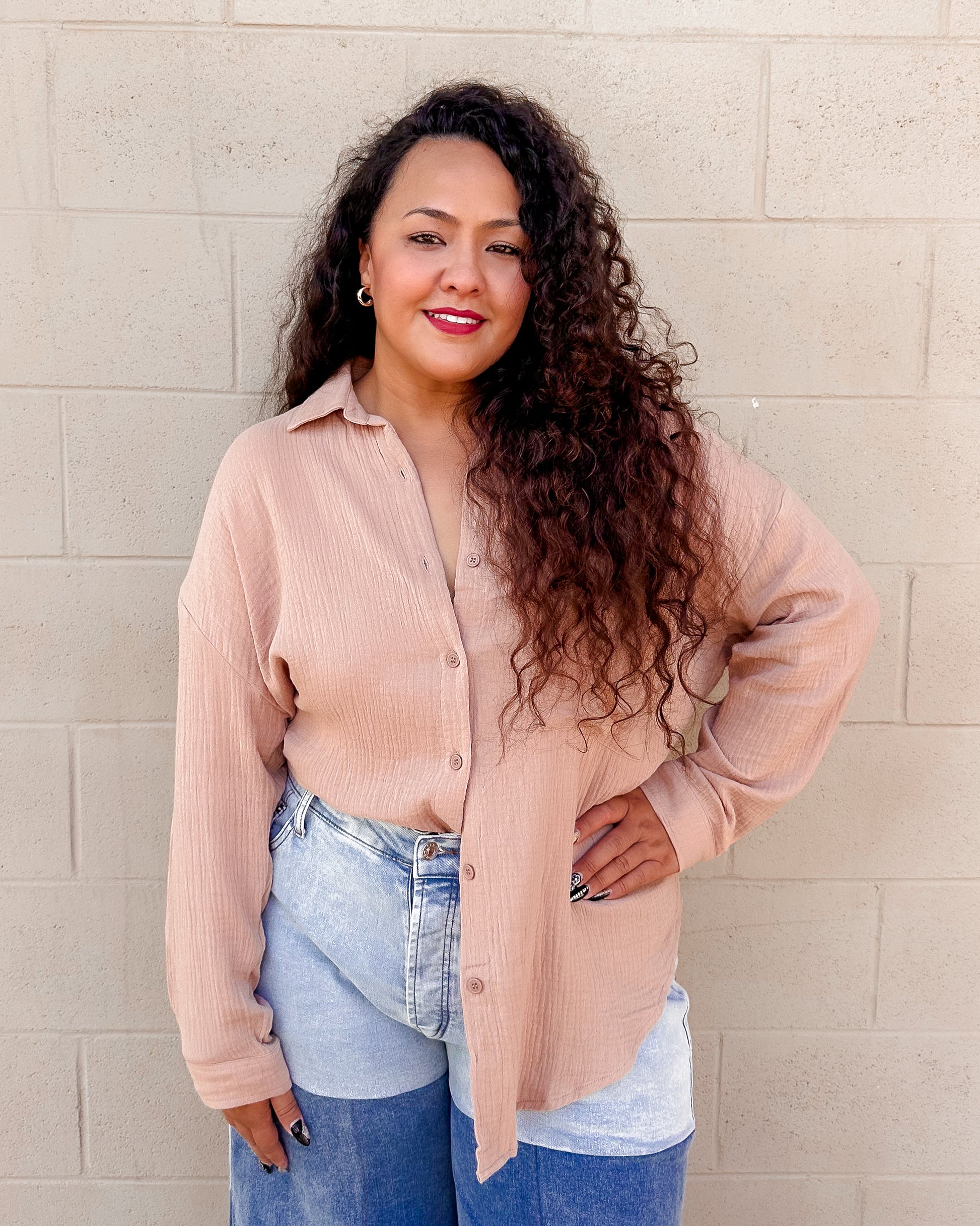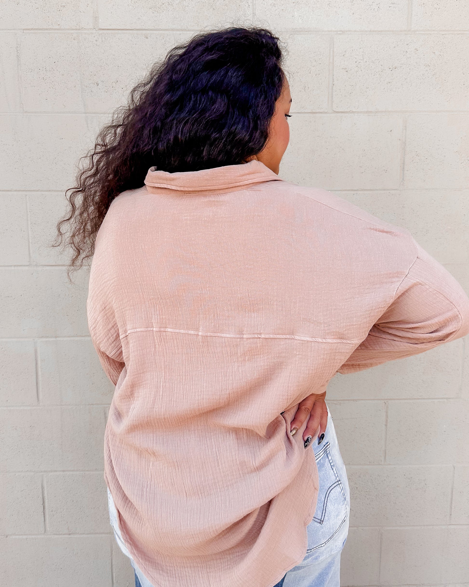 The Micah Top offers a relaxed, loose fit crafted from soft crinkled fabric for effortless comfort. Its button-down design adds a classic touch, making it easy to style for both casual and polished looks. Perfect for everyday wear, this shirt combines breathable texture with timeless simplicity.