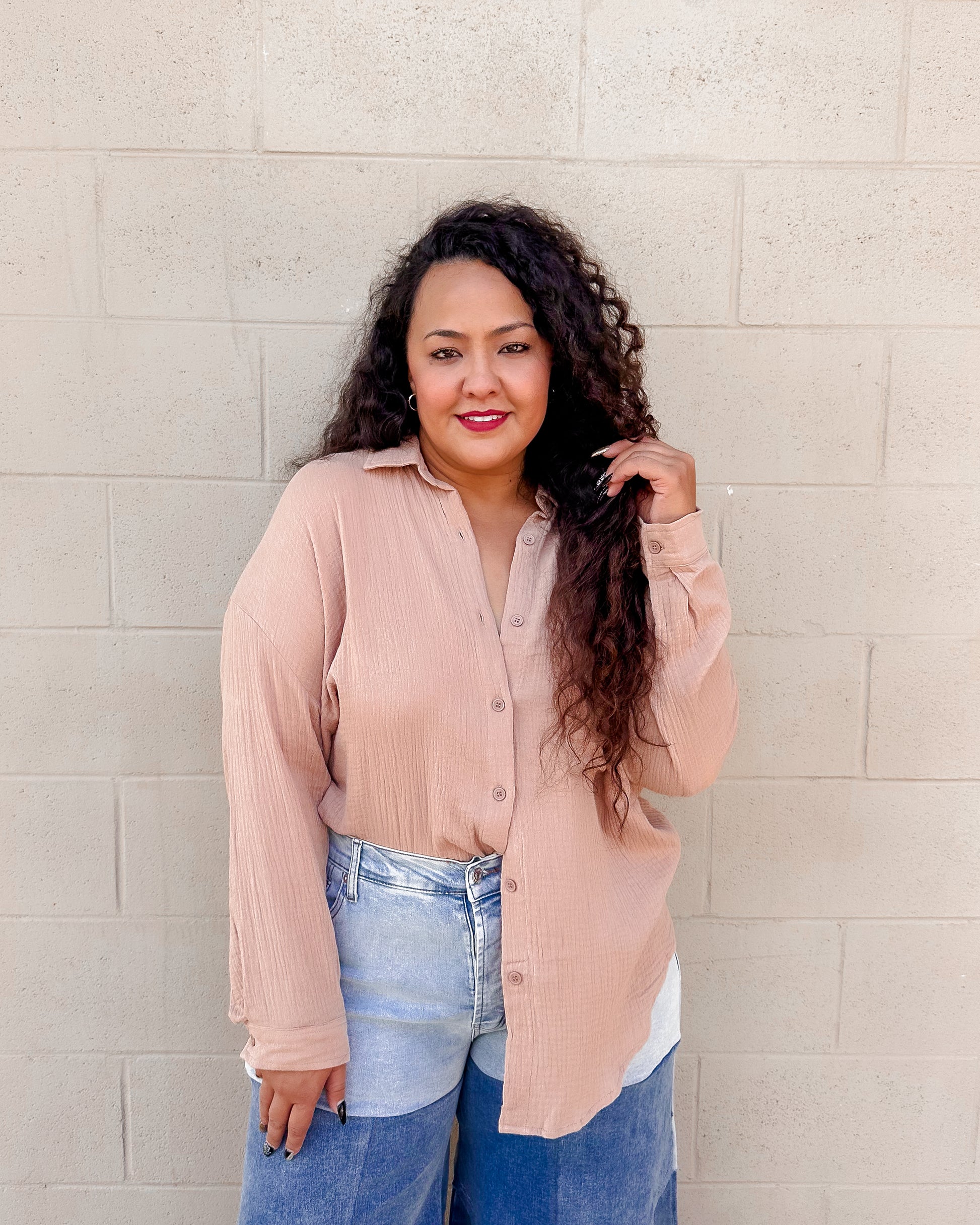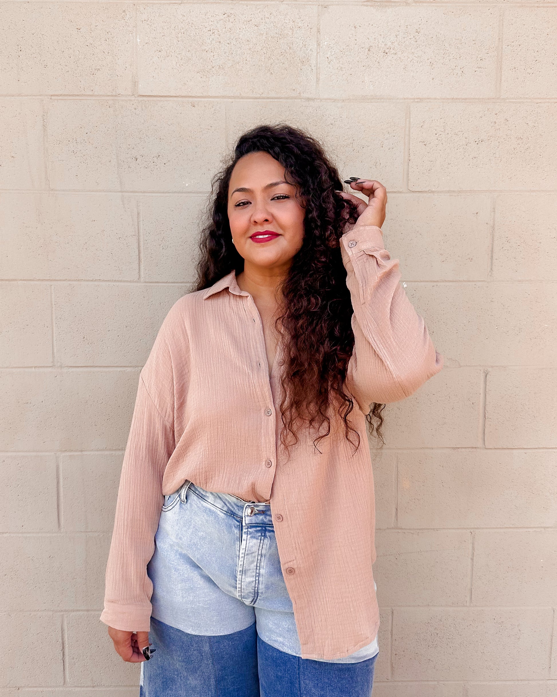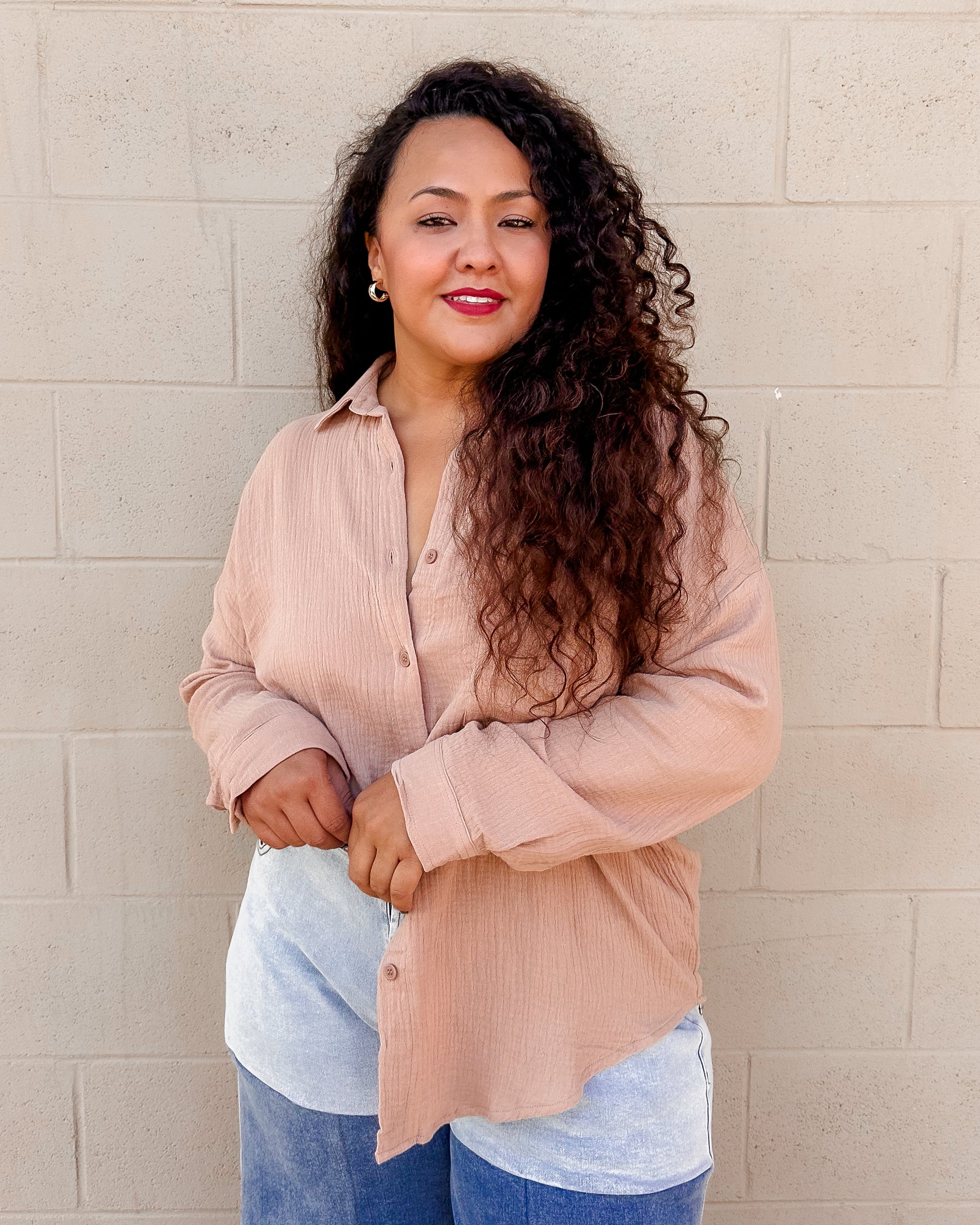 The Micah Top offers a relaxed, loose fit crafted from soft crinkled fabric for effortless comfort. Its button-down design adds a classic touch, making it easy to style for both casual and polished looks. Perfect for everyday wear, this shirt combines breathable texture with timeless simplicity.