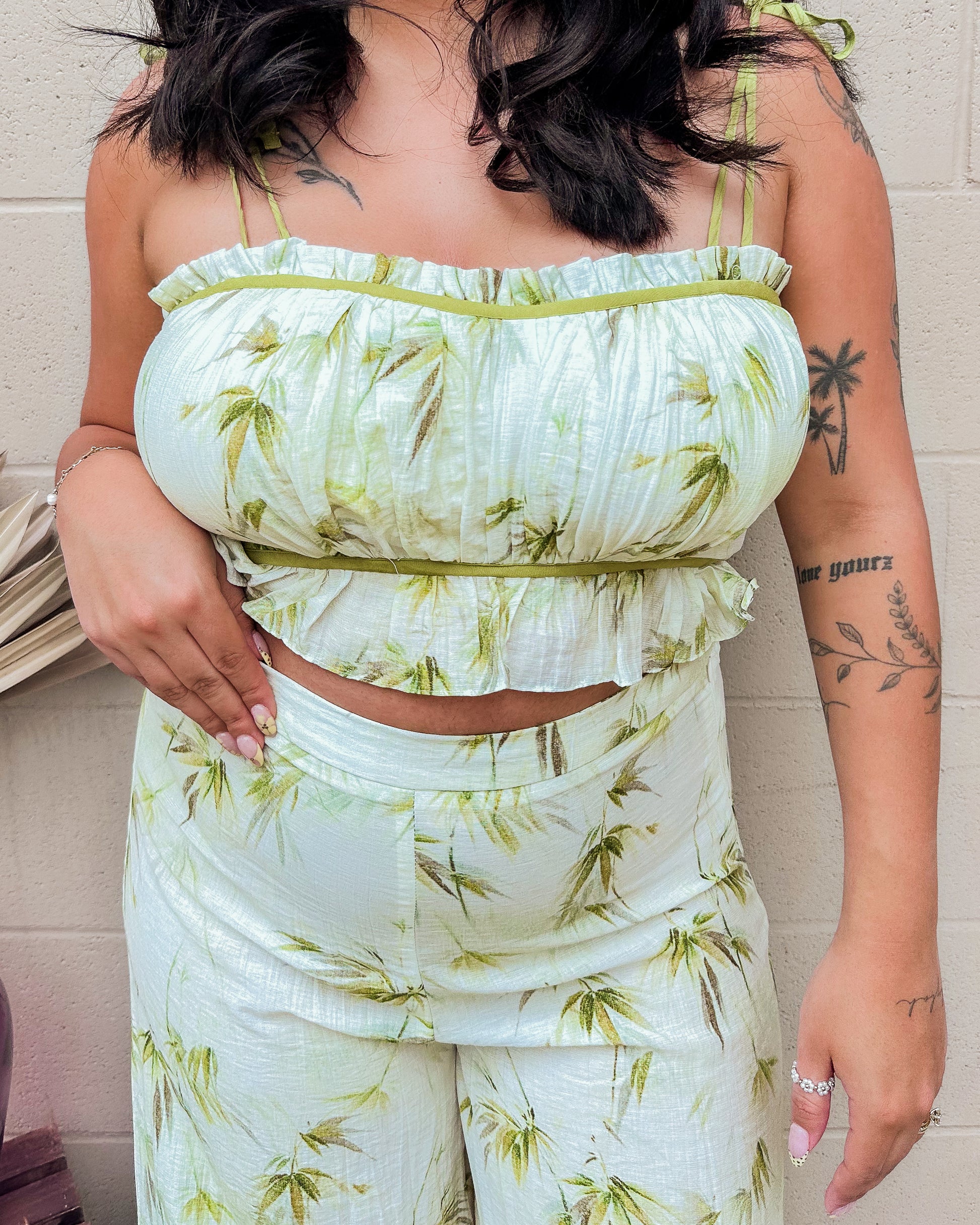 The Mirren Top features a delicate tie shoulder strap and a charming ruffle hem for a soft, feminine look. Smocking at the back ensures a comfortable, flexible fit that adapts to your shape. This top blends effortless style with gentle detail, perfect for relaxed, everyday wear.