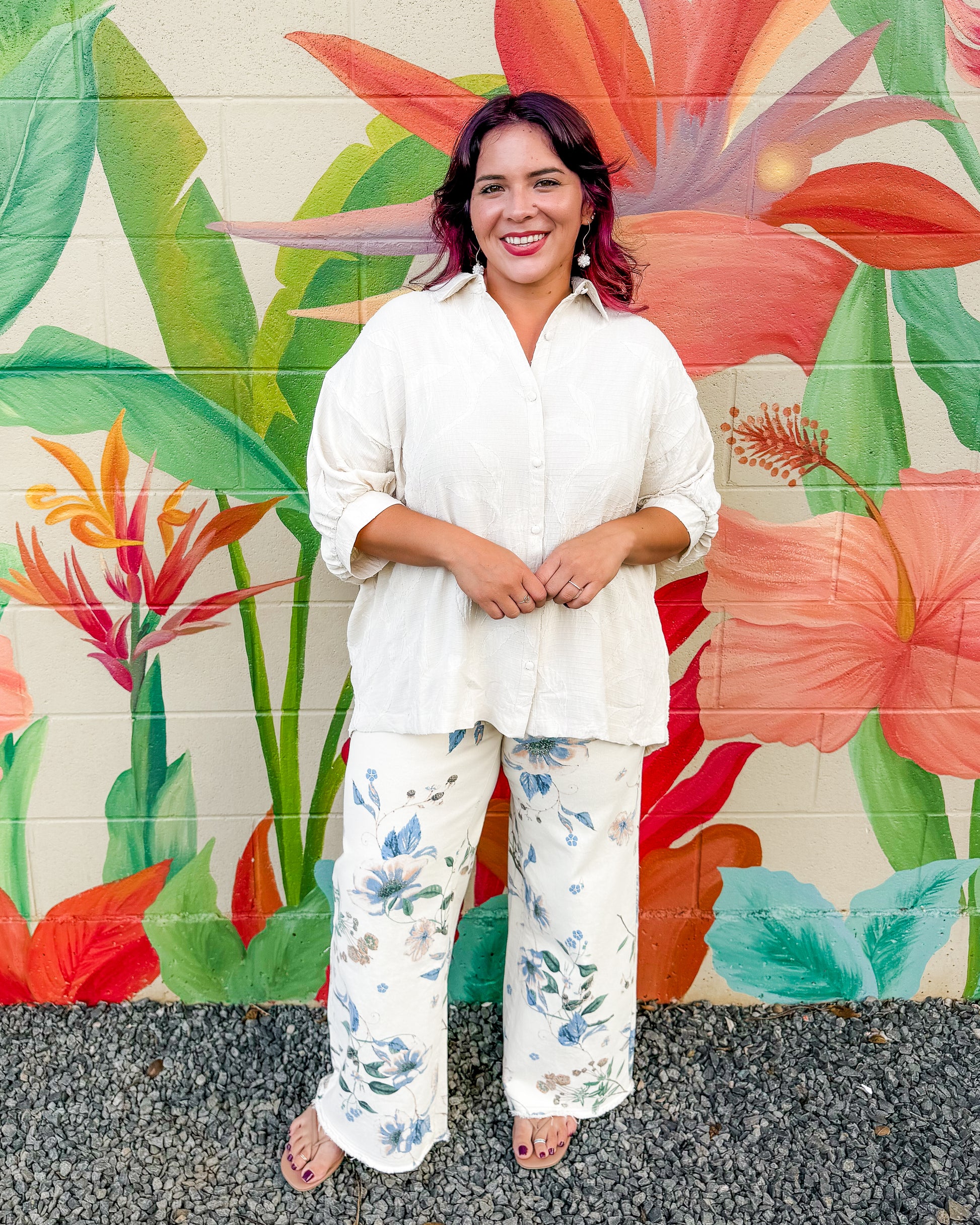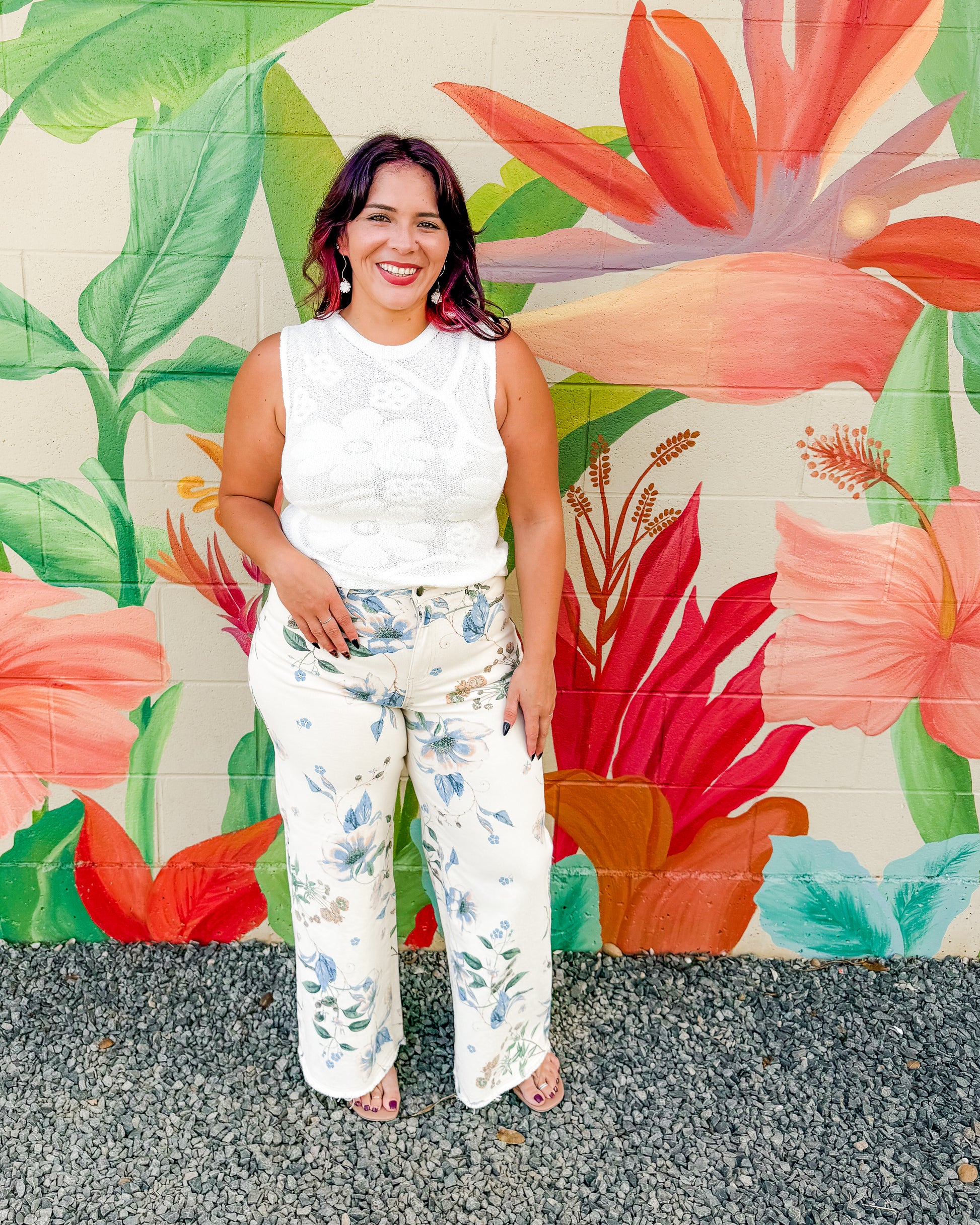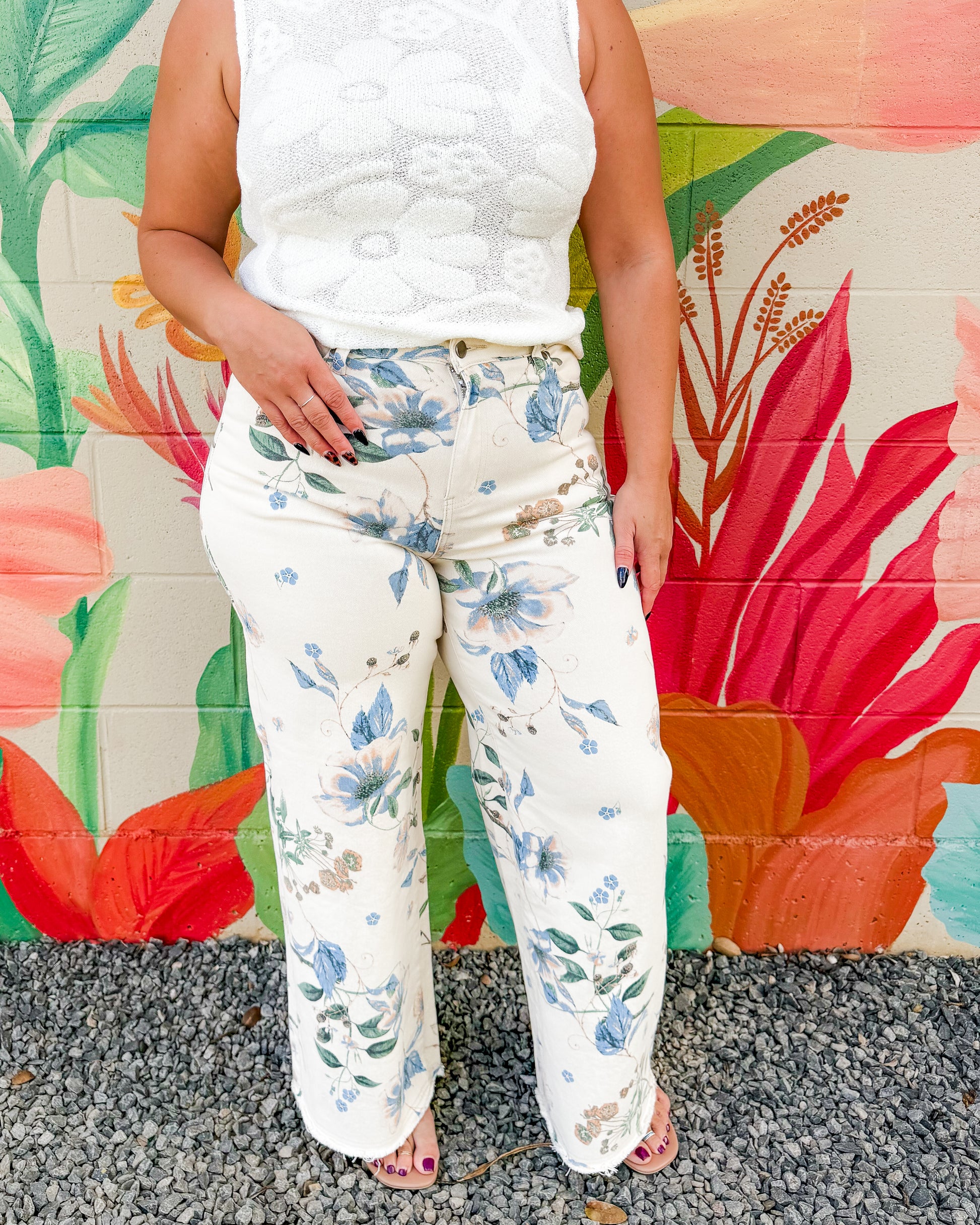 Elevate your everyday style with these high-waisted floral printed twill pants. Featuring a soft, stretchy fabric and botanical design, they offer comfort and visual appeal. The classic 5-pocket construction and button-zip front closure provide practical functionality. Perfect for casual outings or relaxed workdays.