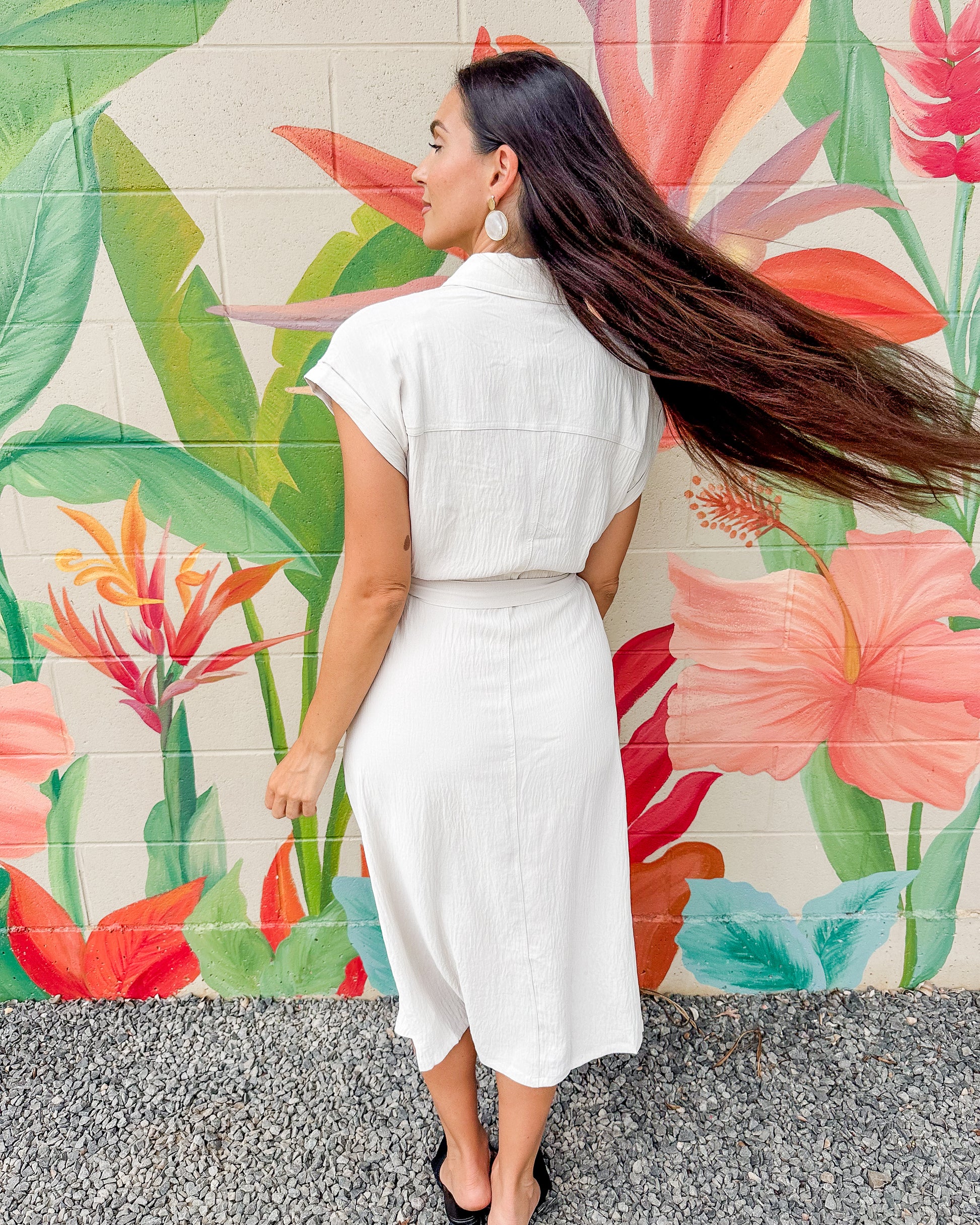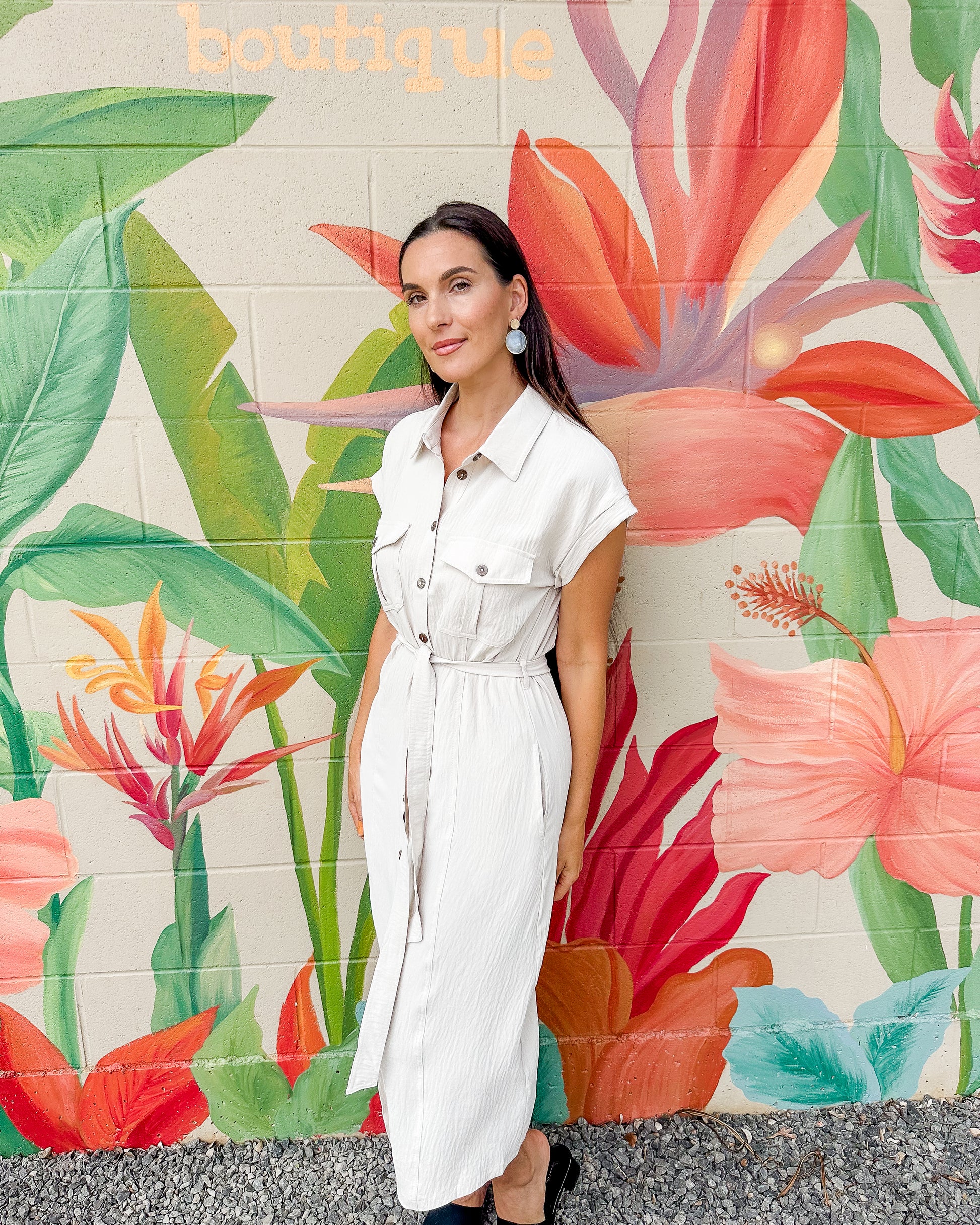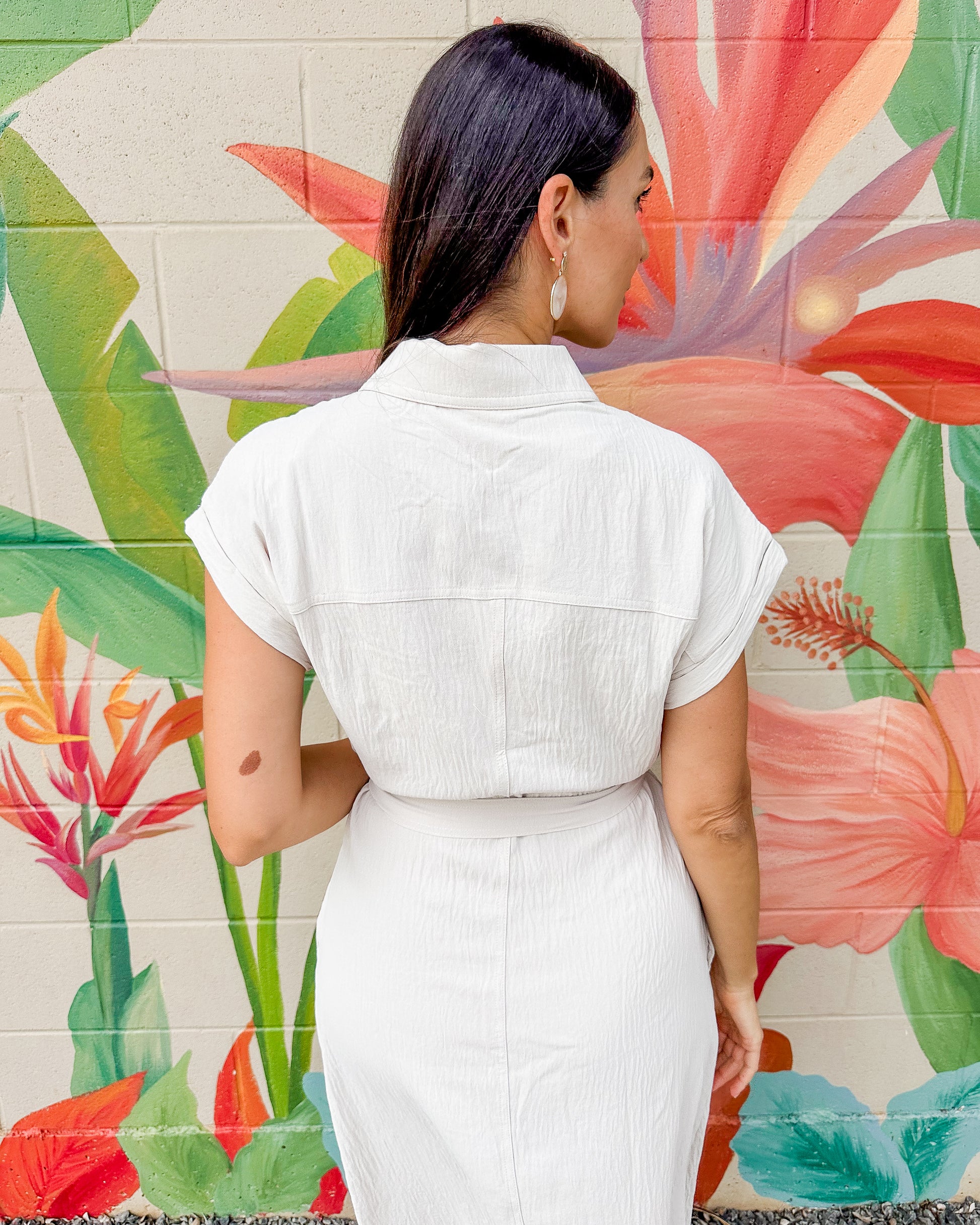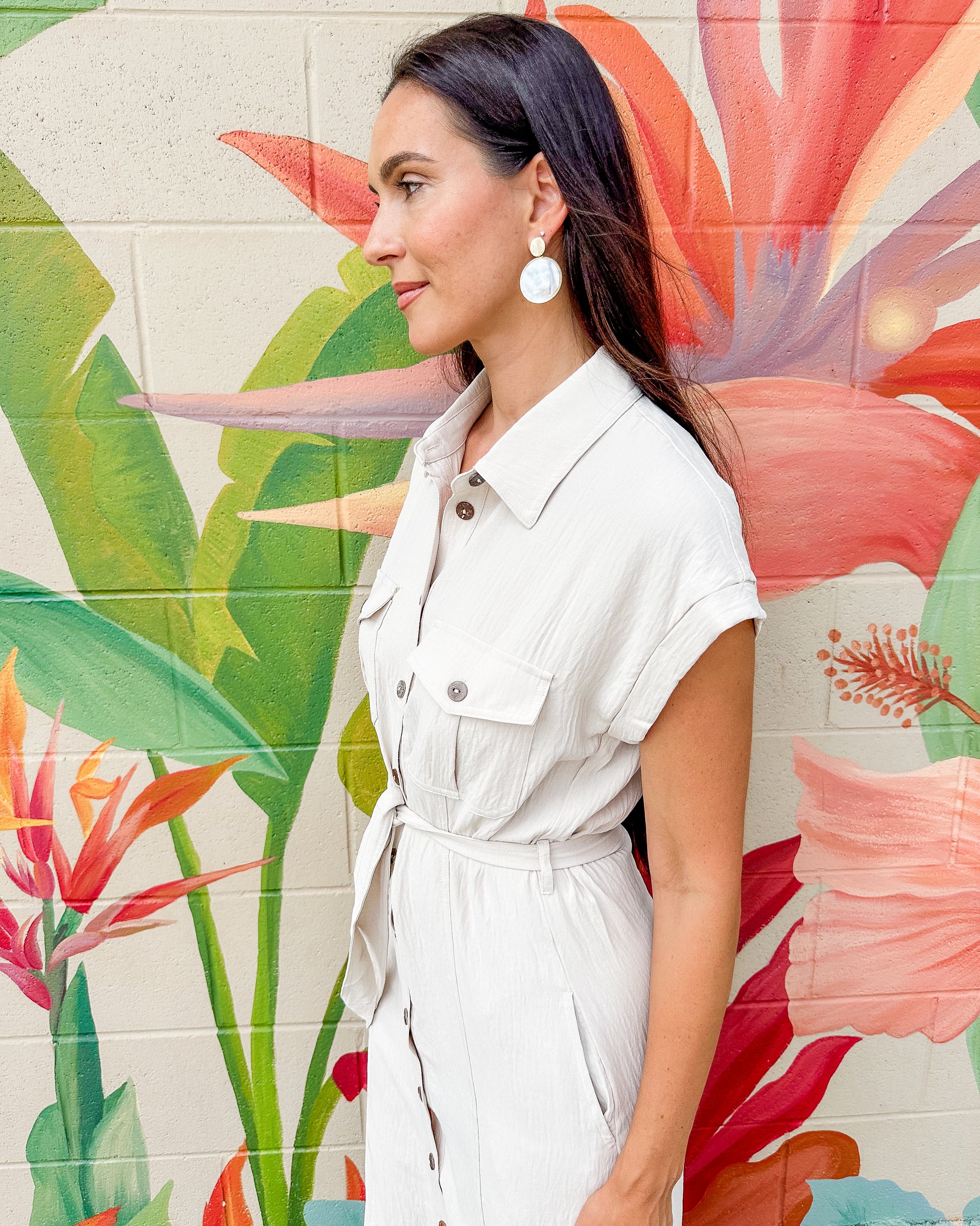 The Ms. Frizzle Dress features a charming front tie and buttoned short sleeves, blending casual comfort with a touch of playful style. Its easy-to-wear design makes it ideal for everyday wear, offering a relaxed fit that moves with you throughout the day.