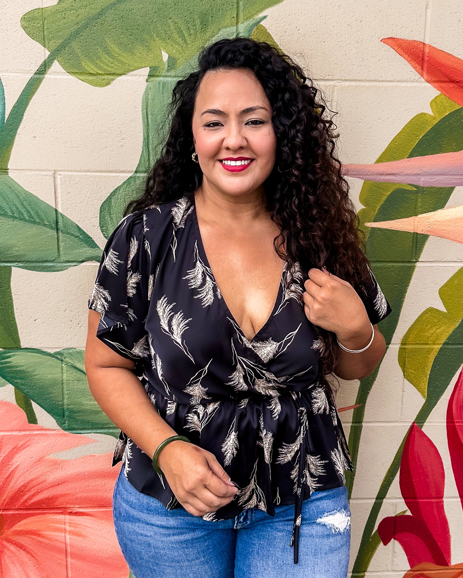 The Nadine Blouse features a delicate pompass grass print that adds a subtle natural charm to your wardrobe. Its flattering peplum silhouette gently accentuates your waist, offering an elegant yet comfortable fit. Perfect for both casual and dressier occasions, this blouse combines effortless style with tranquil sophistication.