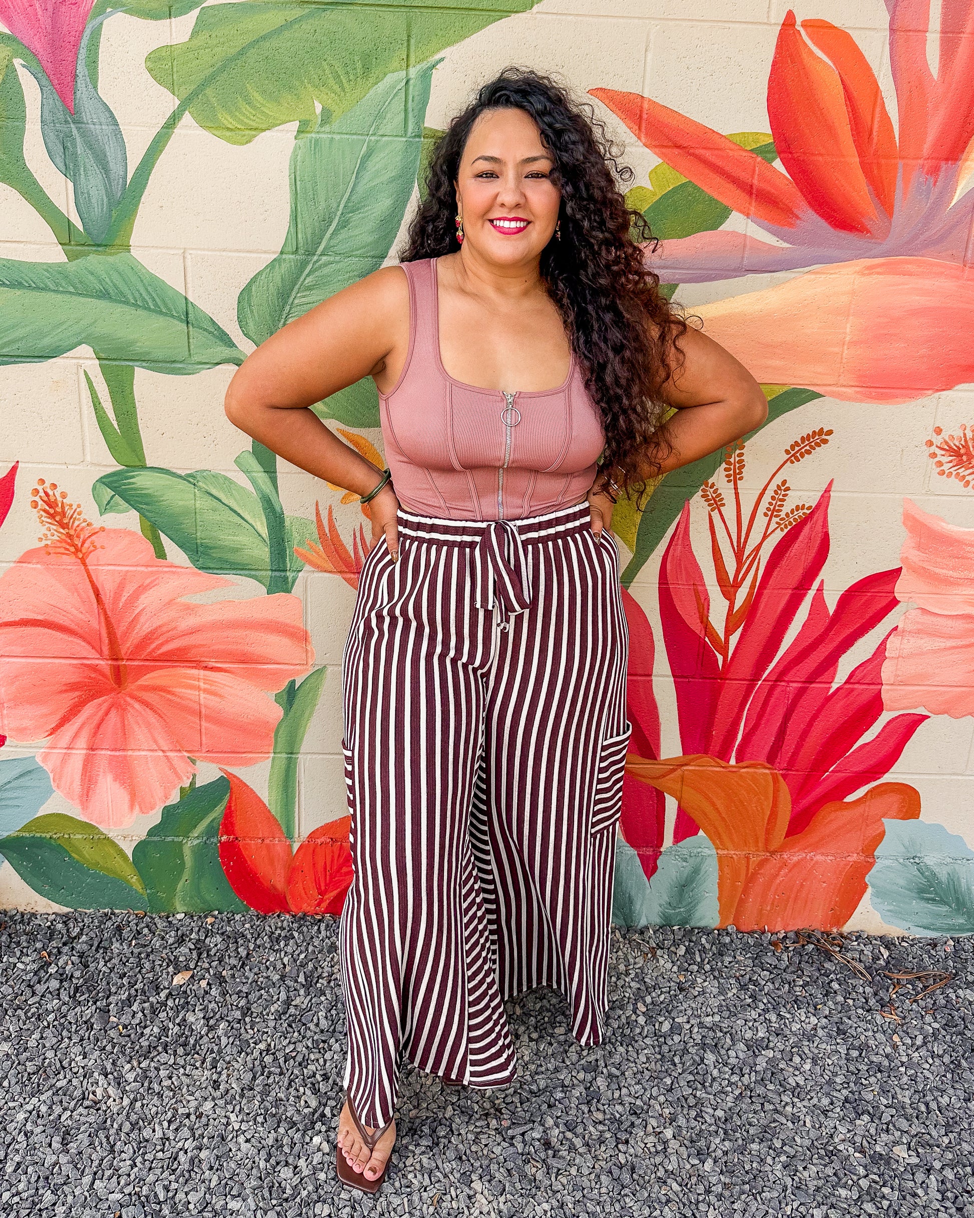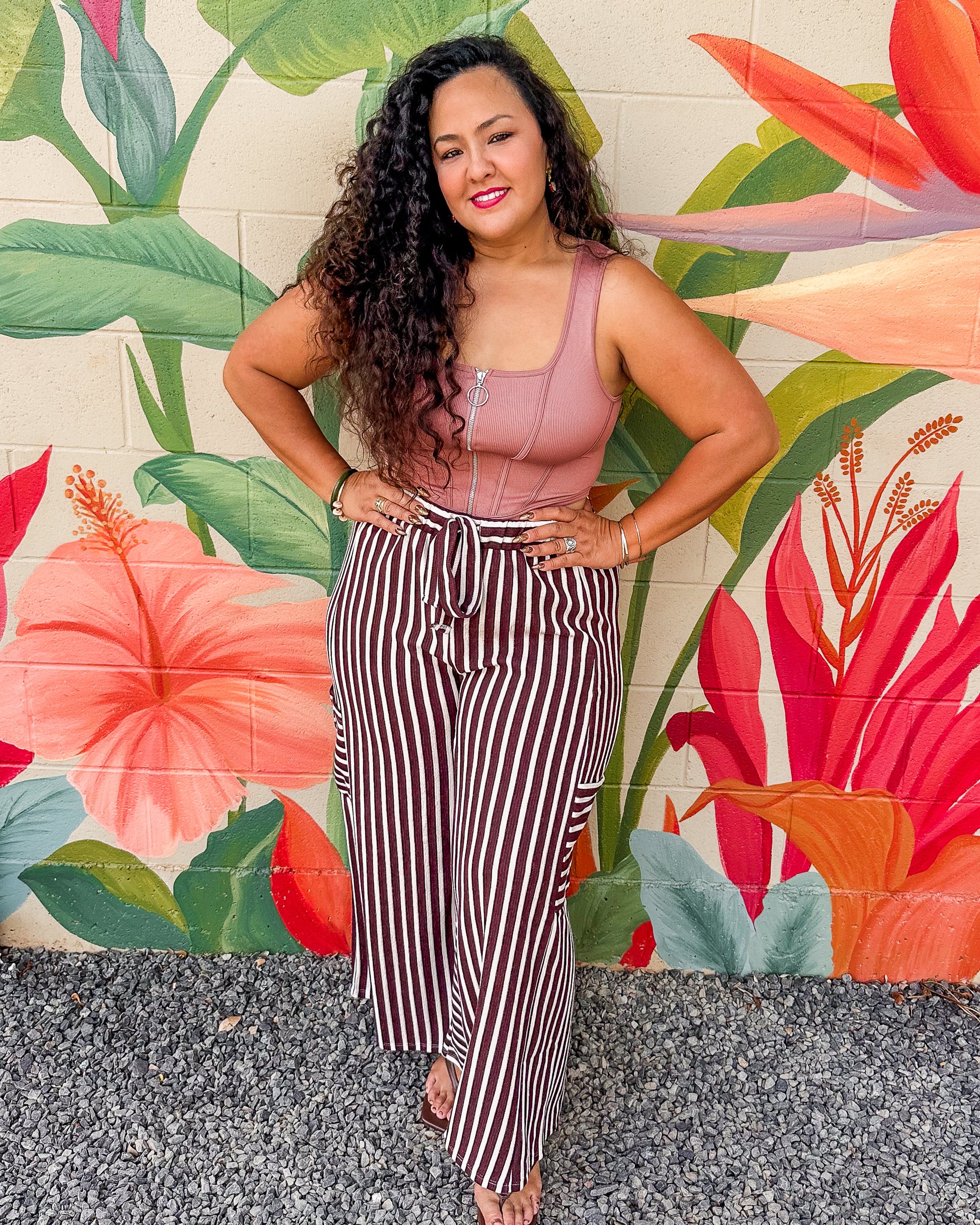 Nezira Pants feature a relaxed wide-leg silhouette with a subtle striped pattern and convenient side leg pockets. Crafted for comfort and practicality, they offer breathable wear and easy storage, making them ideal for casual days or relaxed office looks. Their flowing design ensures effortless movement while maintaining a polished, calm style.