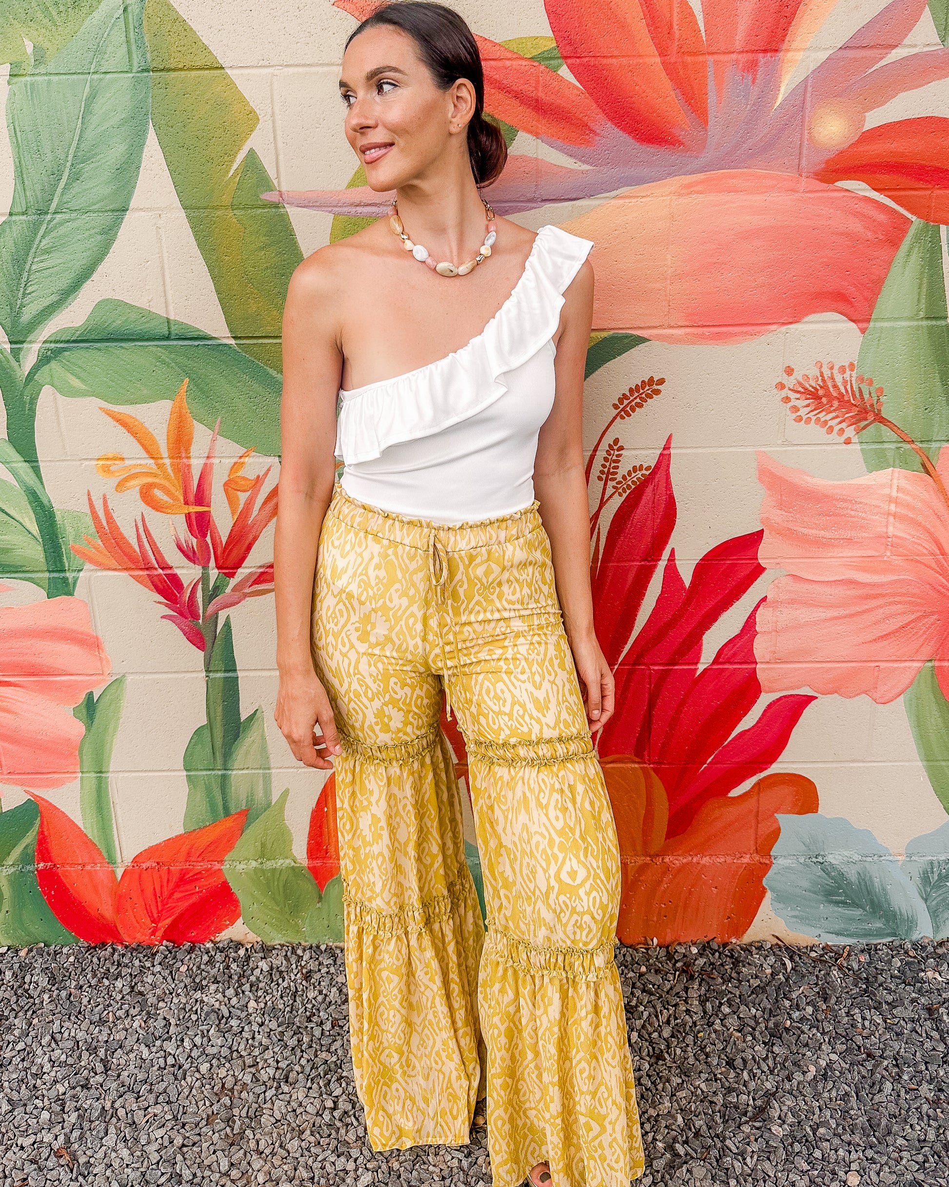 Paola Pants feature a sophisticated tiered printed design that effortlessly elevates any wardrobe. The layered silhouette creates visual depth and movement, while the carefully curated print adds contemporary flair. Crafted for comfort and style, these pants transition seamlessly from casual outings to refined occasions. Perfect for those who appreciate thoughtful design and versatile pieces that make a subtle statement.