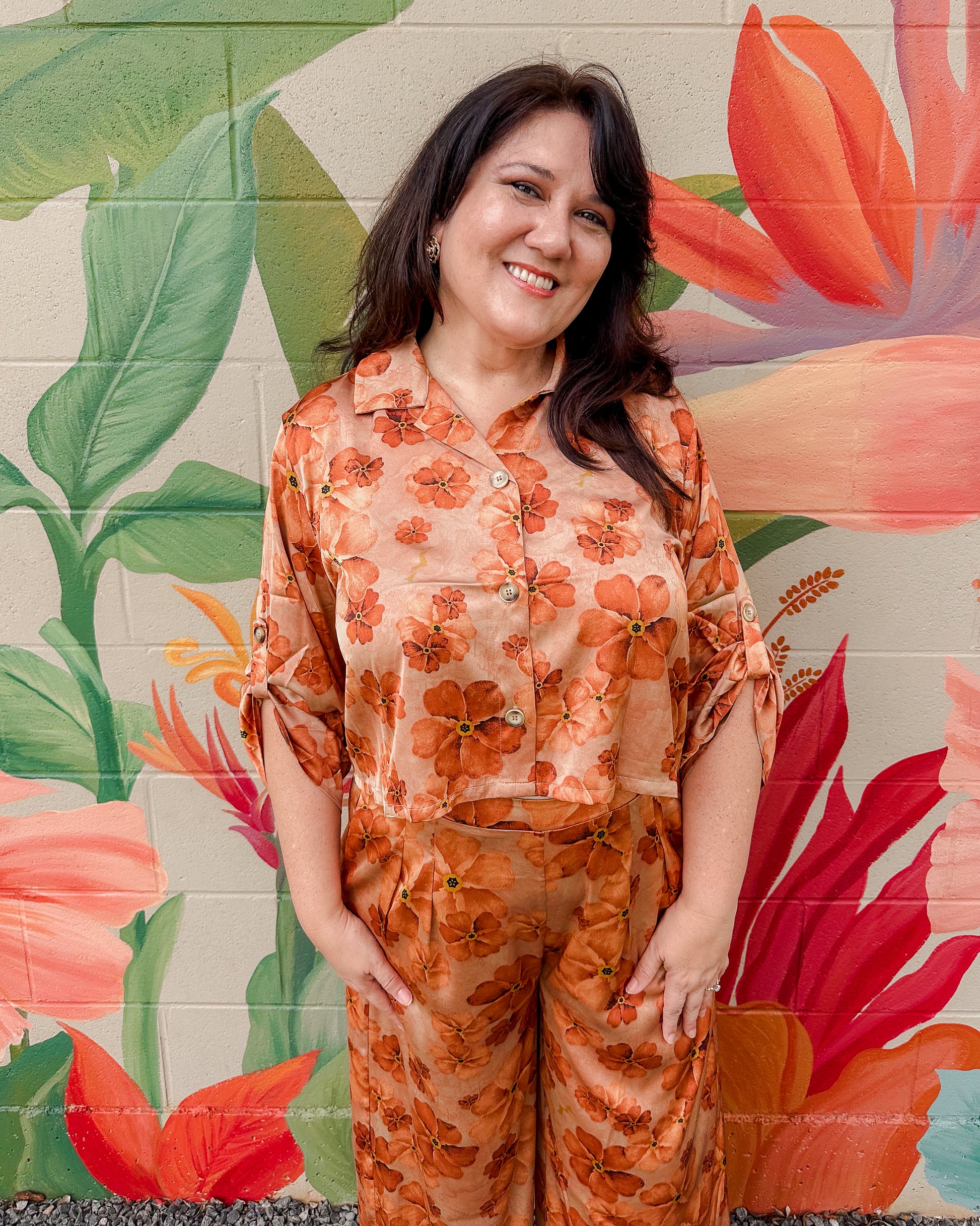 Effortless style meets comfort in this versatile patch top. Featuring a charming floral print and convenient roll-up sleeves, it's perfect for layering or wearing solo. The relaxed fit makes it ideal for casual days, while the thoughtful design details elevate any everyday look. Easy to care for and endlessly wearable.