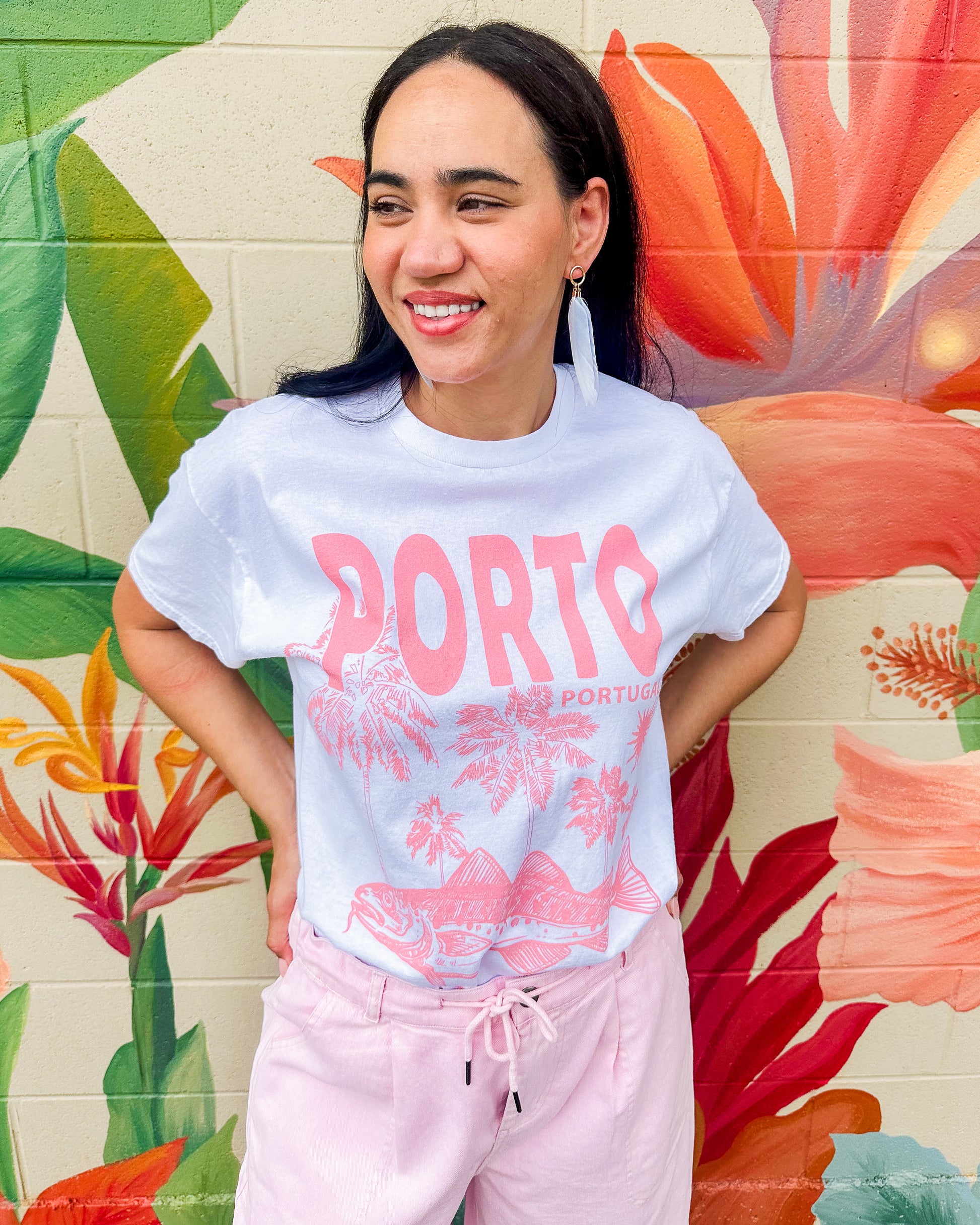 Experience the laid-back charm of Porto with our Peixe Tee. This short-sleeve garment-dyed tee features an oversized tropical graphic with fish and palm tree motifs. The relaxed fit and soft, pre-dyed fabric offer both comfort and distinctive style for your casual wardrobe.