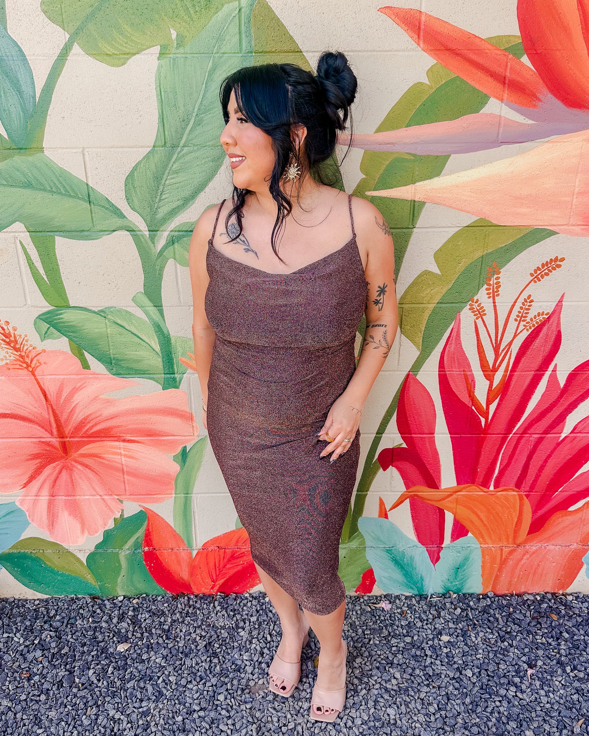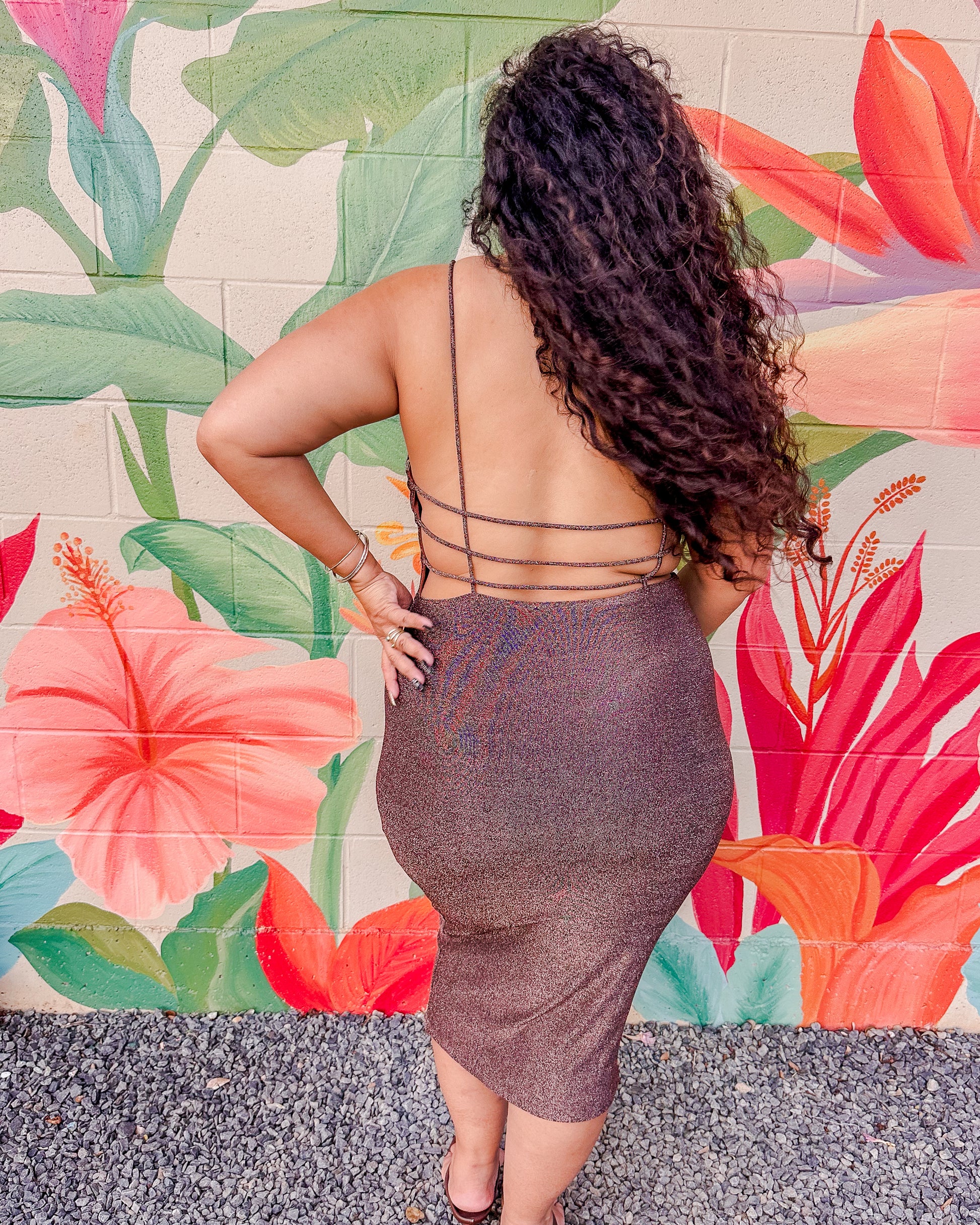 The Pia Dress is a comfortable and stylish midi dress crafted from stretchy knit mesh fabric. It features an open, strappy back design that adds a subtle touch of elegance. Fully lined for smooth wear, this dress offers both breathability and a flattering fit, making it a versatile choice for various occasions.